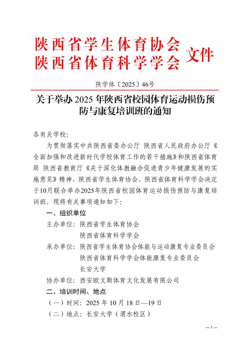 关于举办2025年陕西省校园体育运动损伤预防与康复培训班的通知