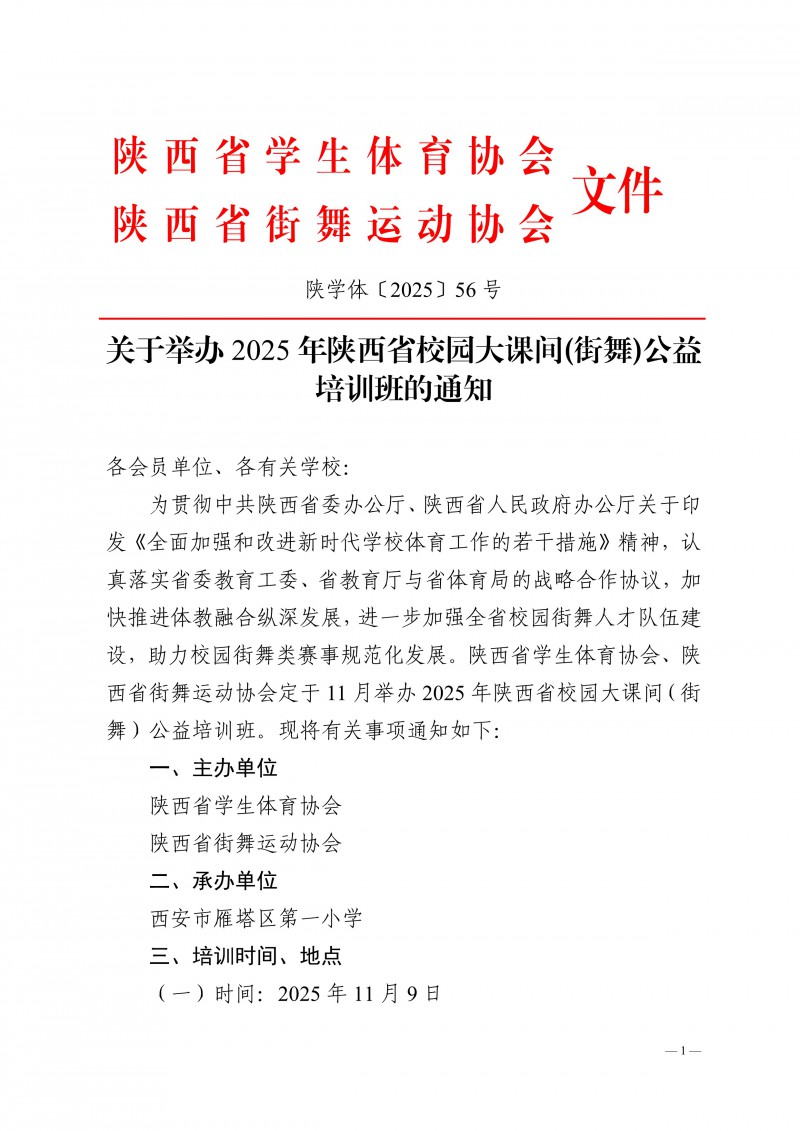 关于举办2025年陕西省校园大课间(街舞)公益培训班的通知
