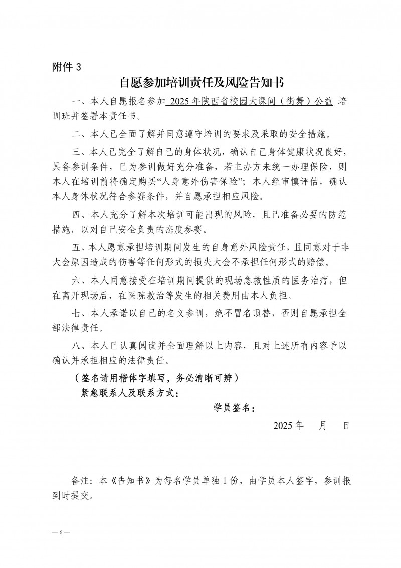 关于举办2025年陕西省校园大课间(街舞)公益培训班的通知.pdf