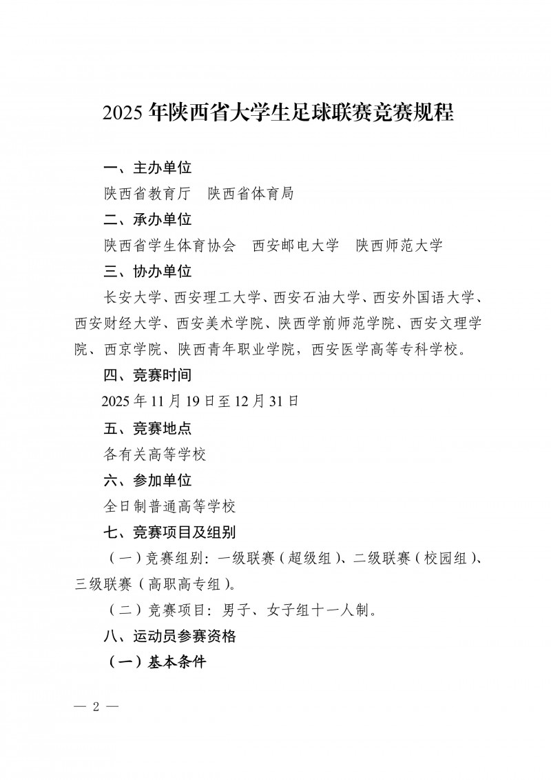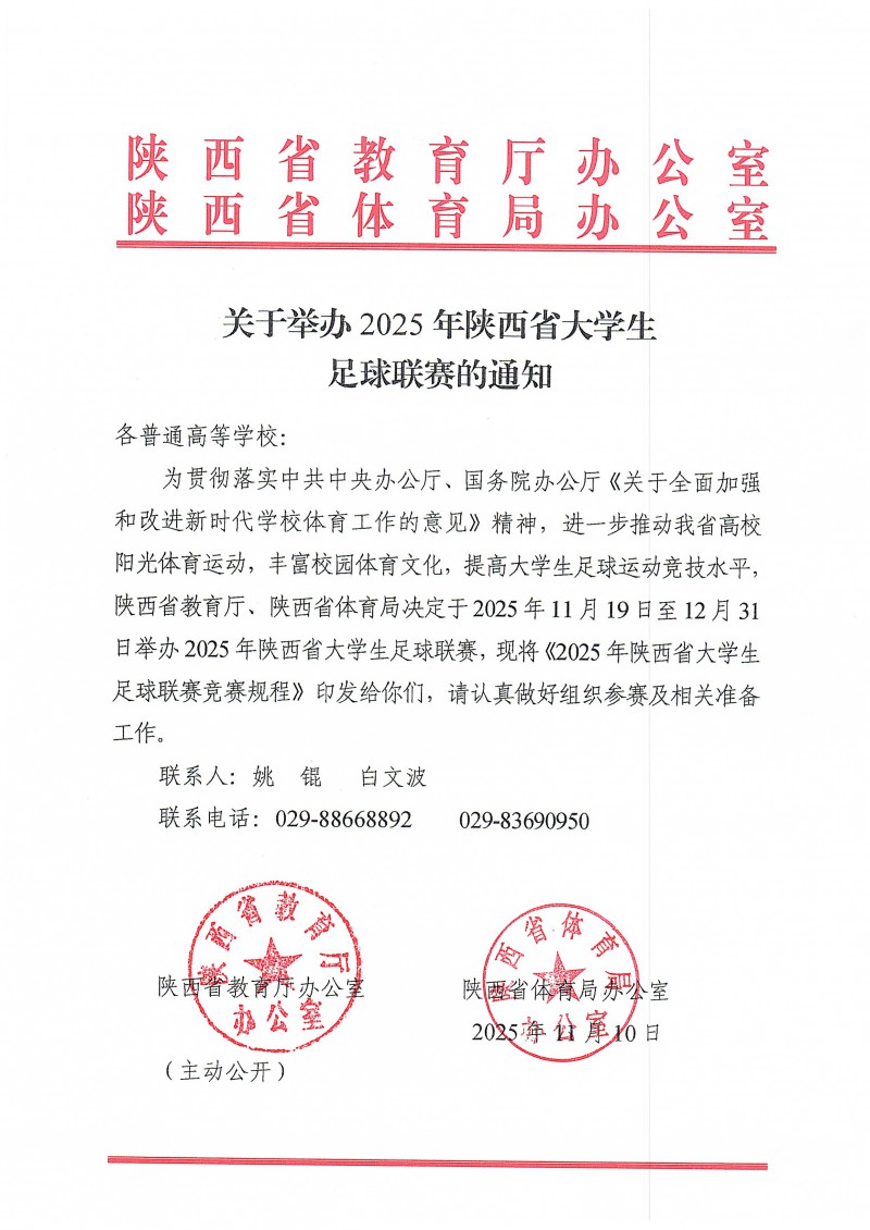 陕西省教育厅办公室陕西省体育局办公室关于举办2025年陕西省大学生足球联赛的通知