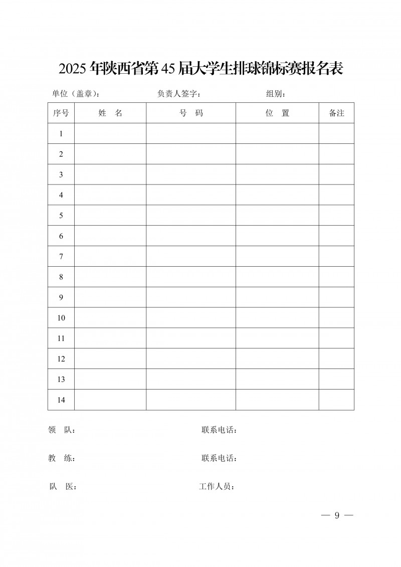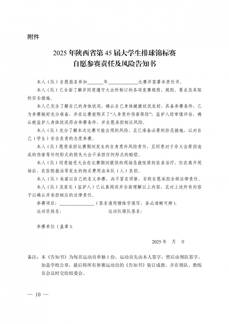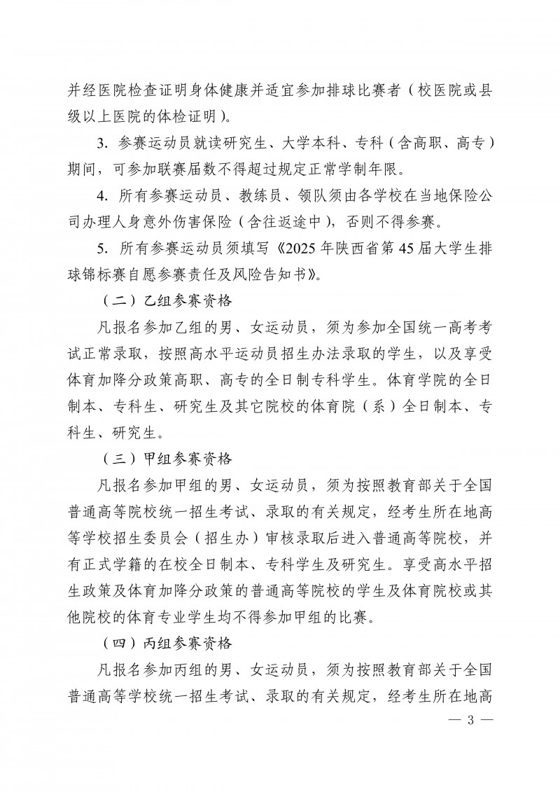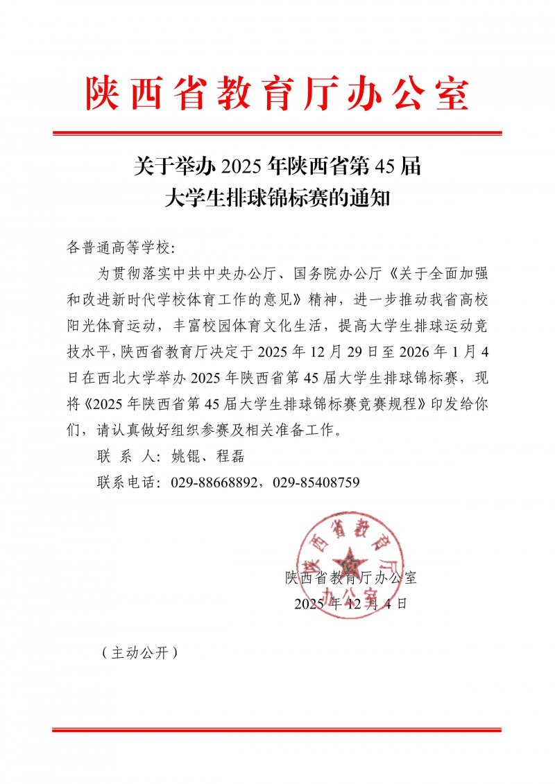 关于举办2025年陕西省第45届大学生排球锦标赛的通知