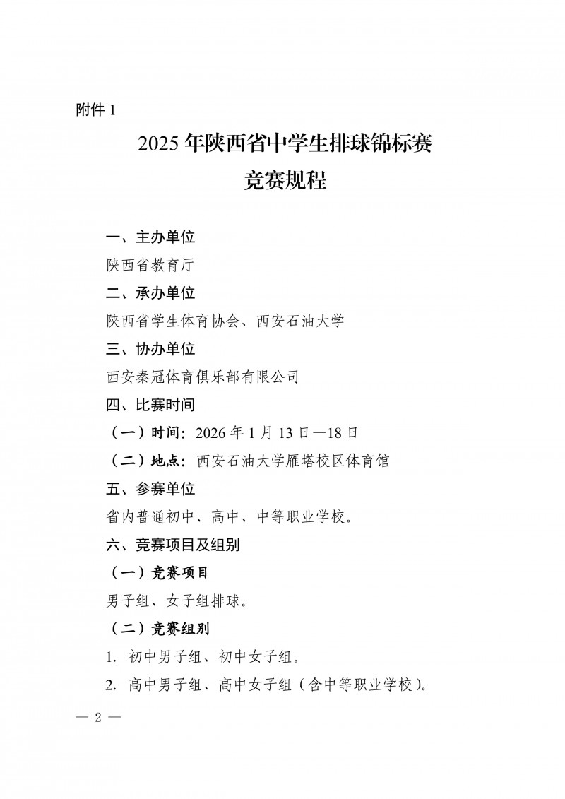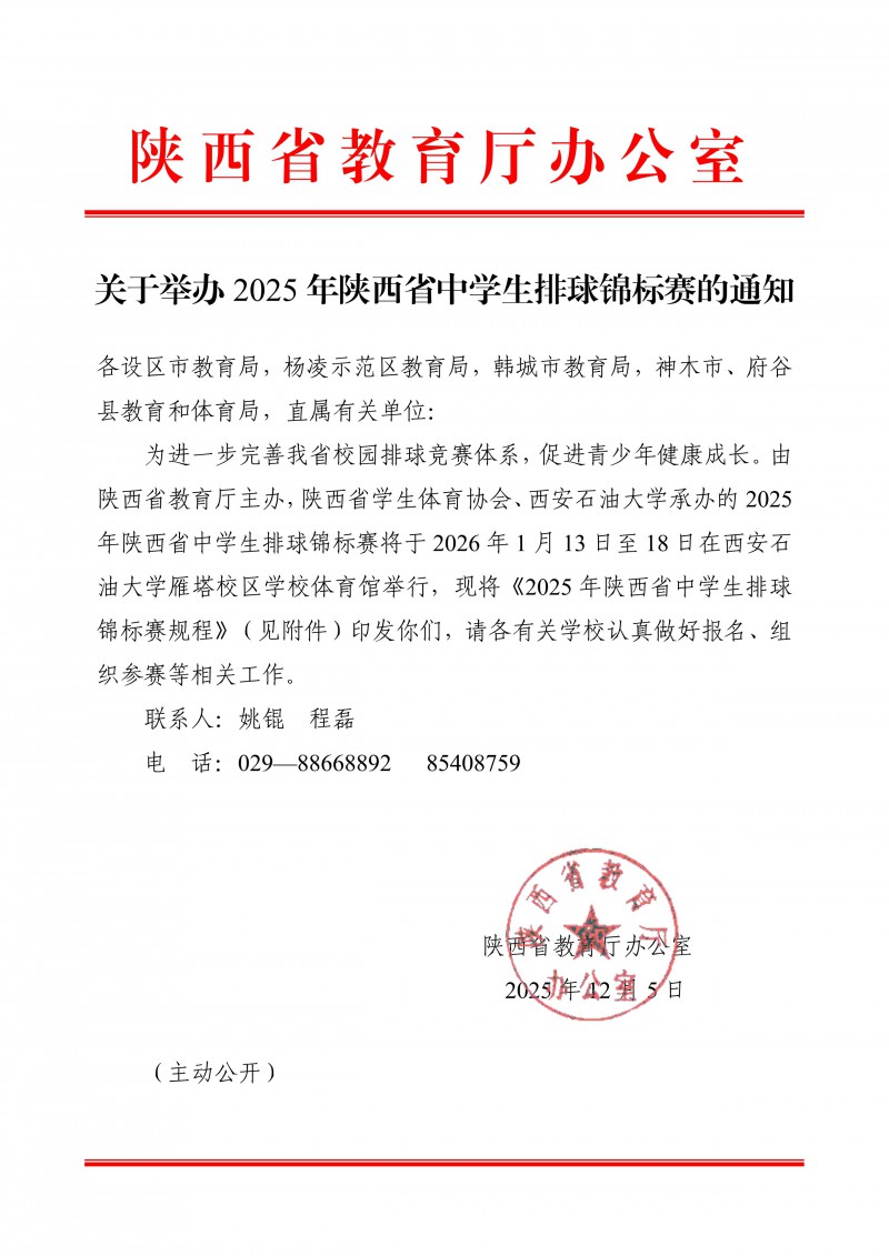 关于举办2025年陕西省中学生排球锦标赛的通知