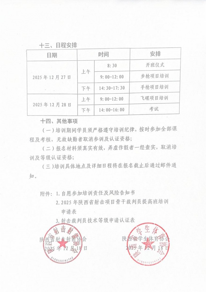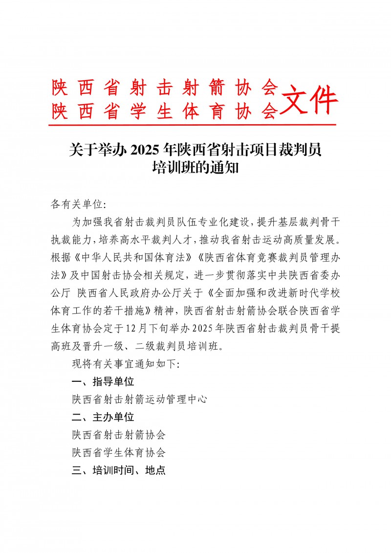 关于举办2025年陕西省射击项目裁判员培训班的通知