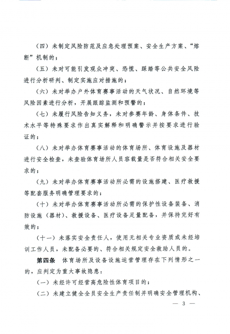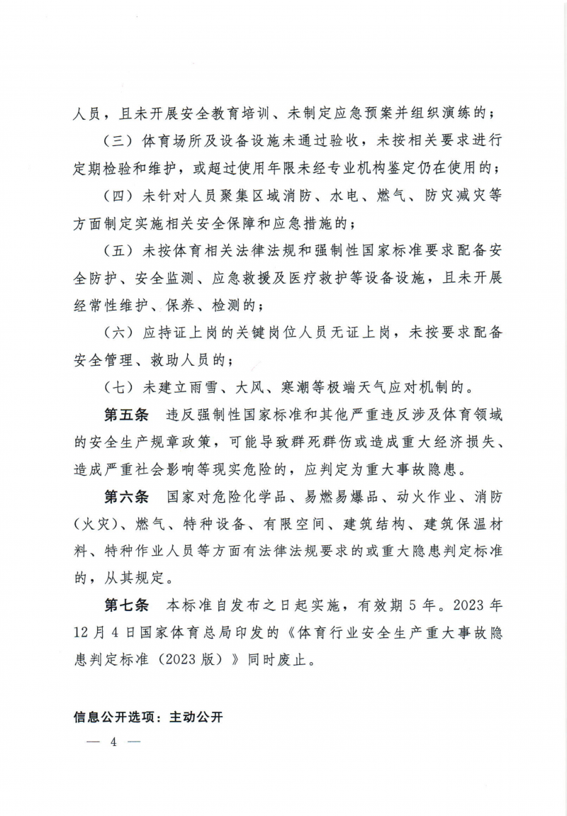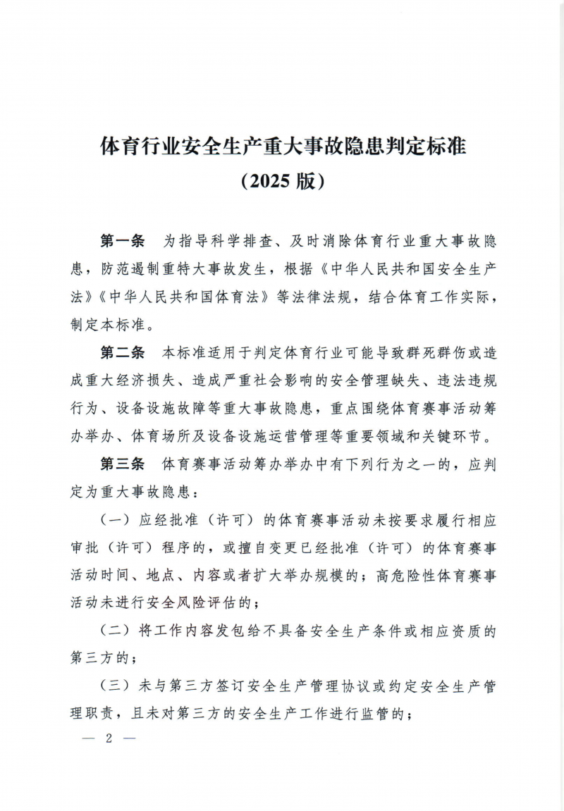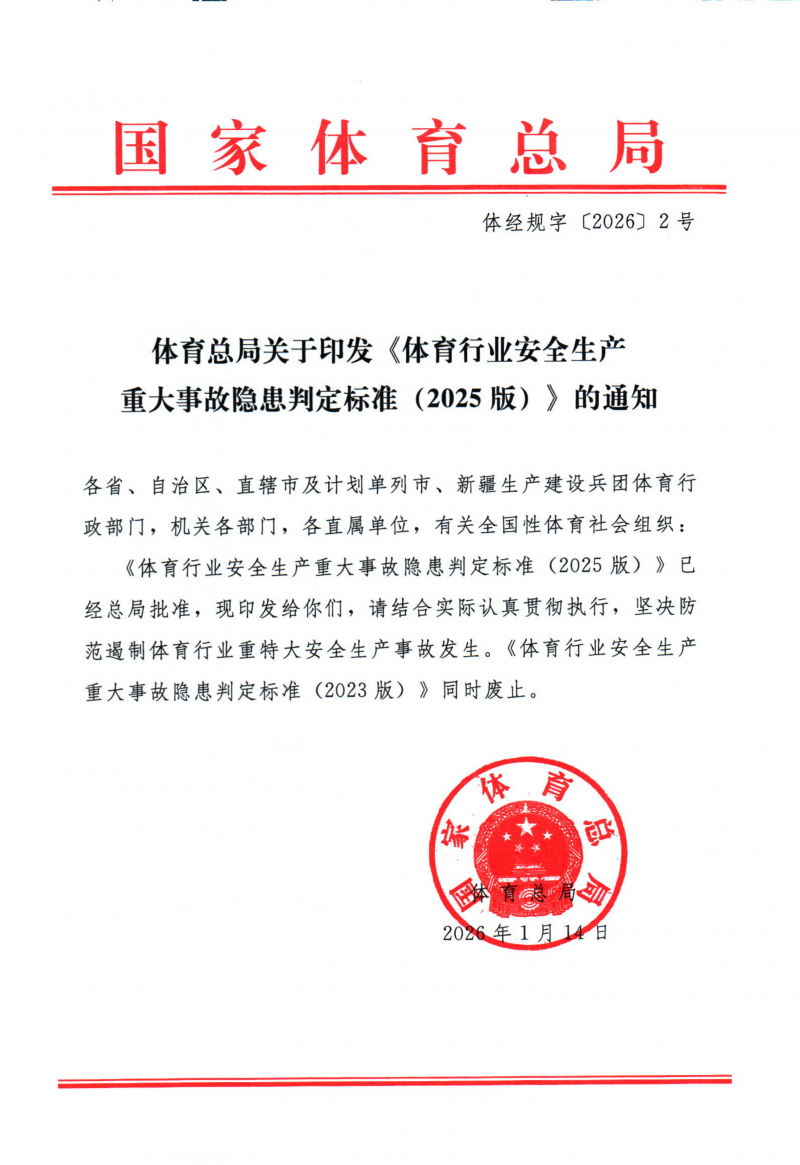 体育总局关于印发《体育行业安全生产重大事故隐患判定标准 (2025 版)》的通知