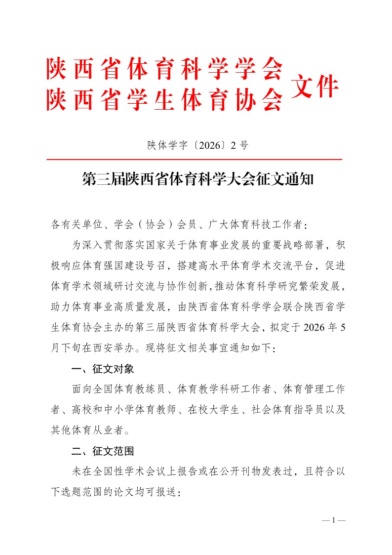 第三届陕西省体育科学大会征文通知