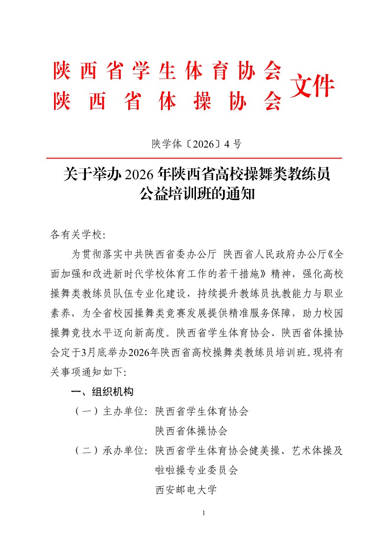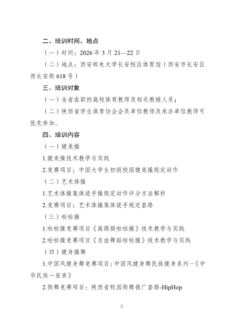 关于举办2026年陕西省高校操舞类教练员公益培训班的通知