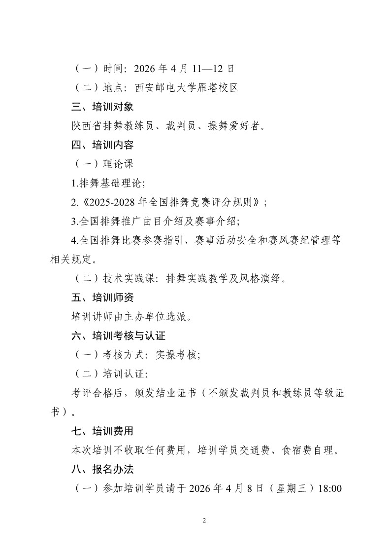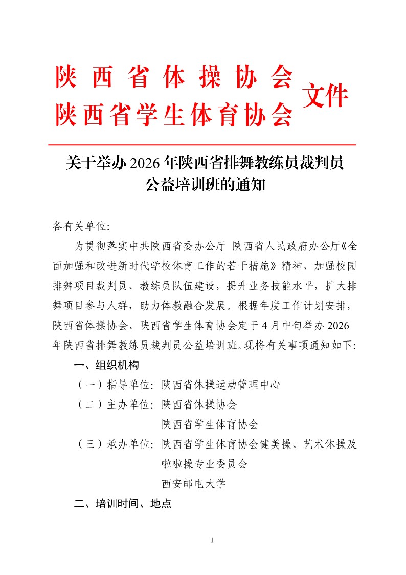 • 关于举办2026年陕西省高校操舞类教练员公益培训班的通知