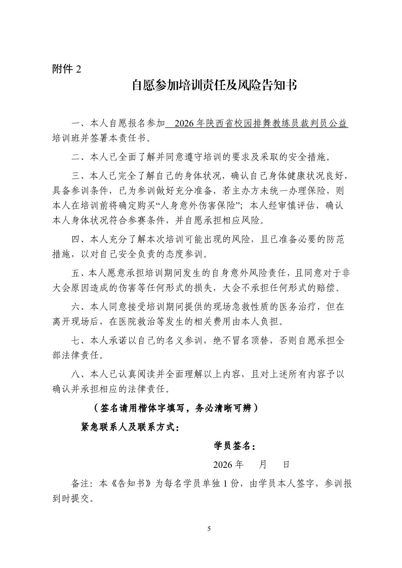 关于举办2026年陕西省排舞教练员裁判员公益培训班的通知