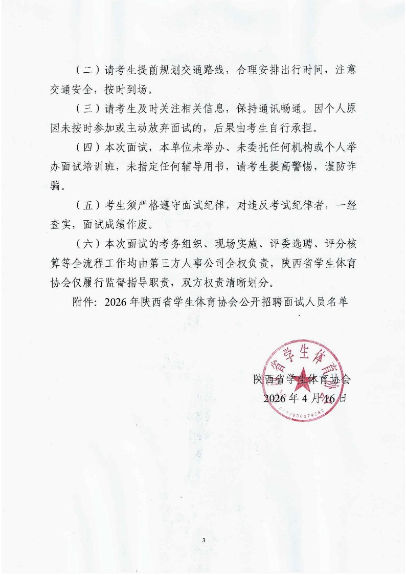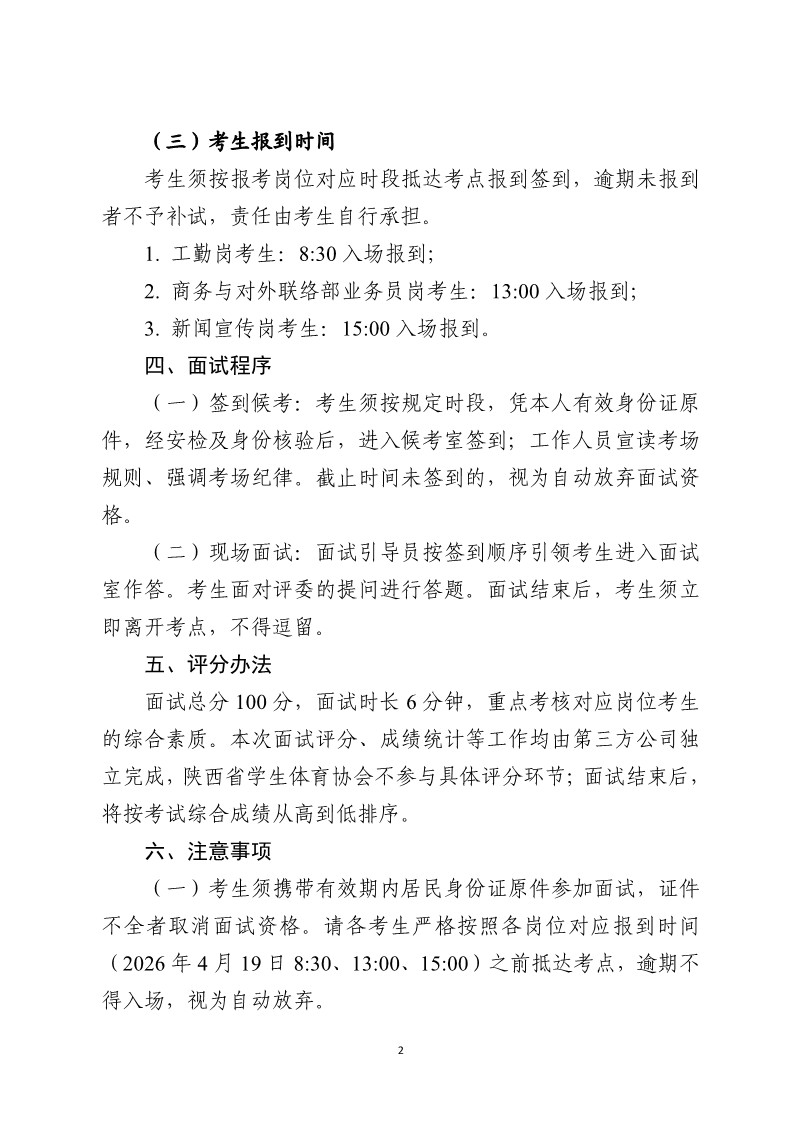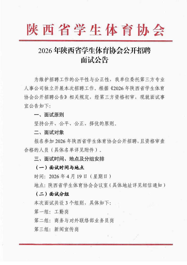 2026年陕西省学生体育协会公开招聘面试公告