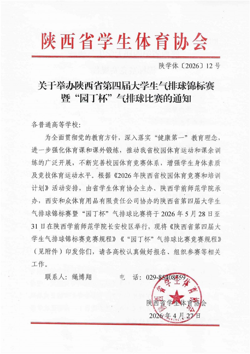 关于举办陕西省第四届大学生气排球锦标赛暨“园丁杯”气排球比赛的通知