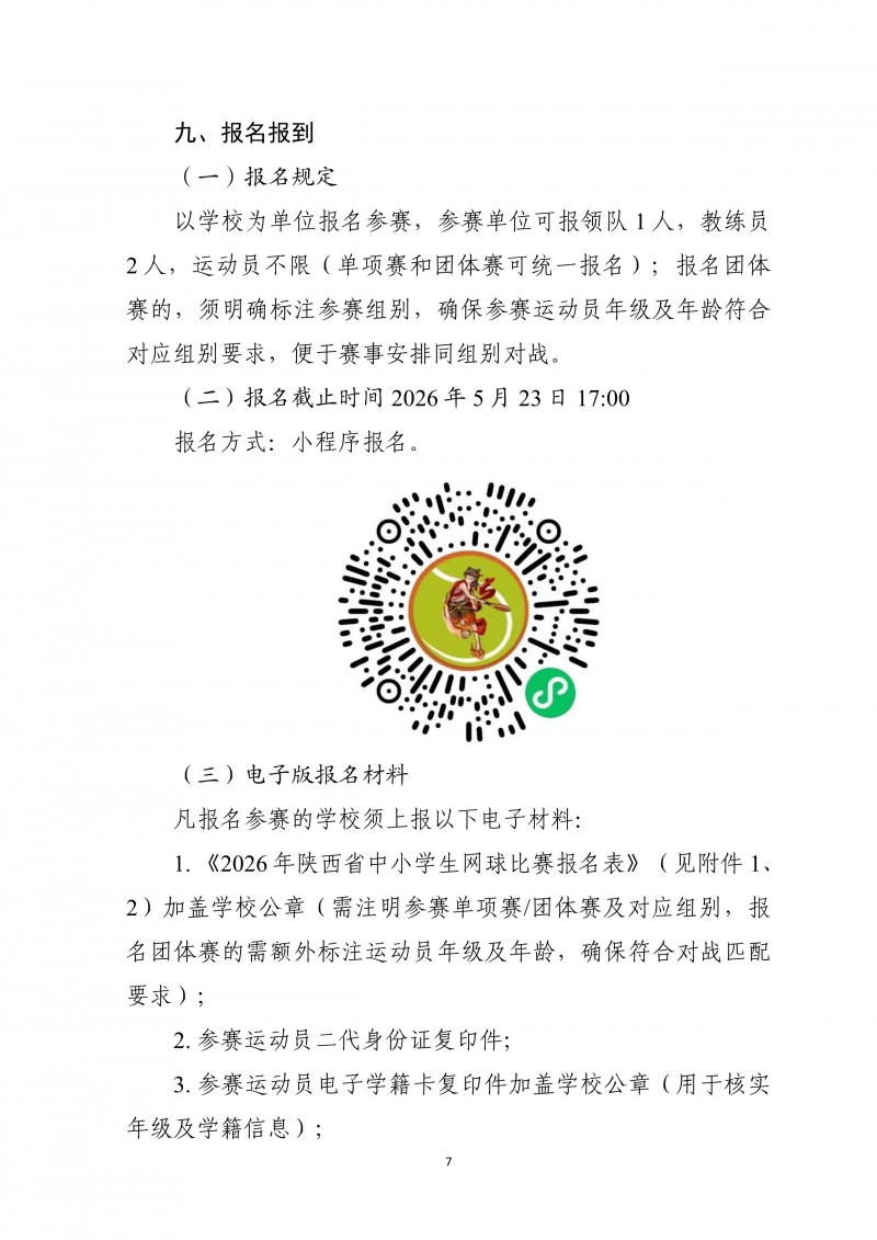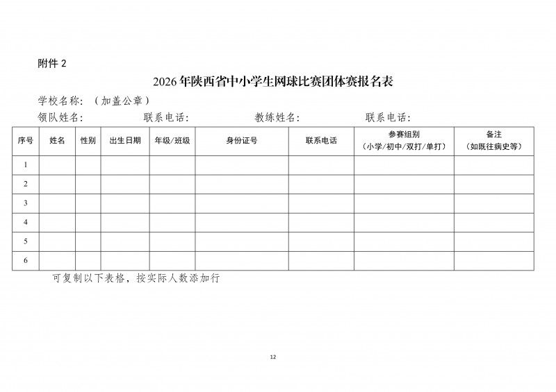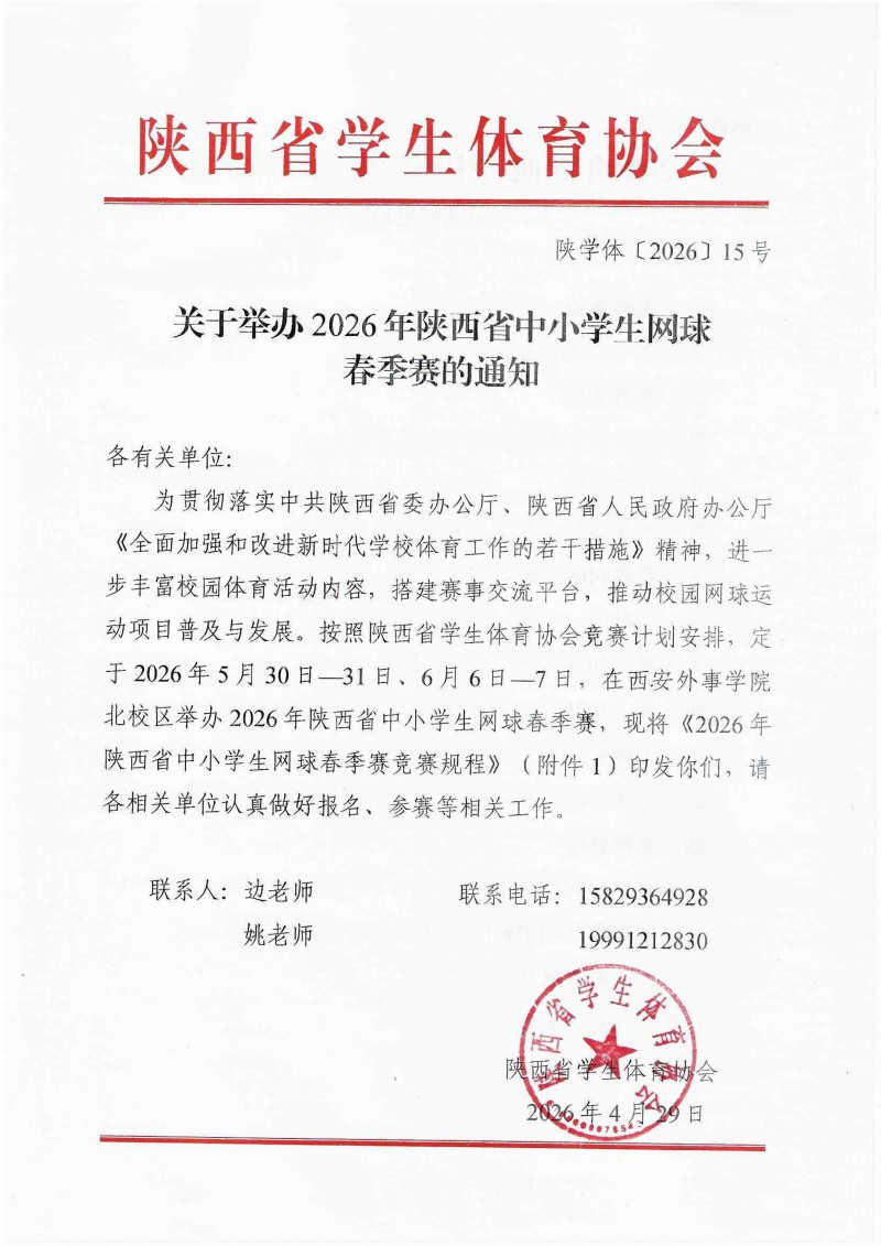 关于举办2026年陕西省中小学生网球春季赛的通知