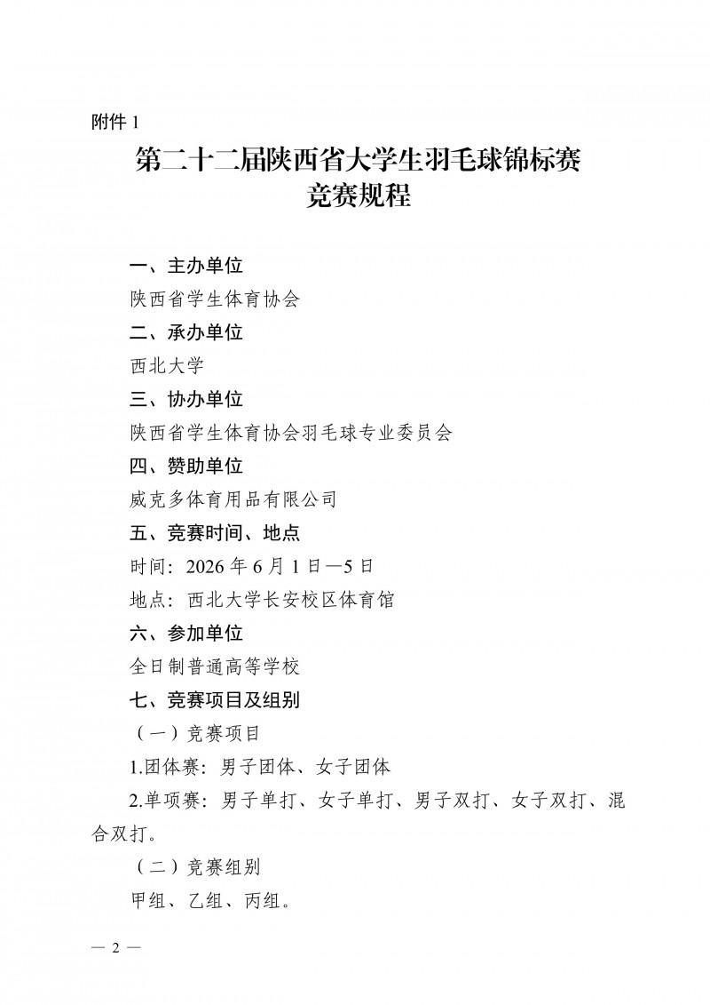 关于举办第二十二届陕西省大学生羽毛球锦标赛暨“校长杯”比赛的通知.pdf