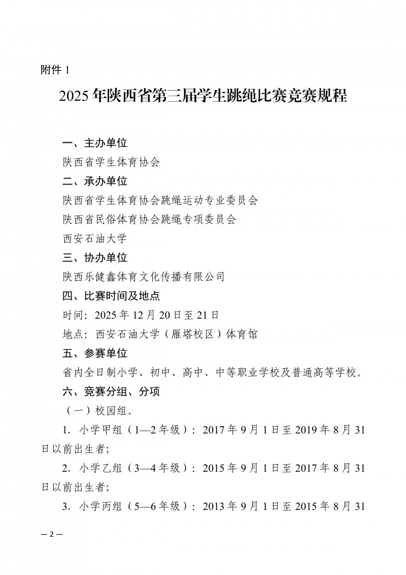 关于举办2025年陕西省第三届学生跳绳比赛的通知