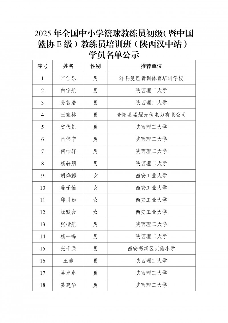 2025 年全国中小学篮球教练员初级(中国篮协E级)教练员培训班(陕西汉中站)学员名单公示.pdf