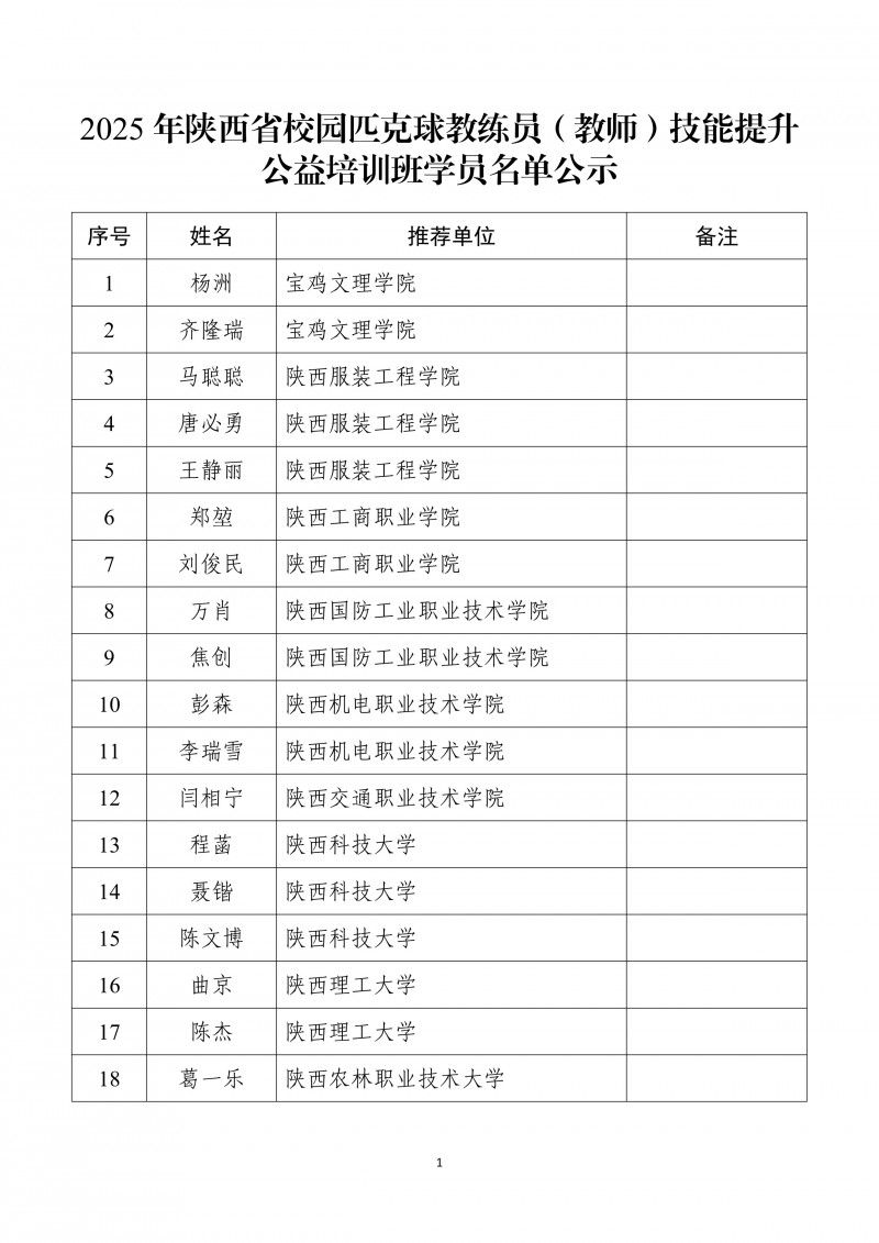 2025年陕西省校园匹克球教练员(教师)技能提升公益培训班学员名单公示