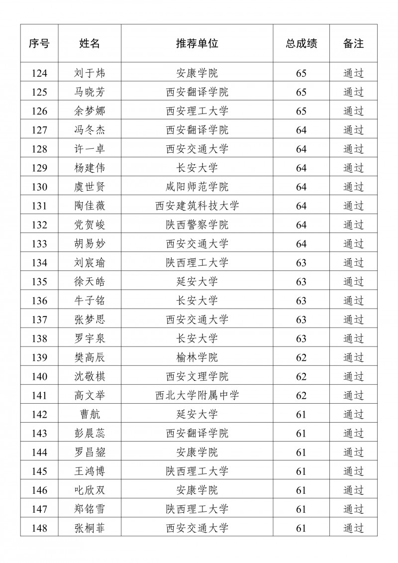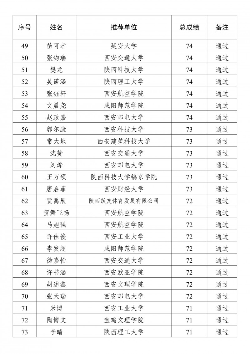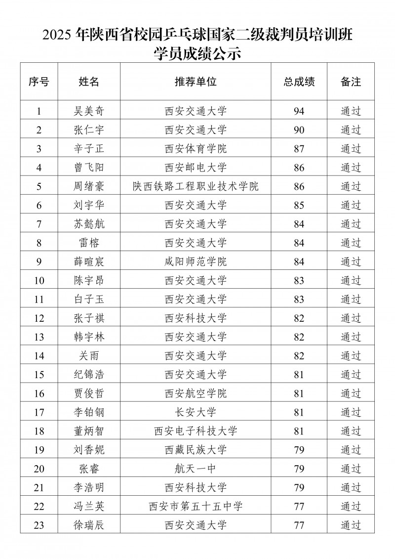 2025年陕西省校园乒乓球国家二级裁判员培训班学员成绩公示