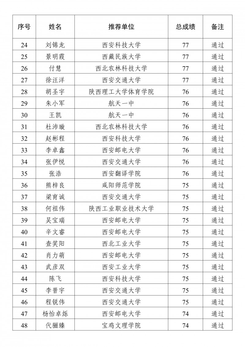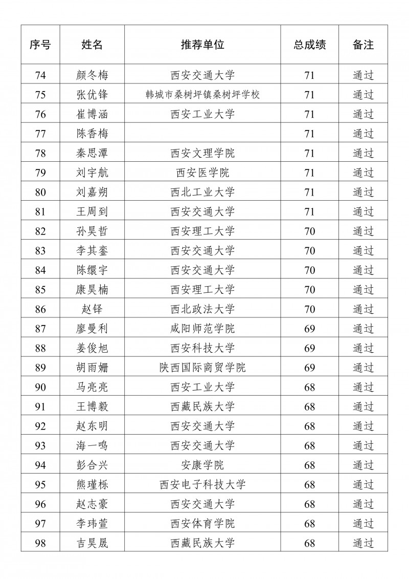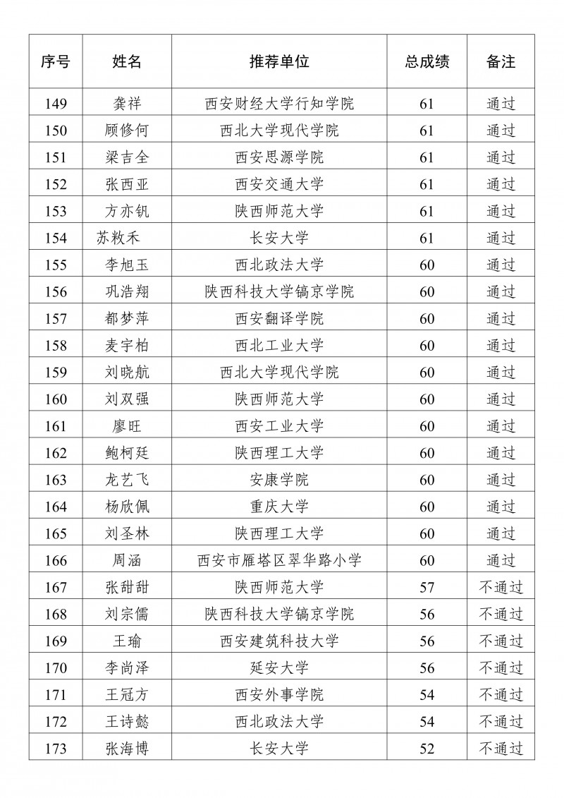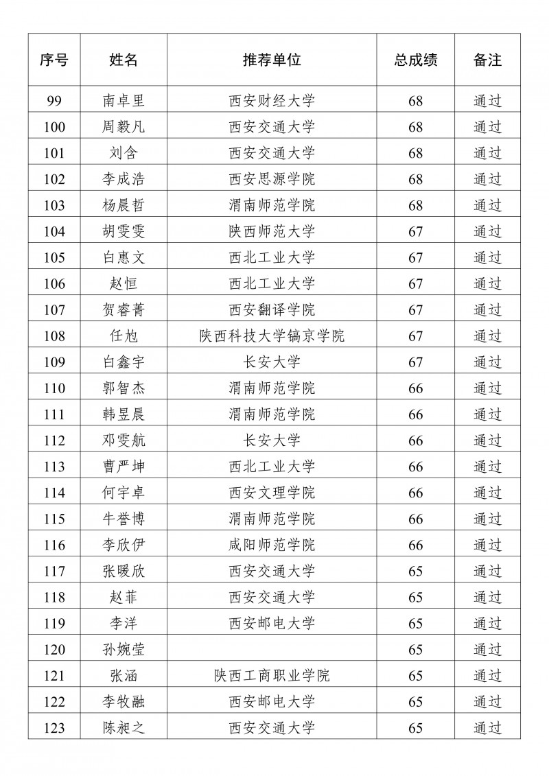 2025年陕西省校园乒乓球国家二级裁判员培训班学员成绩公示