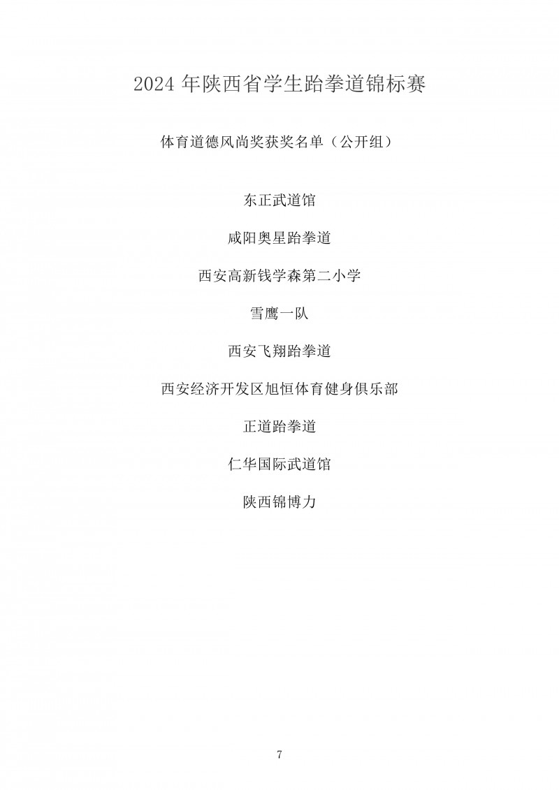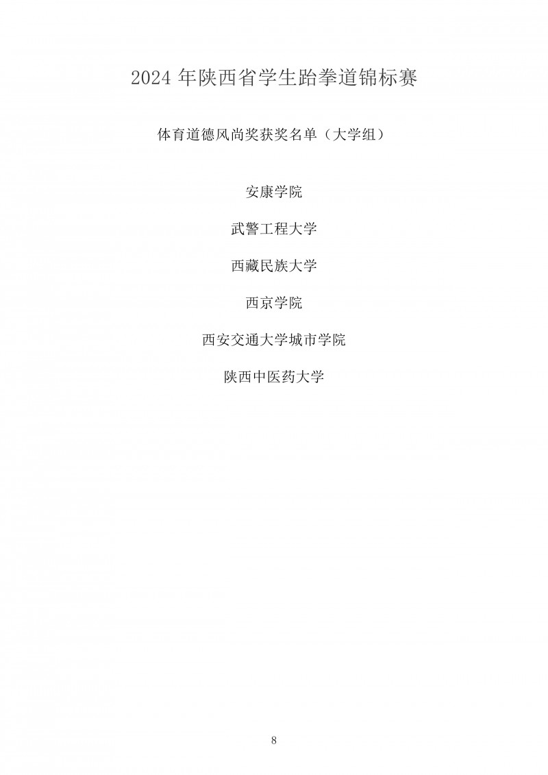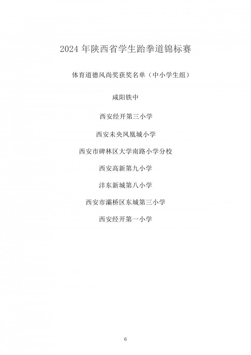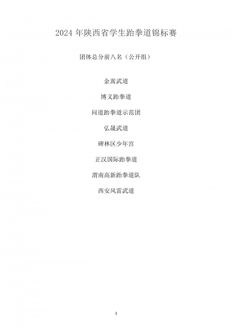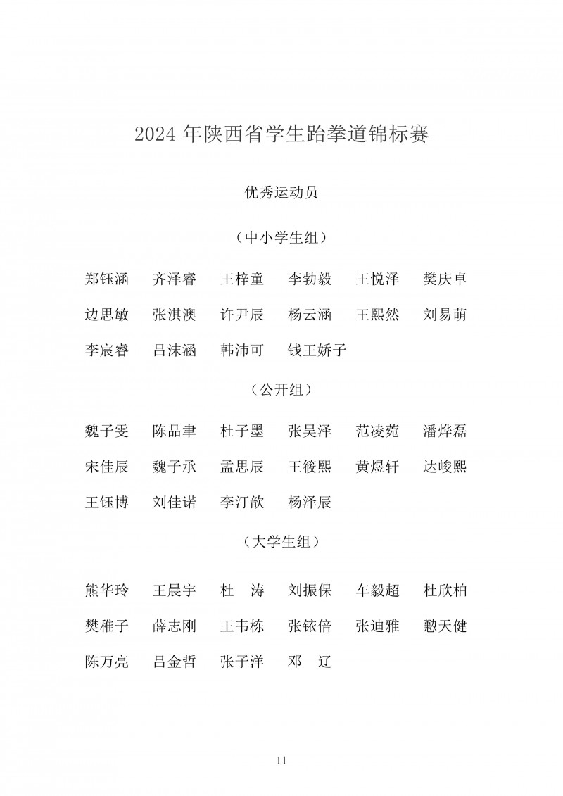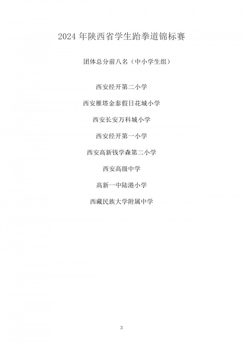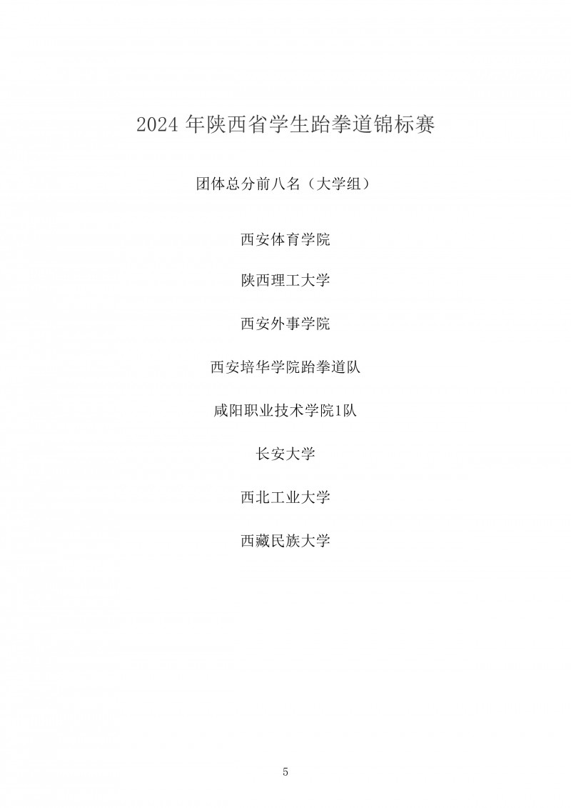 2024年陕西省学生跆拳道锦标赛成绩册