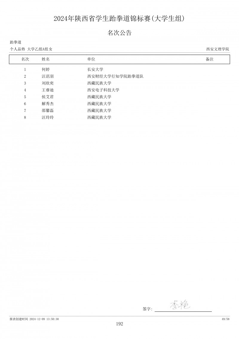 • 2025 年陕西省大学生武术(套路)锦标赛成绩册