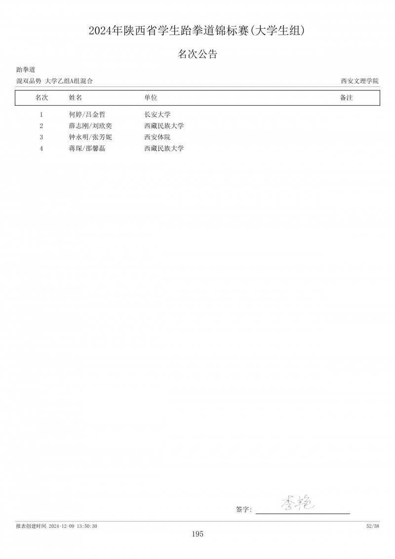 2024陕西省大学生匹克球锦标赛暨校长杯匹克球比赛成绩册