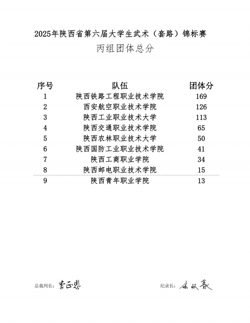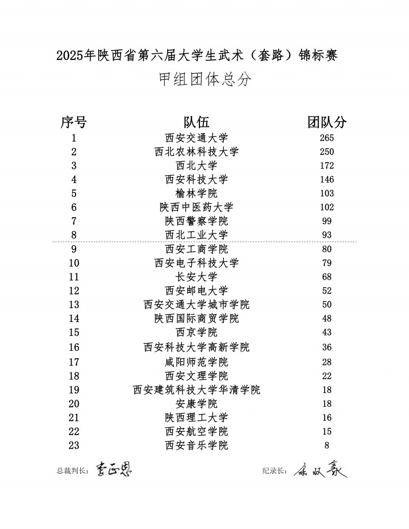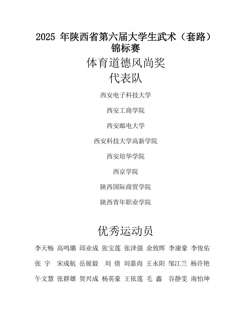 2025 年陕西省大学生武术(套路)锦标赛成绩册