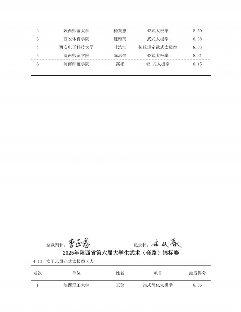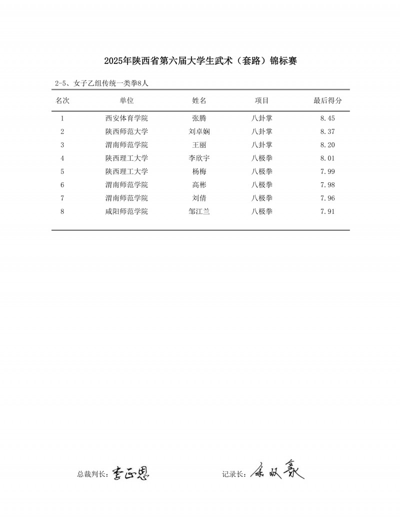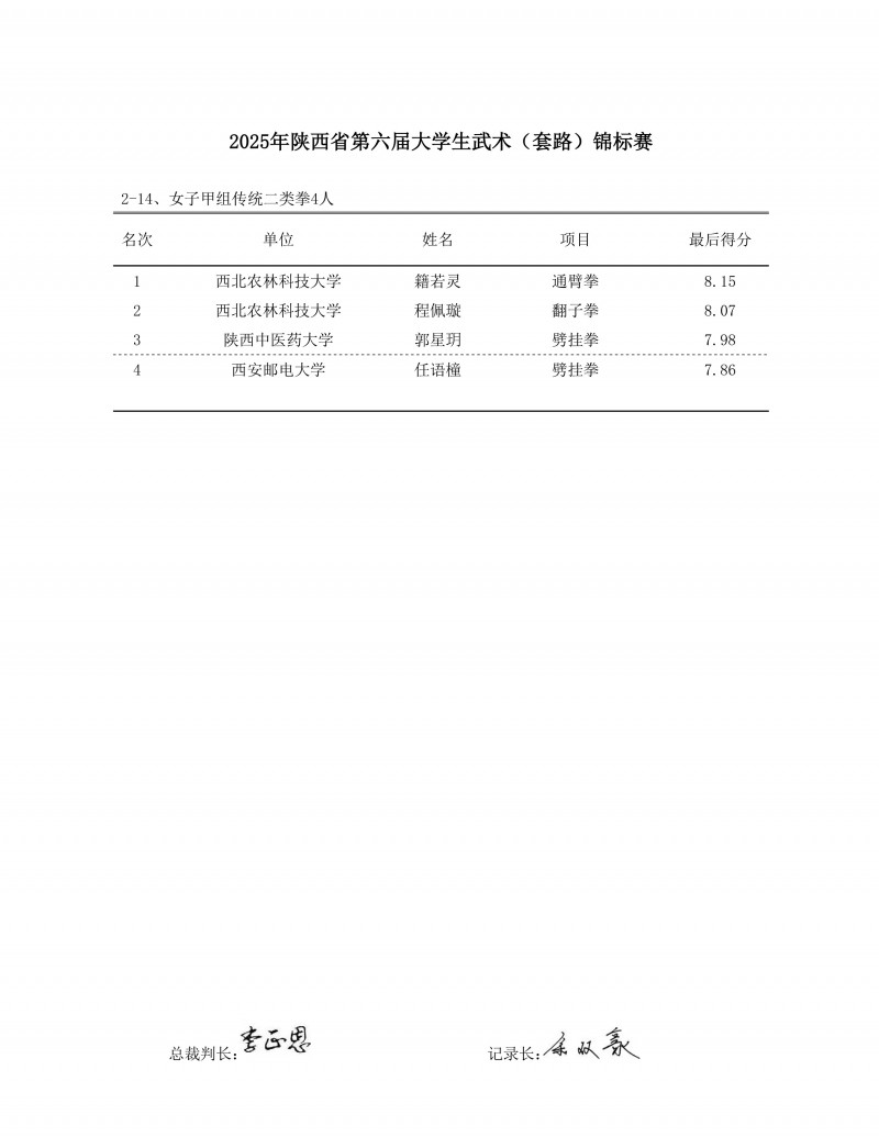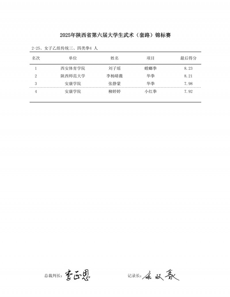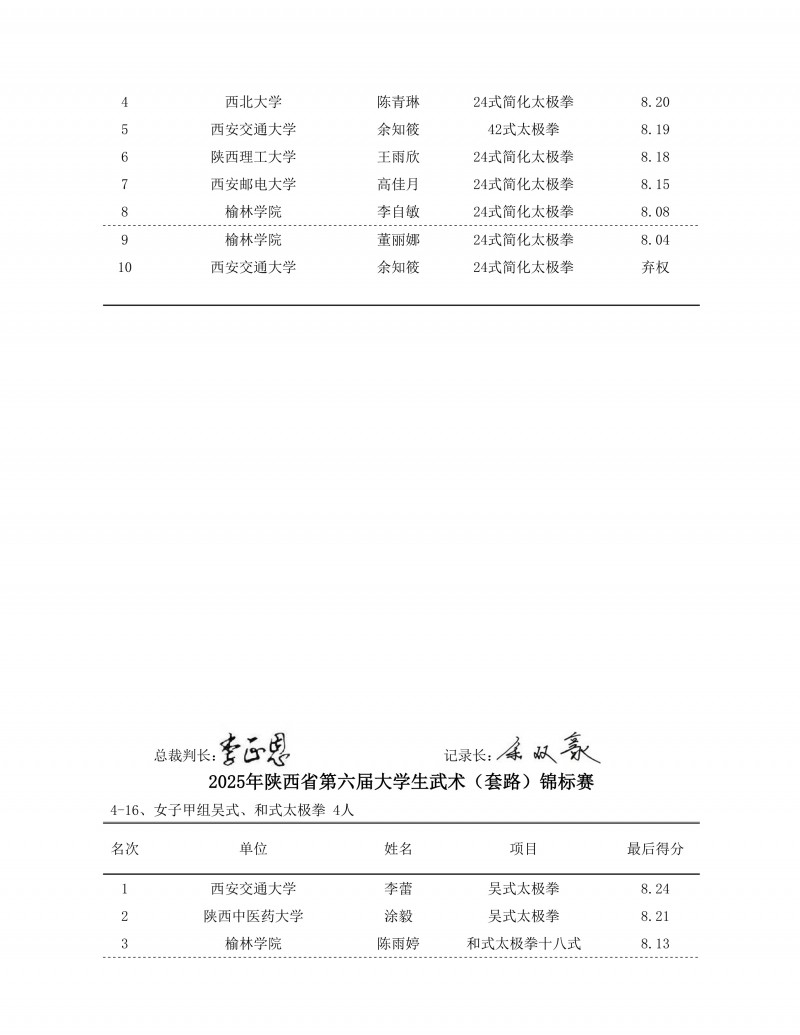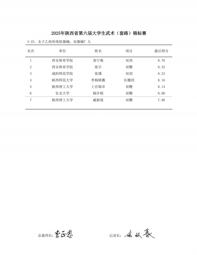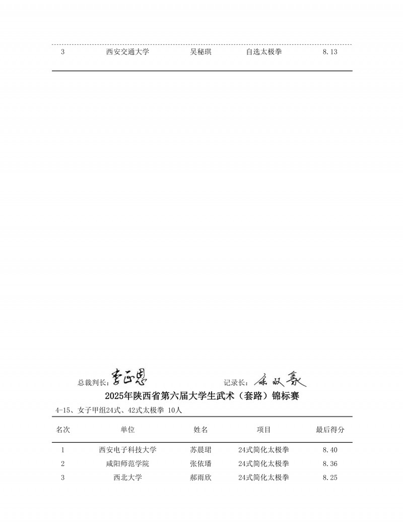 2025 年陕西省大学生武术(套路)锦标赛成绩册.pdf