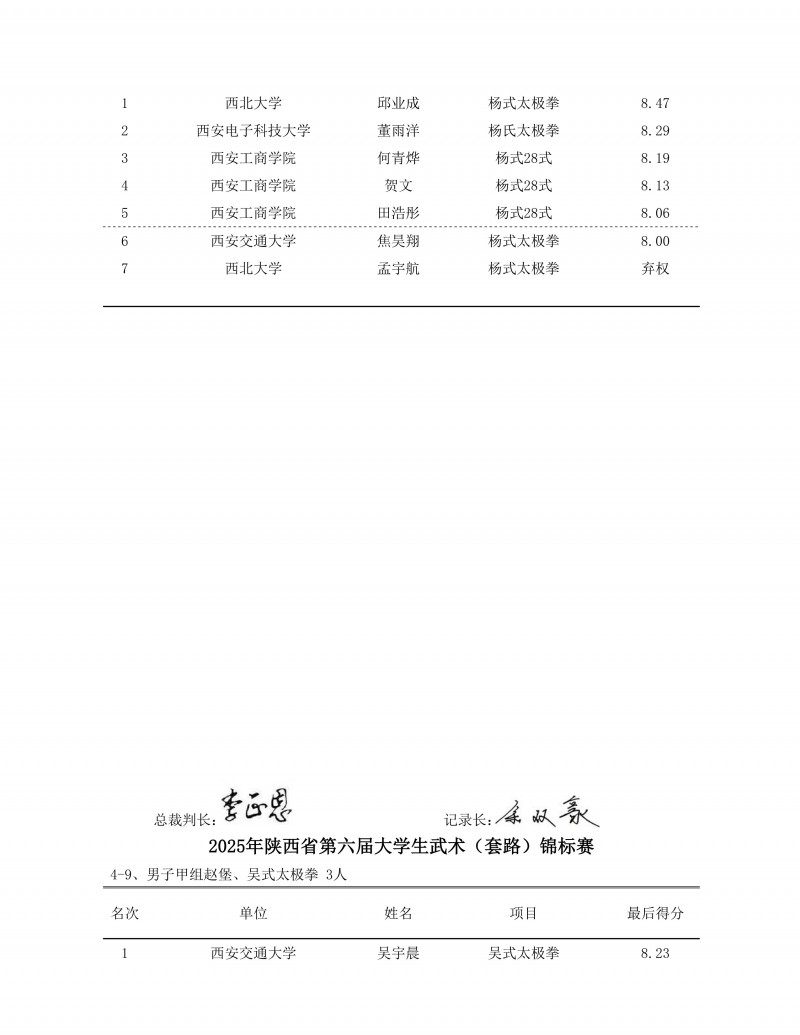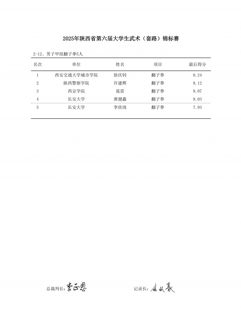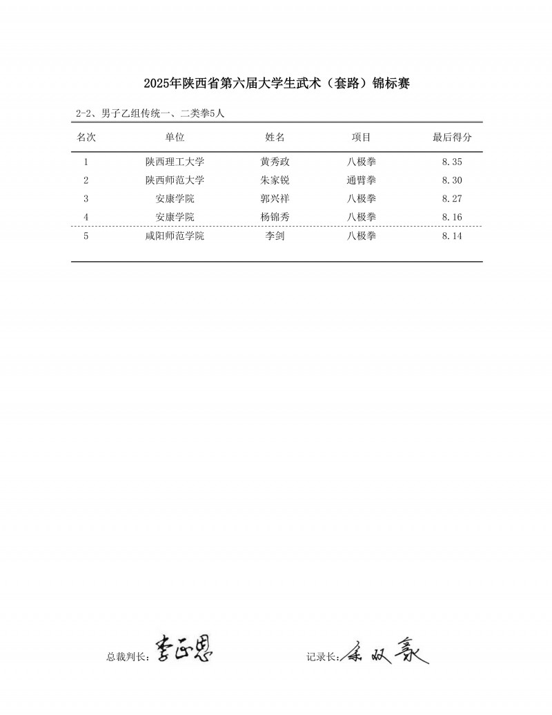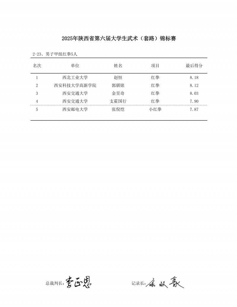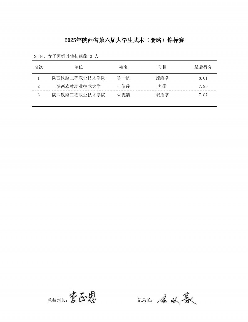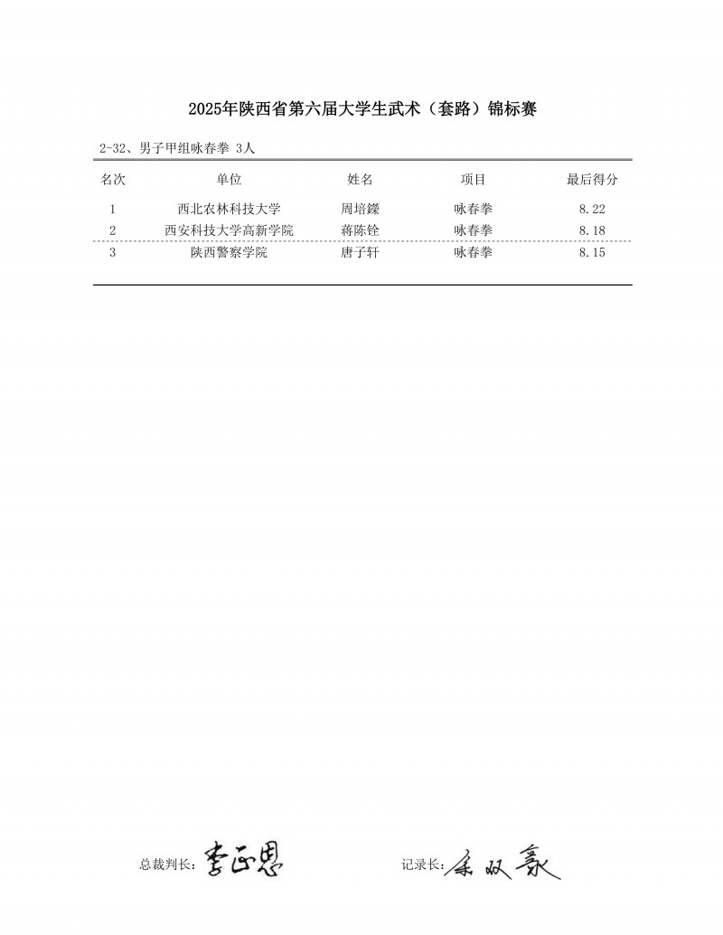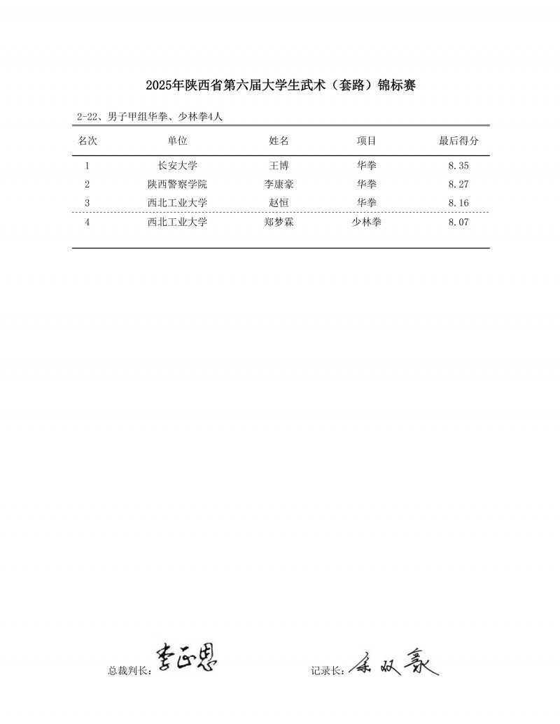 2025 年陕西省大学生武术(套路)锦标赛成绩册.pdf