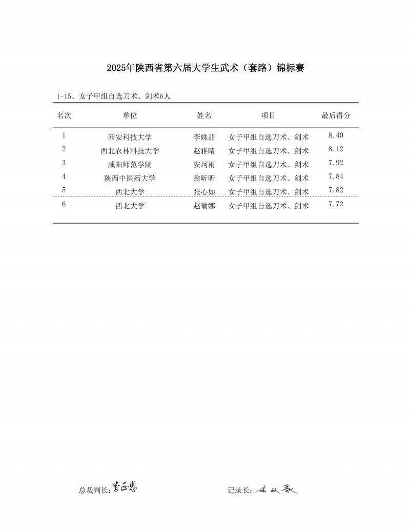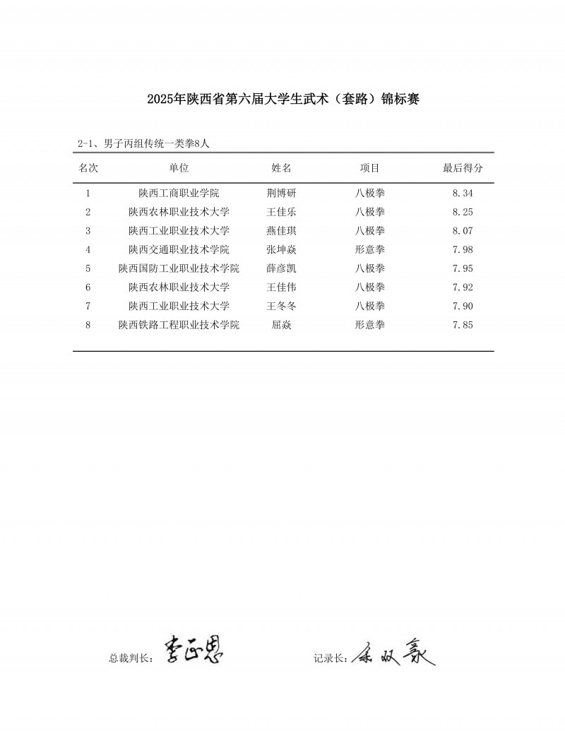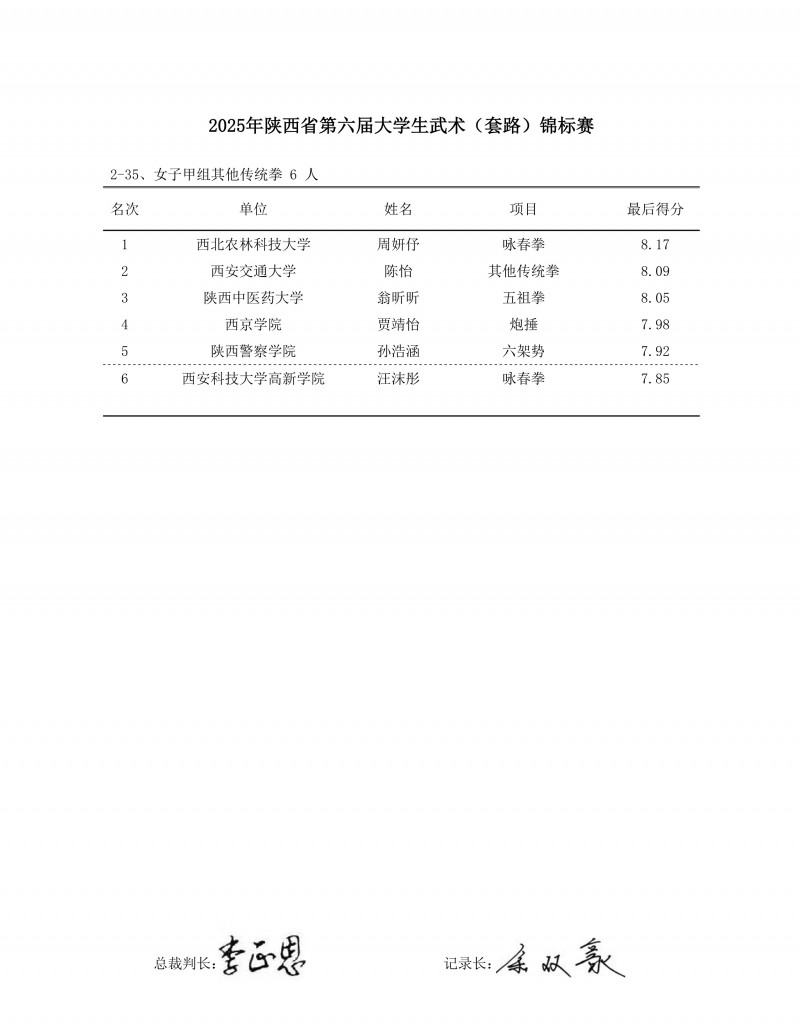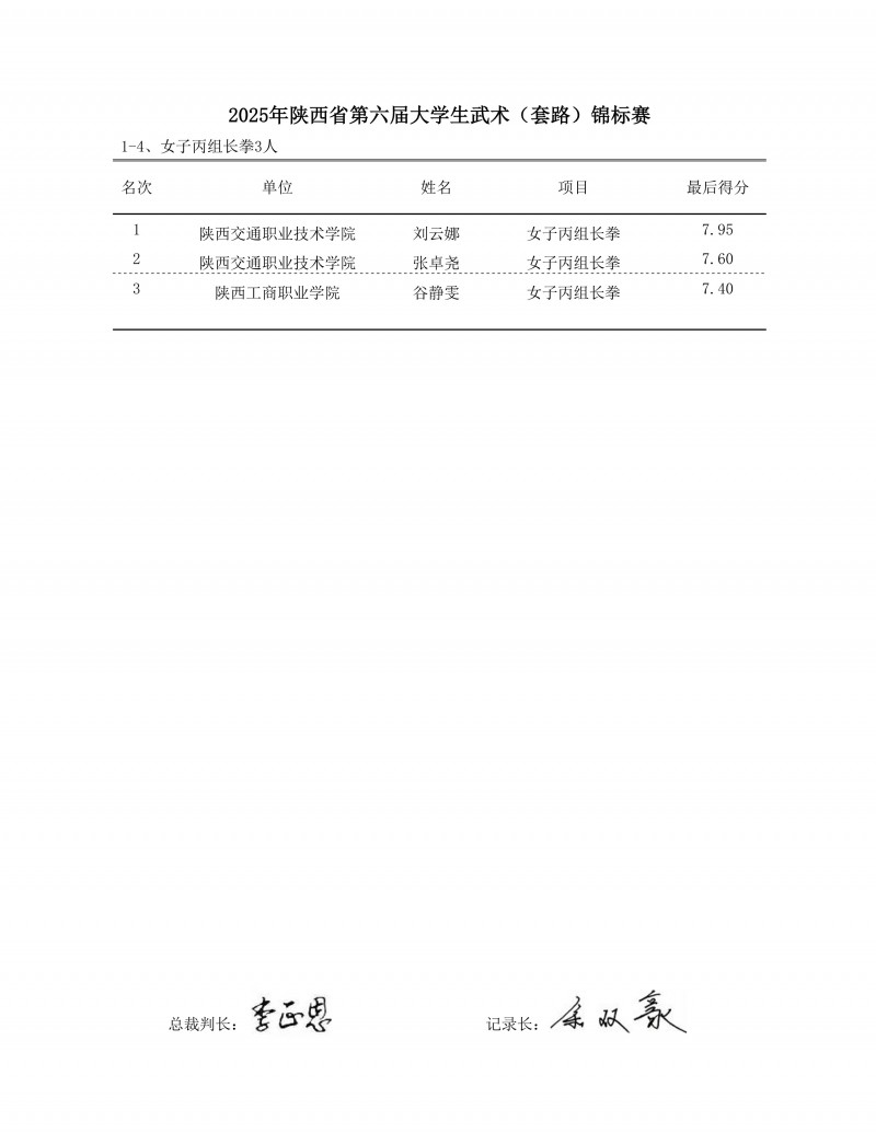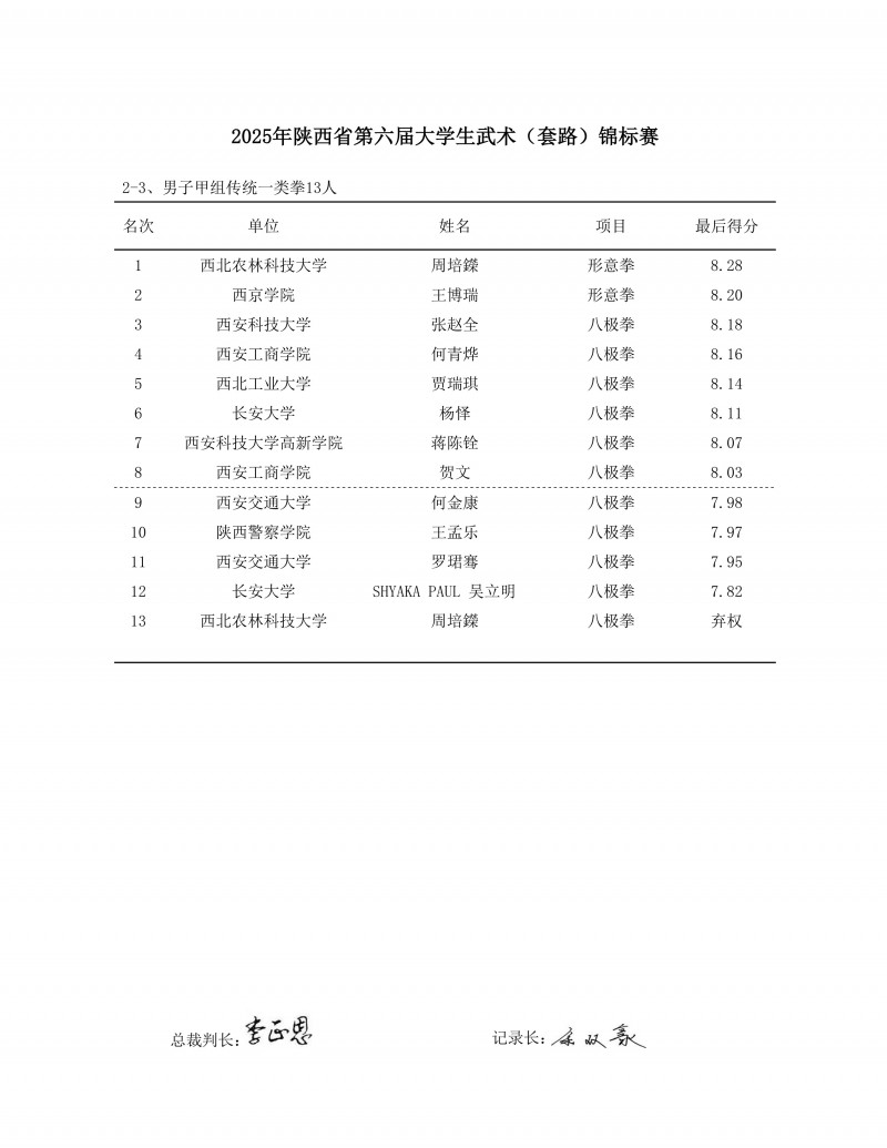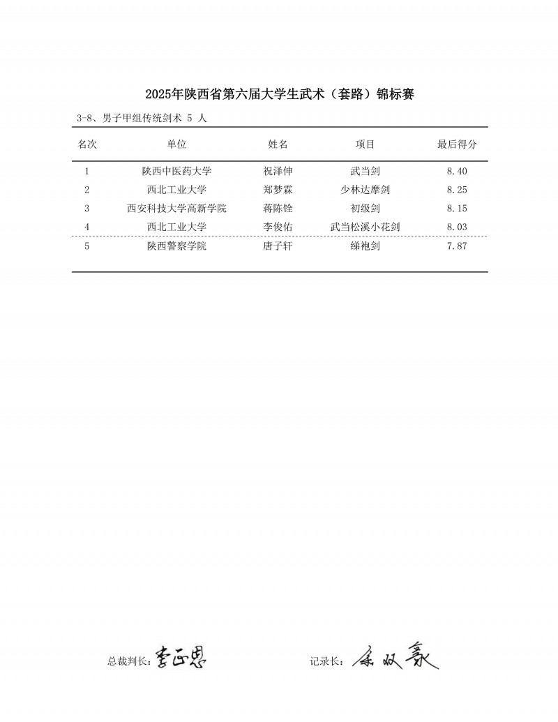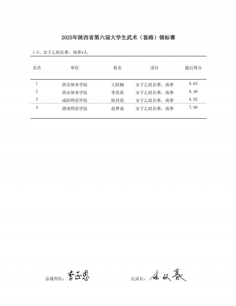 2025 年陕西省大学生武术(套路)锦标赛成绩册.pdf