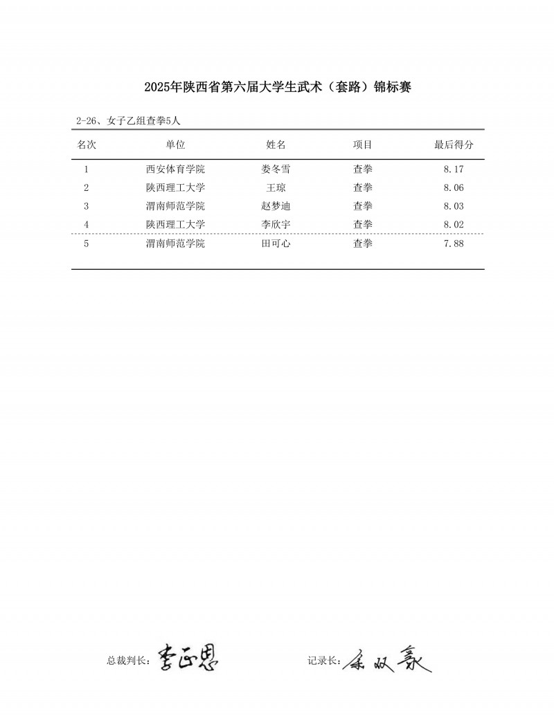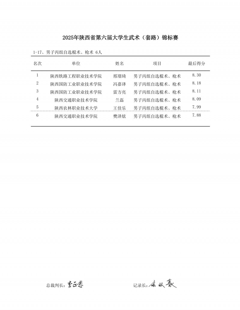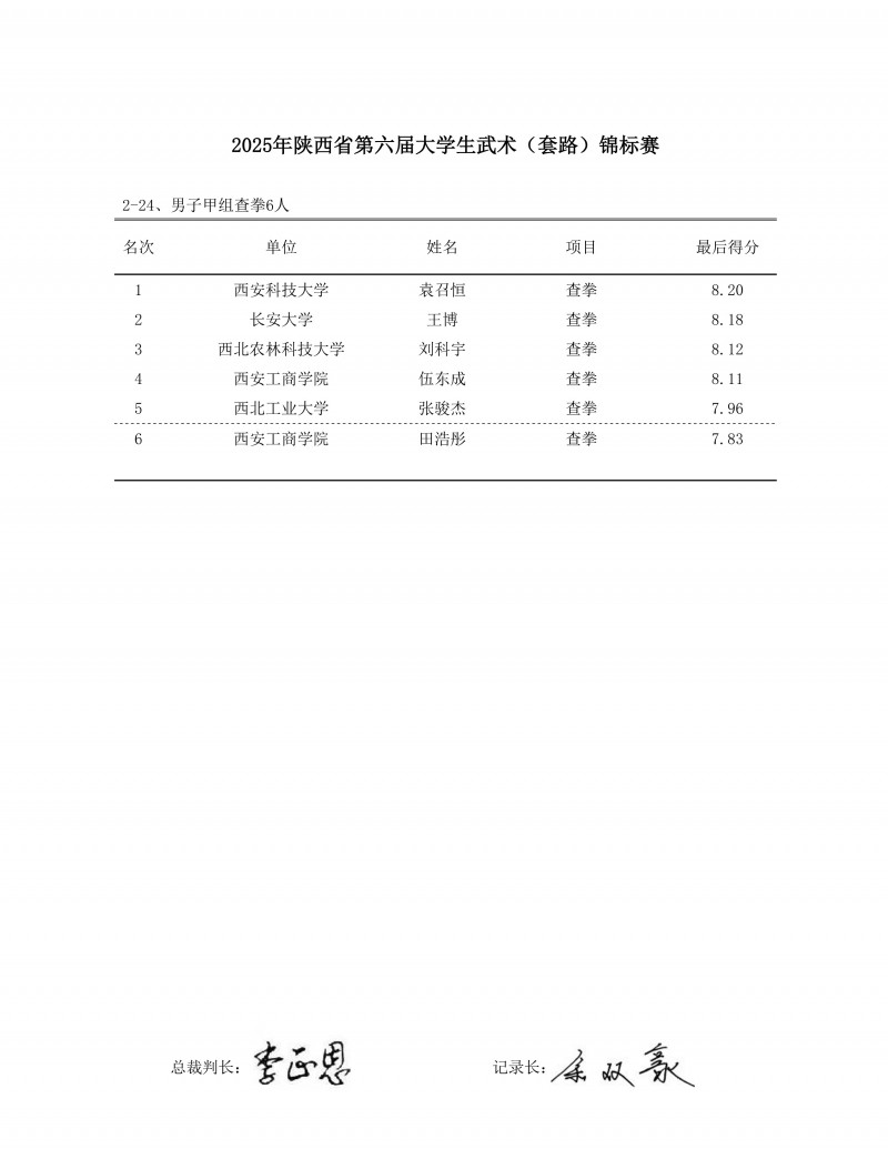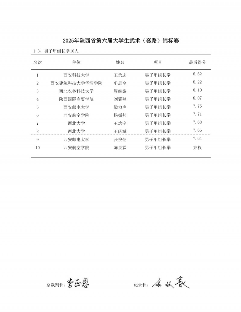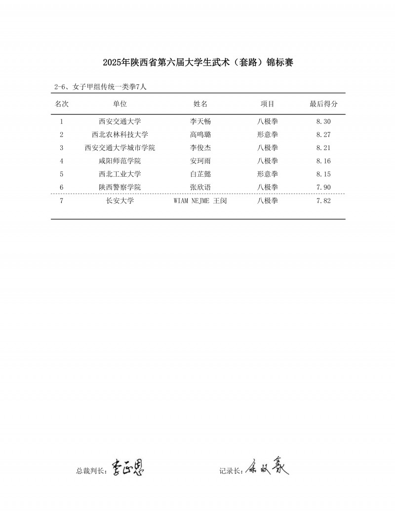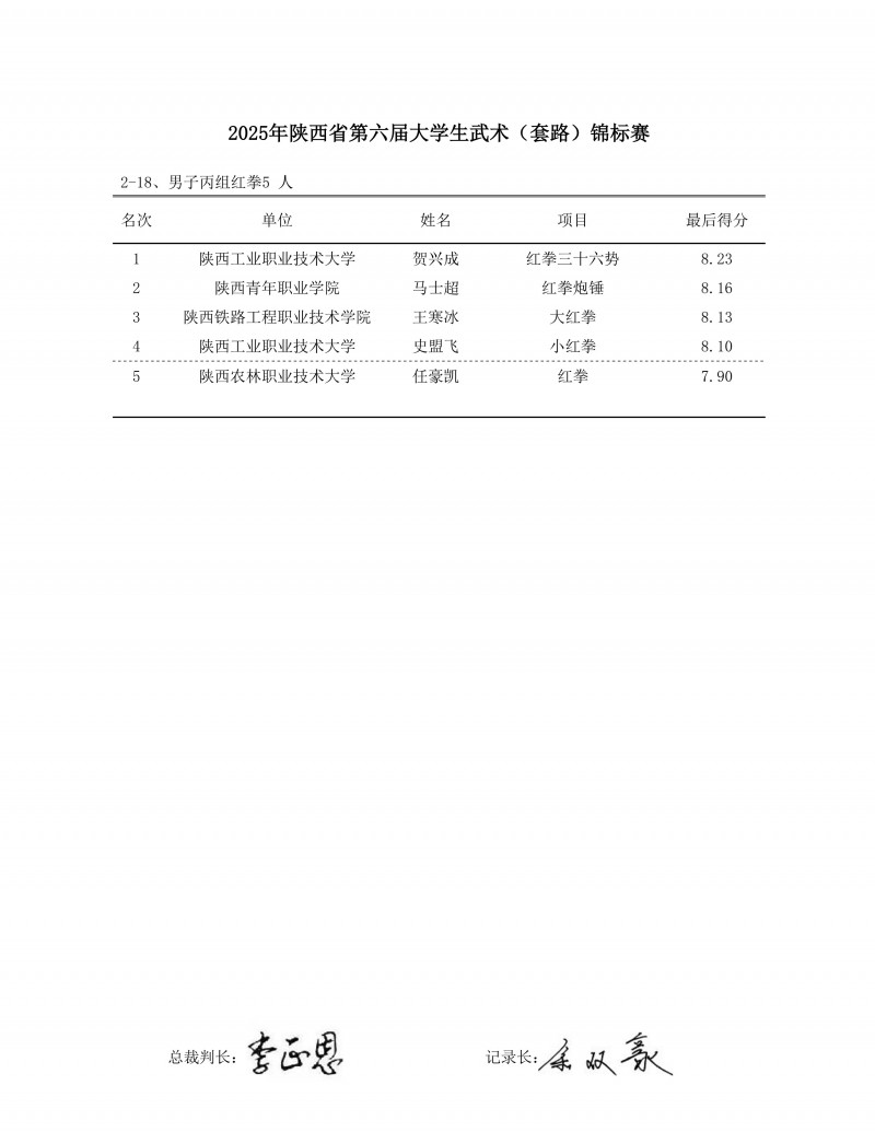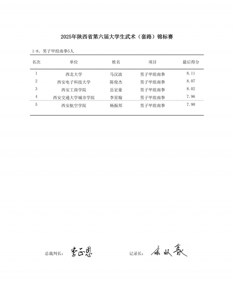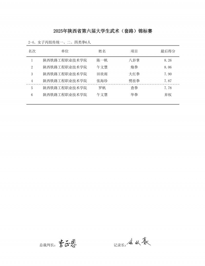 2025 年陕西省大学生武术(套路)锦标赛成绩册.pdf
