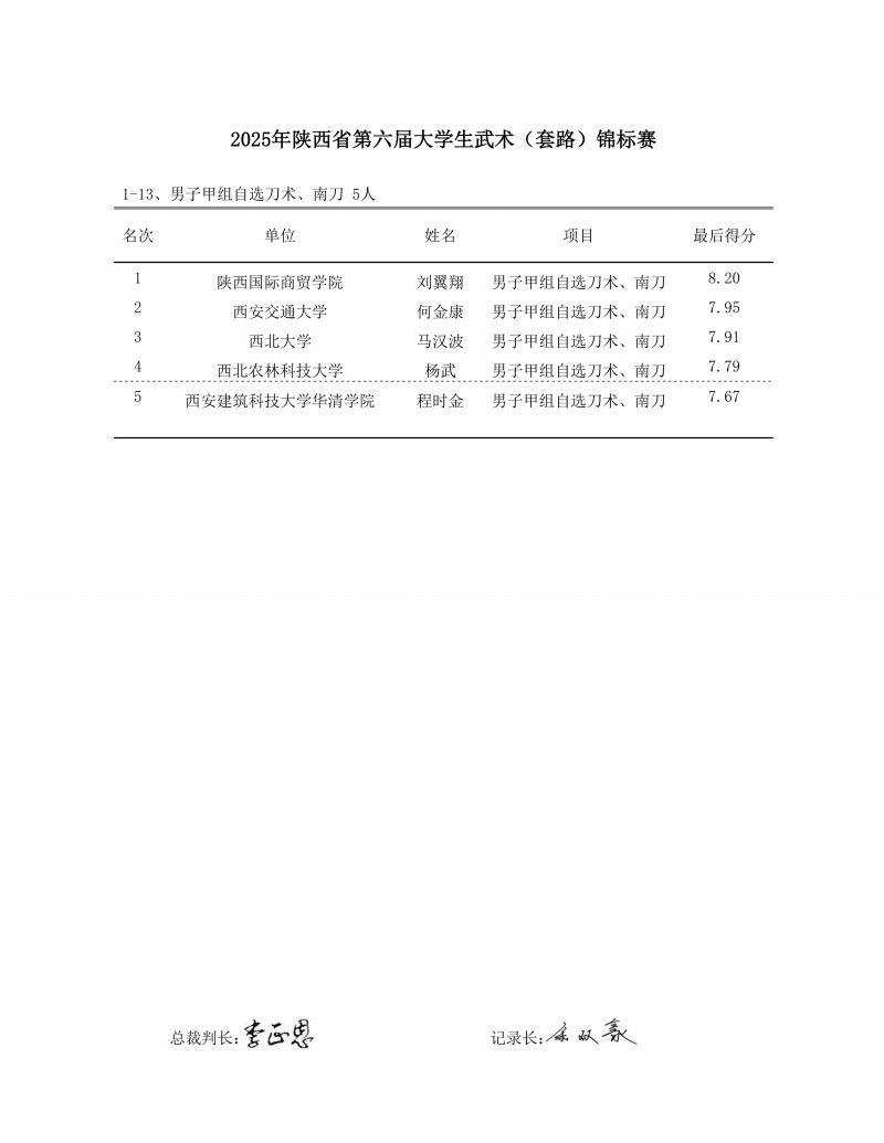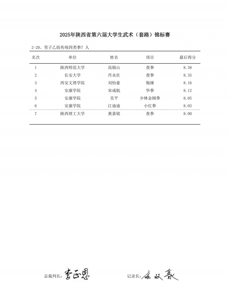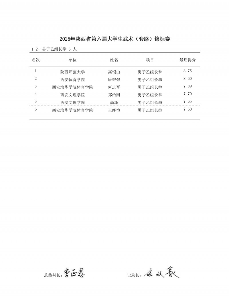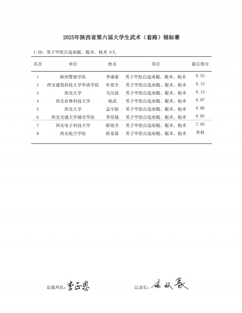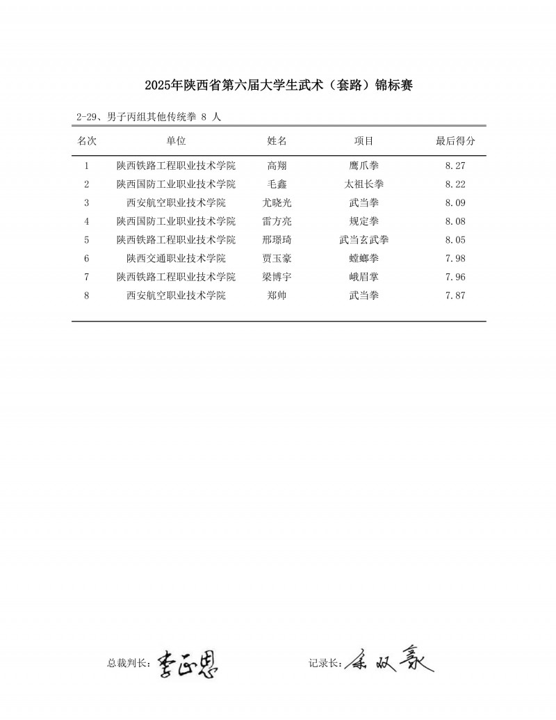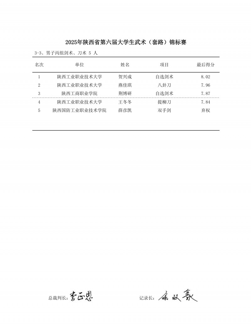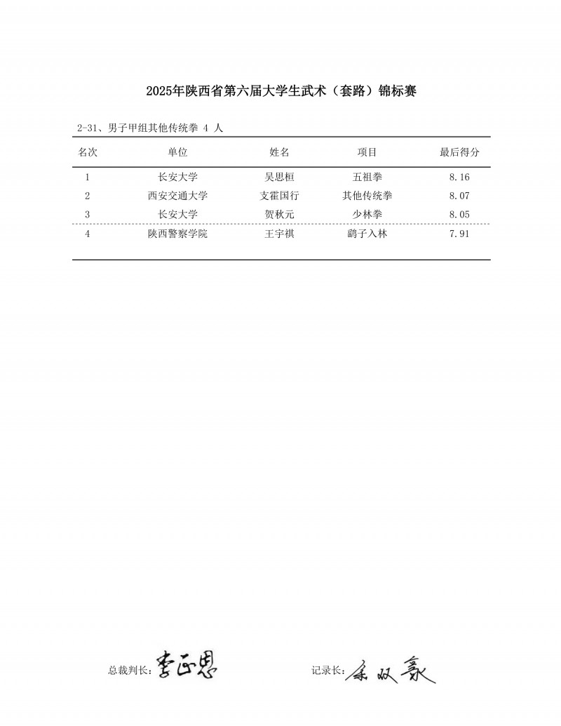 2025 年陕西省大学生武术(套路)锦标赛成绩册.pdf