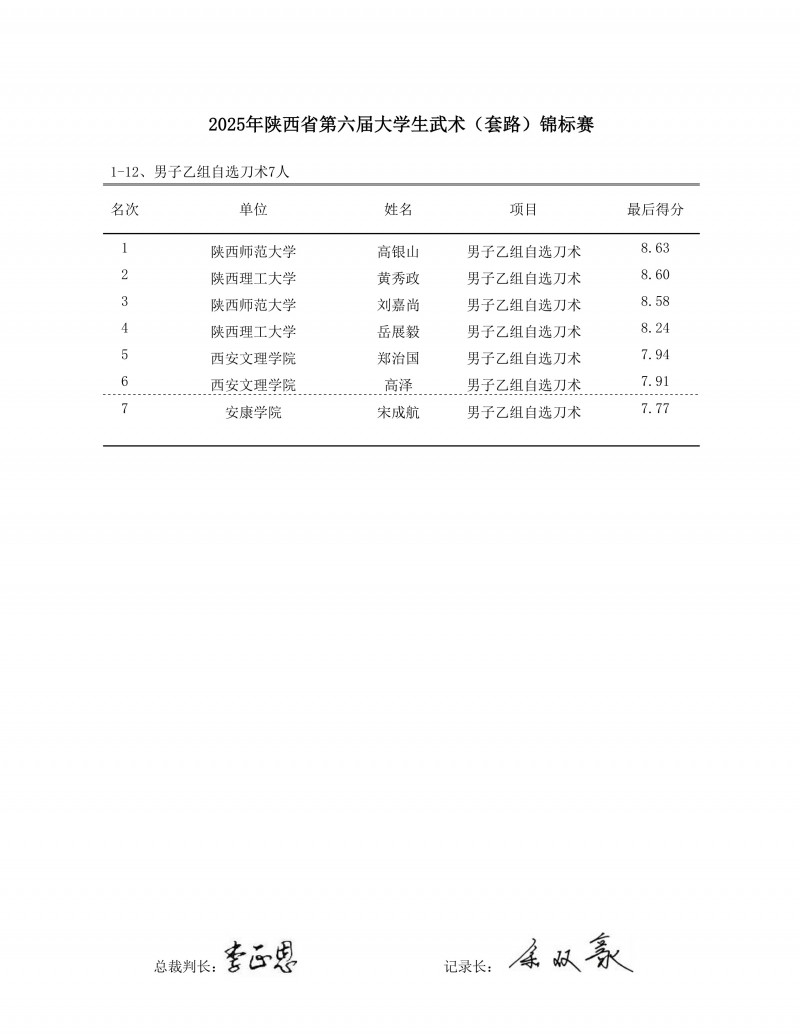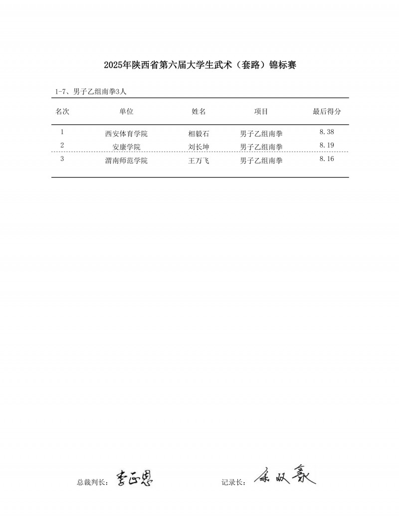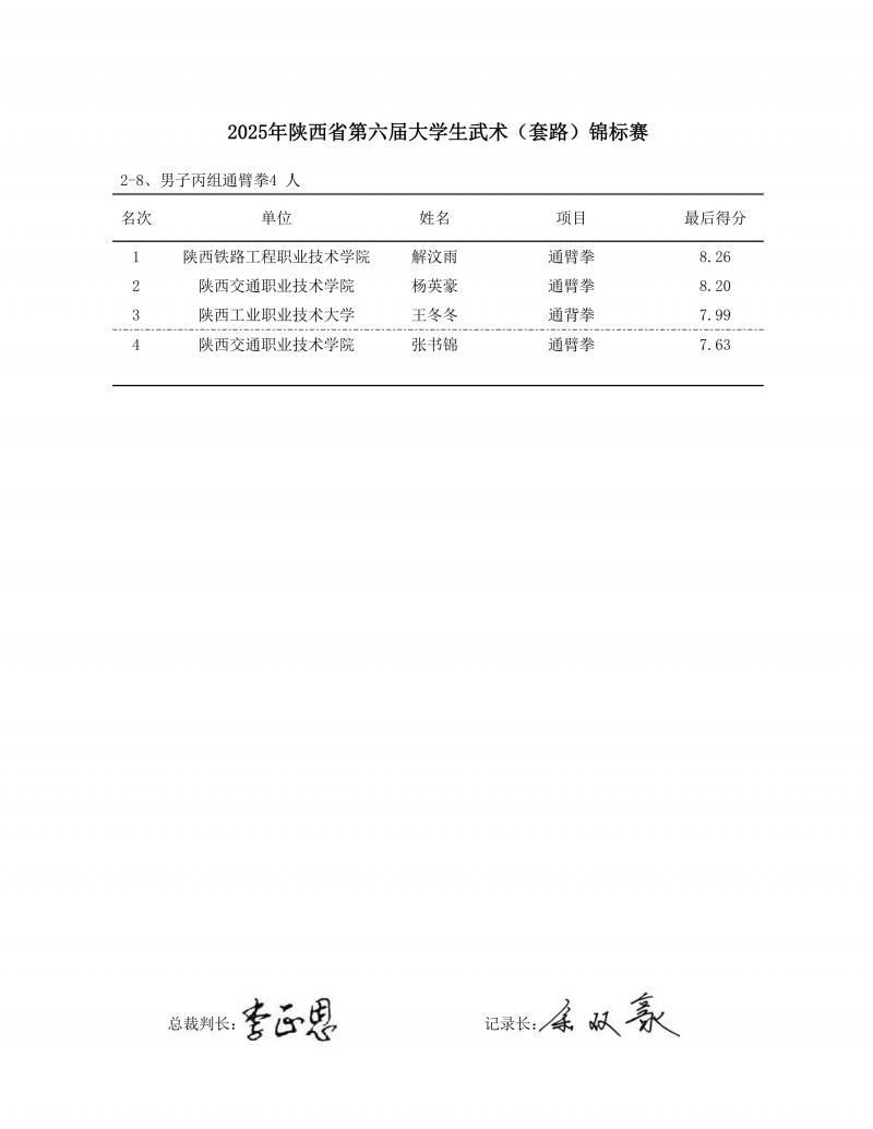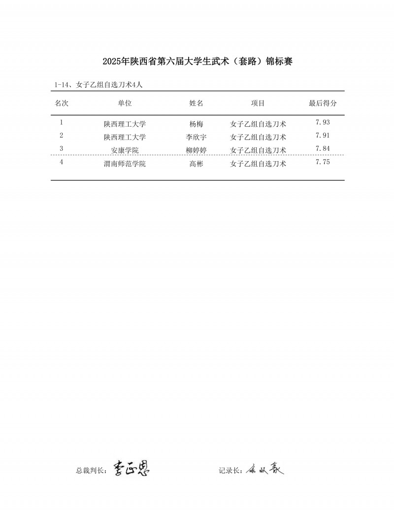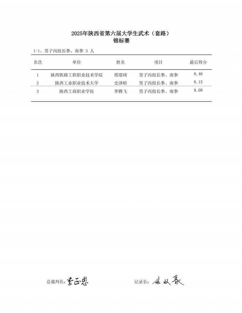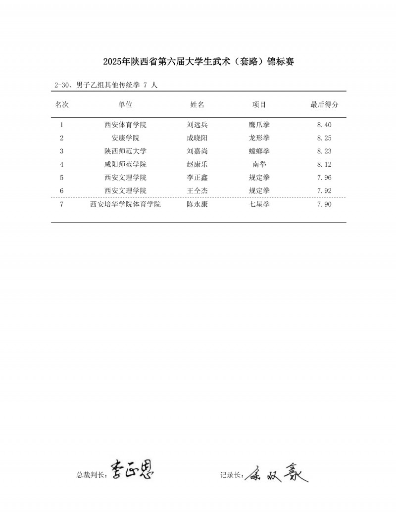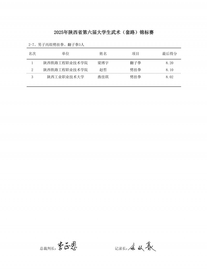 2025 年陕西省大学生武术(套路)锦标赛成绩册.pdf