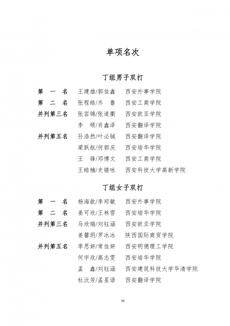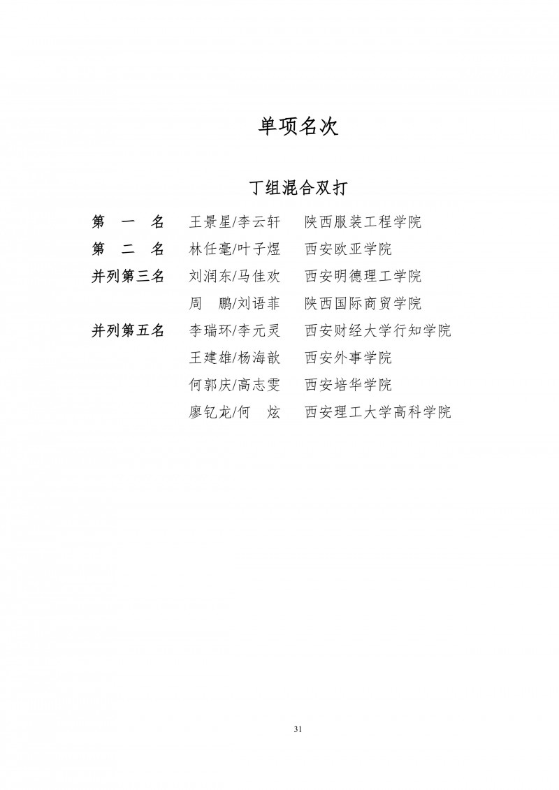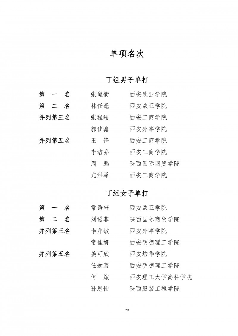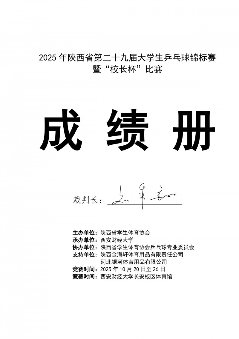 2025年陕西省第二十九届大学生乒乓球锦标赛暨“校长杯”比赛成绩册