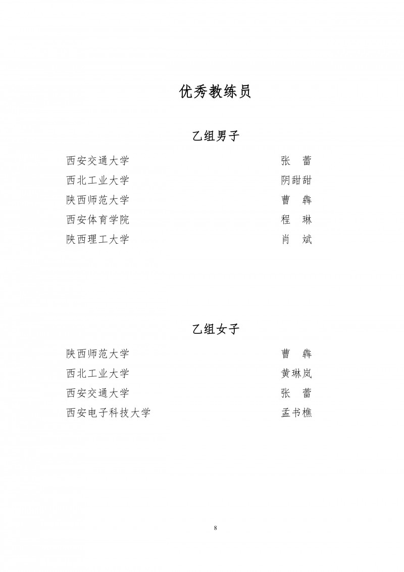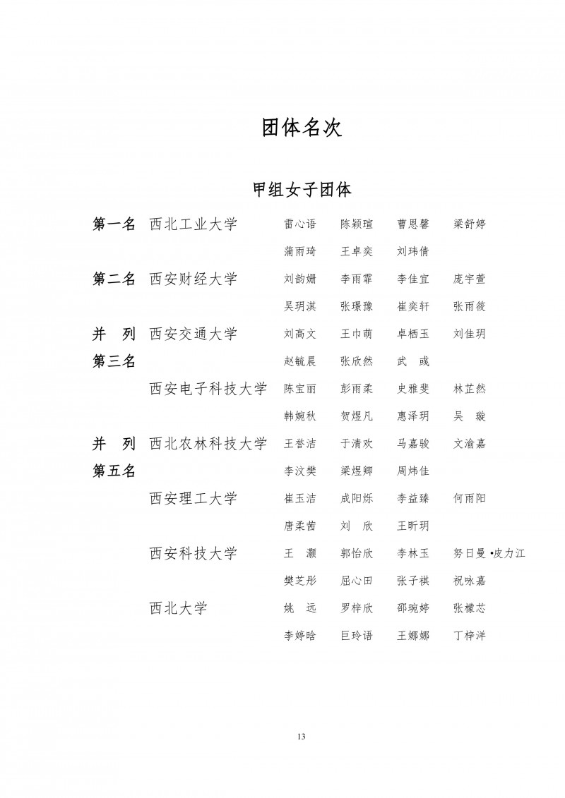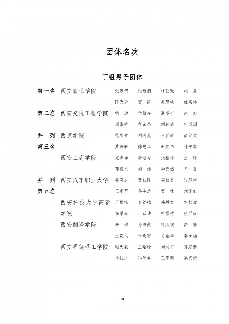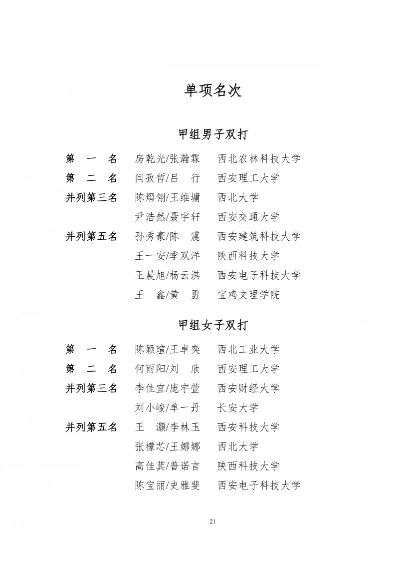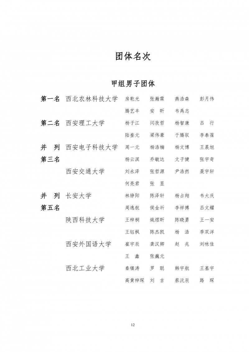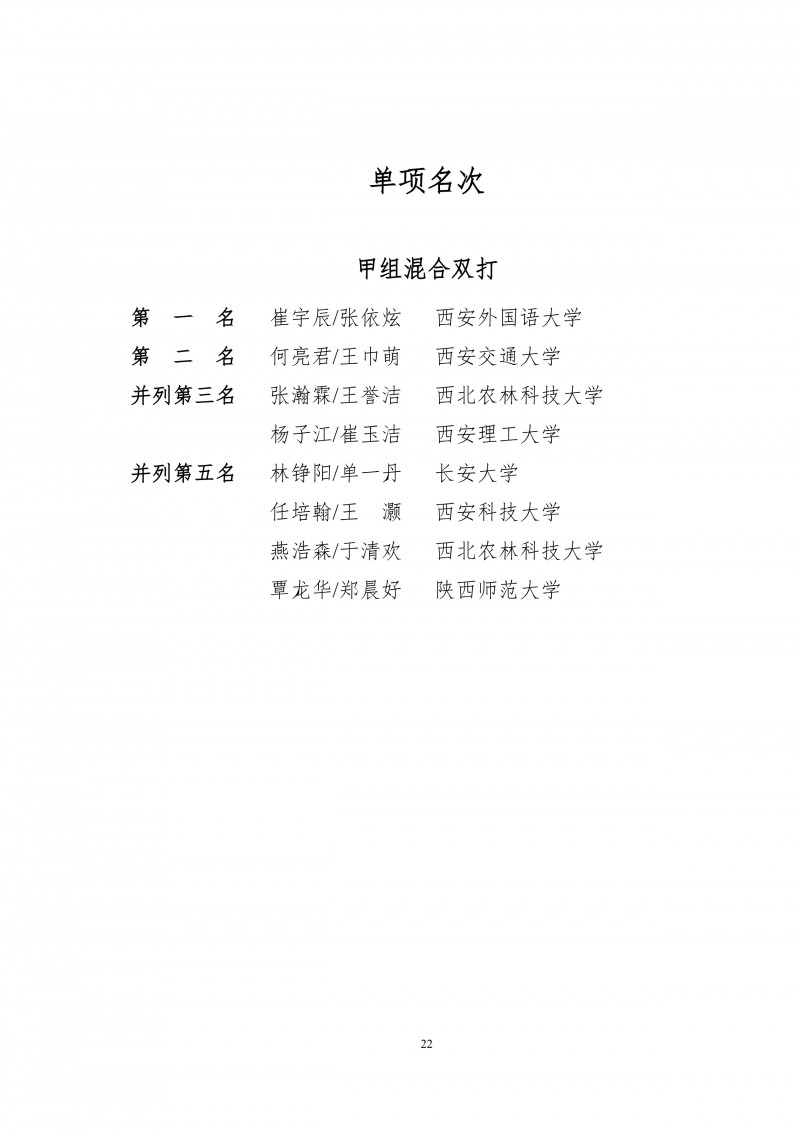 2018陕西大学生羽毛球赛暨校长杯成绩册