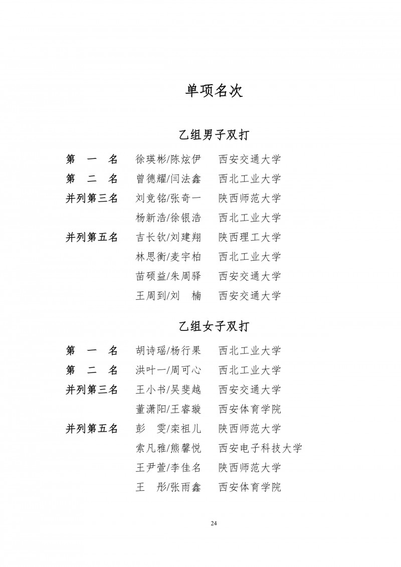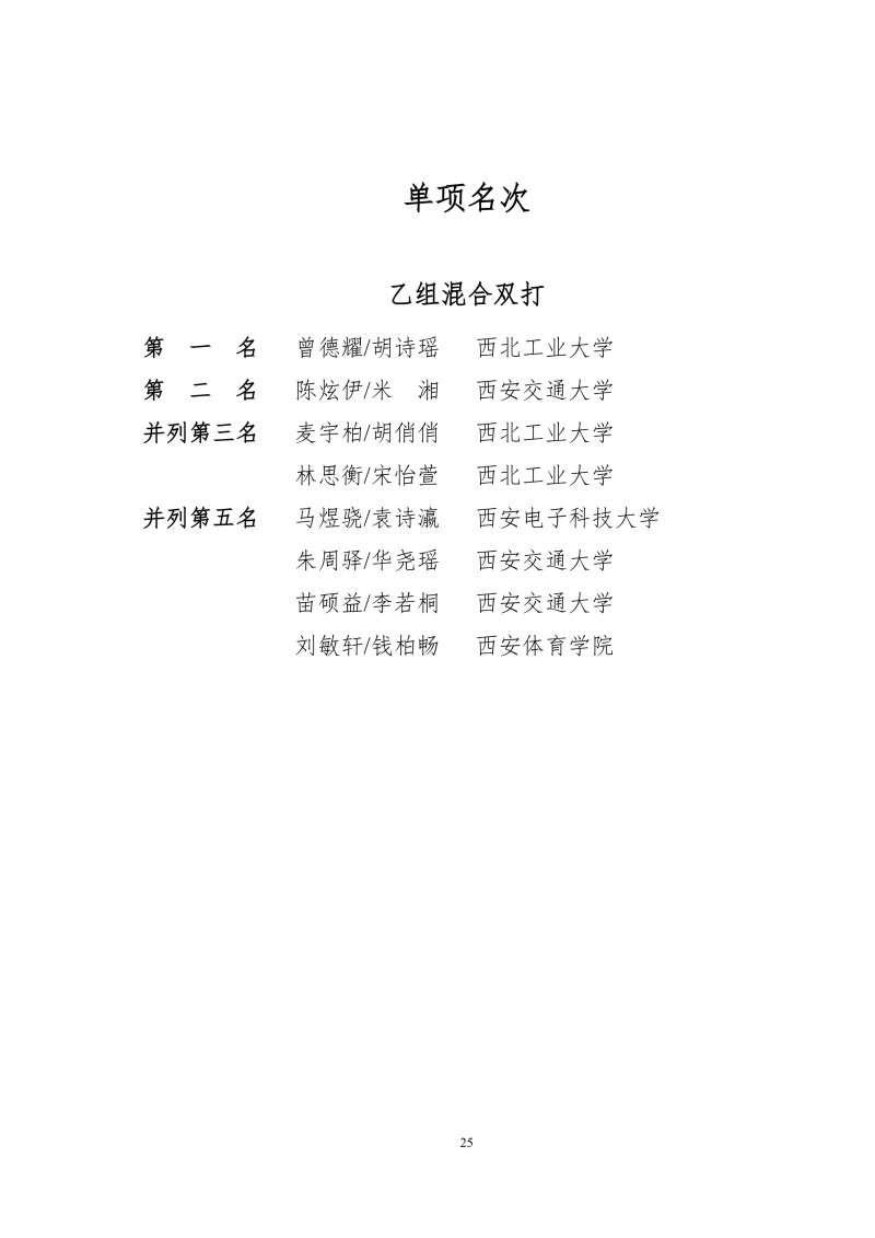 2025年陕西省大学生羽毛球锦标赛暨“校长杯”比赛成绩册