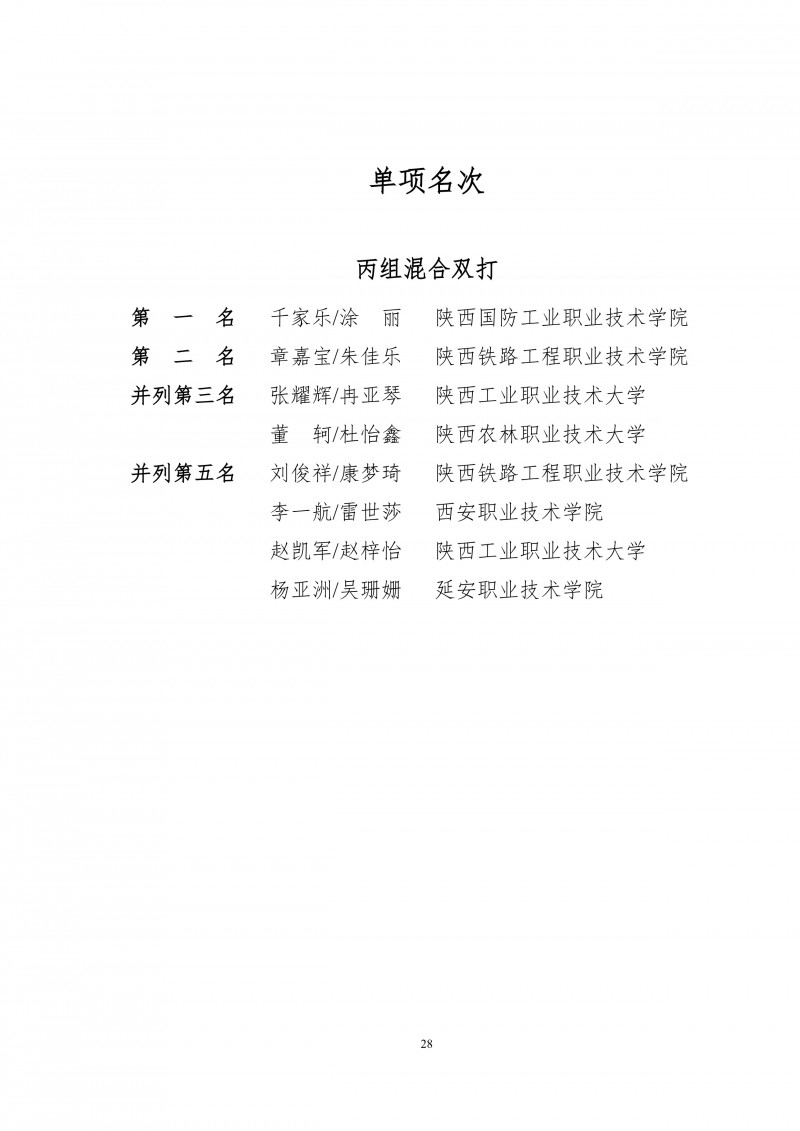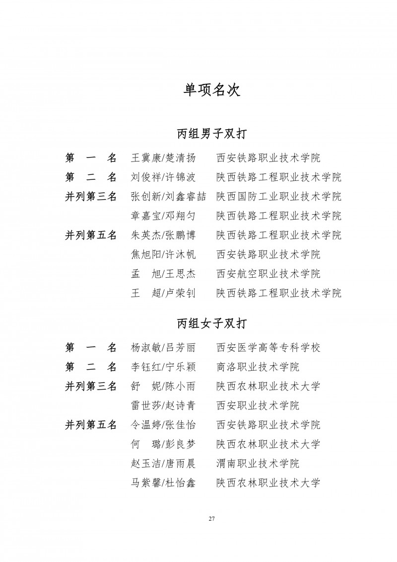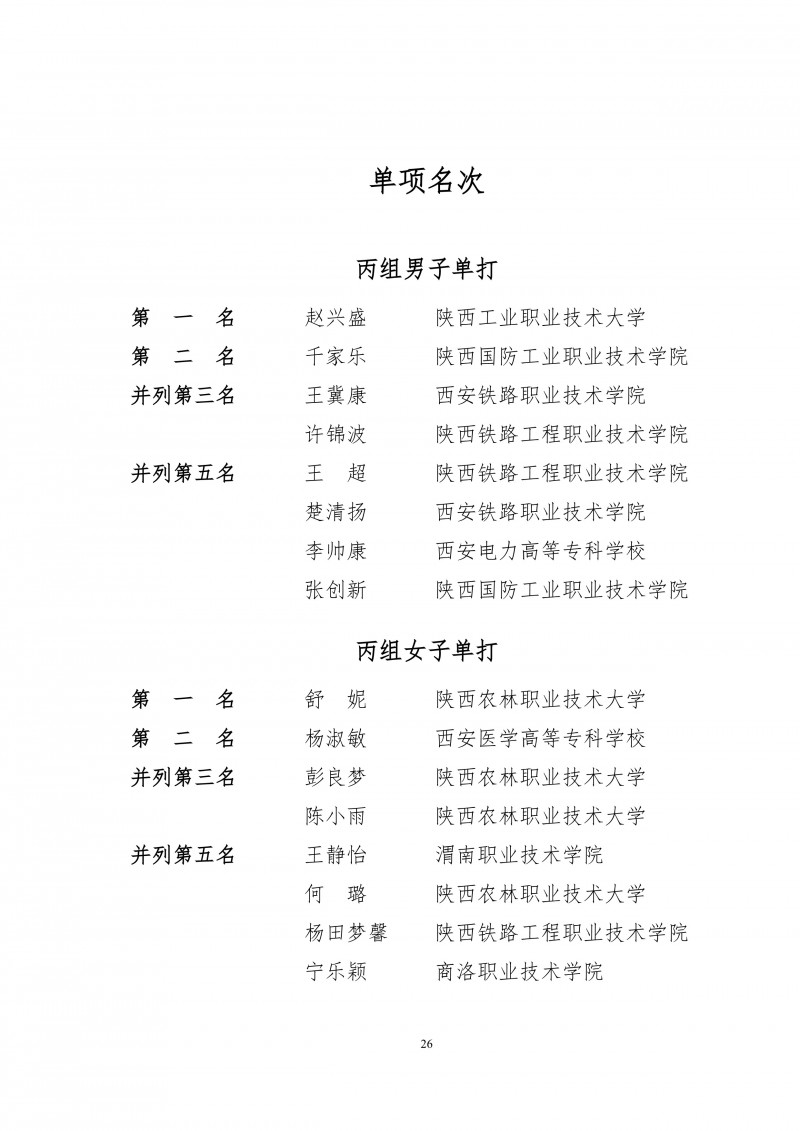 2025年陕西省高职院校和独立学校乒乓球比赛成绩册