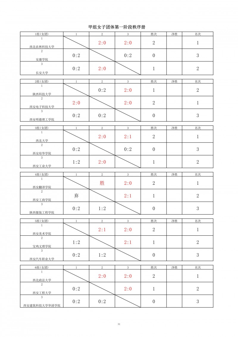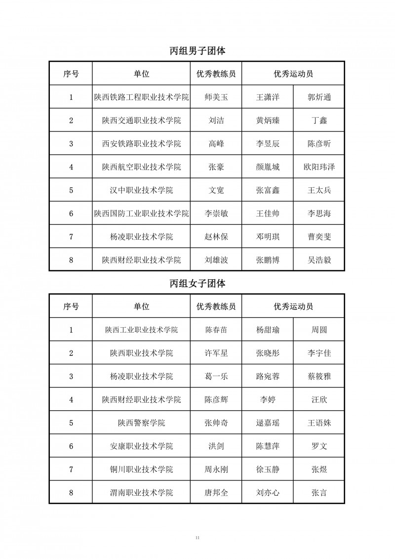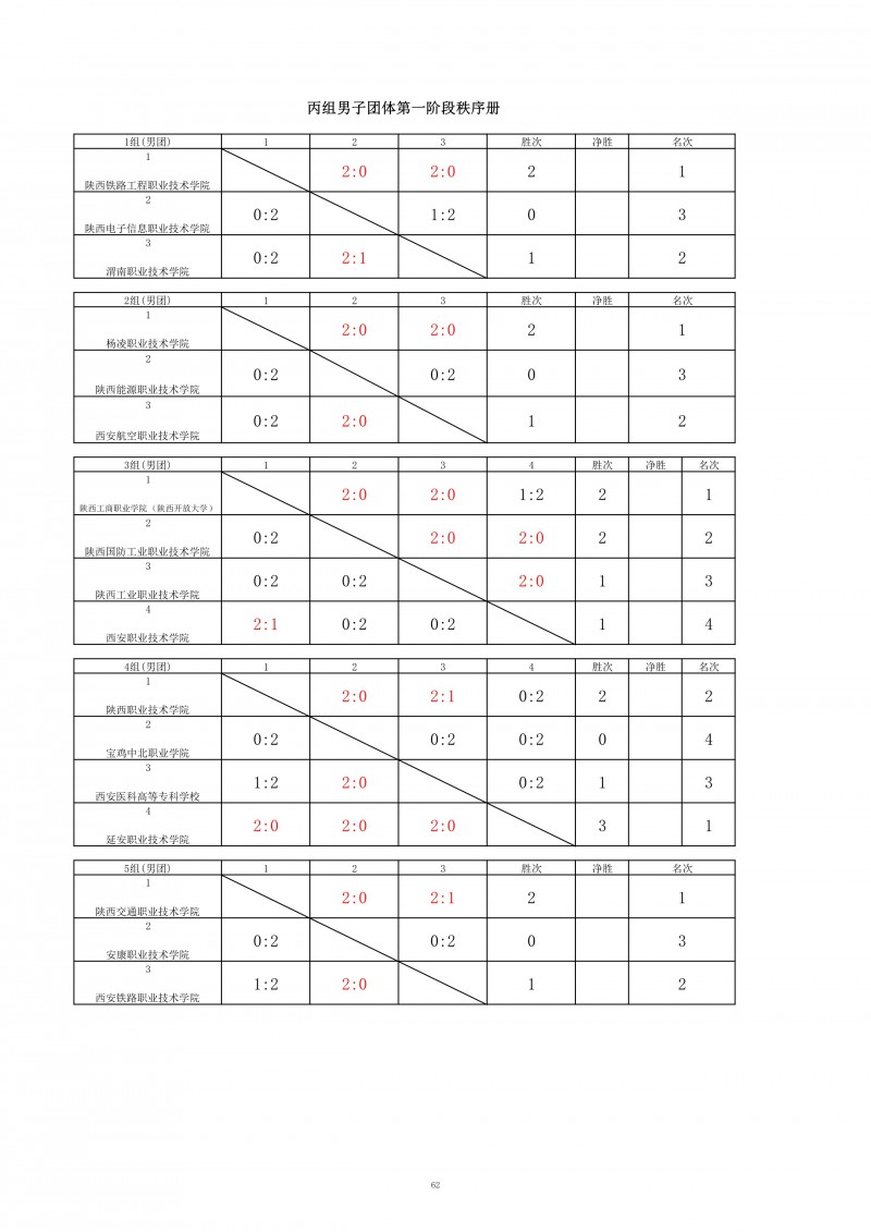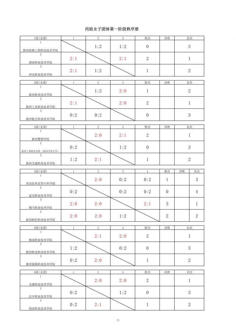 2025年陕西省高职院校和独立学校乒乓球比赛成绩册