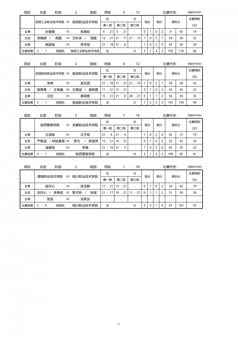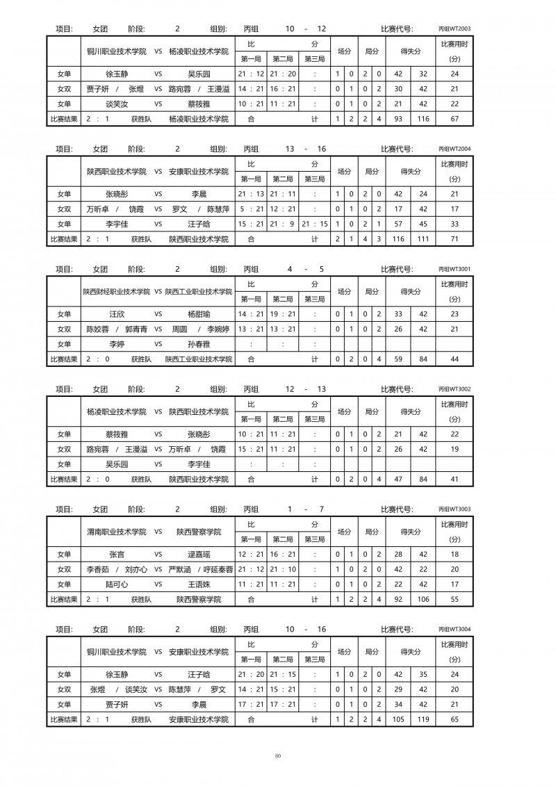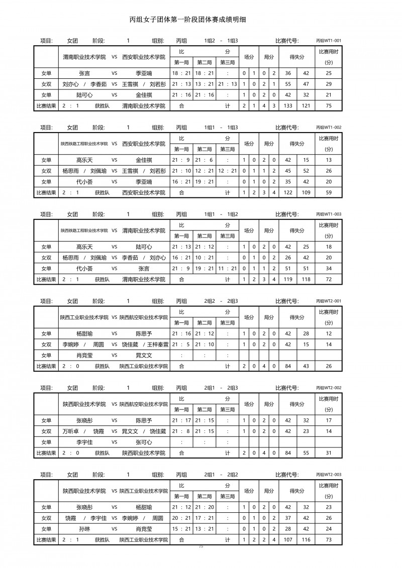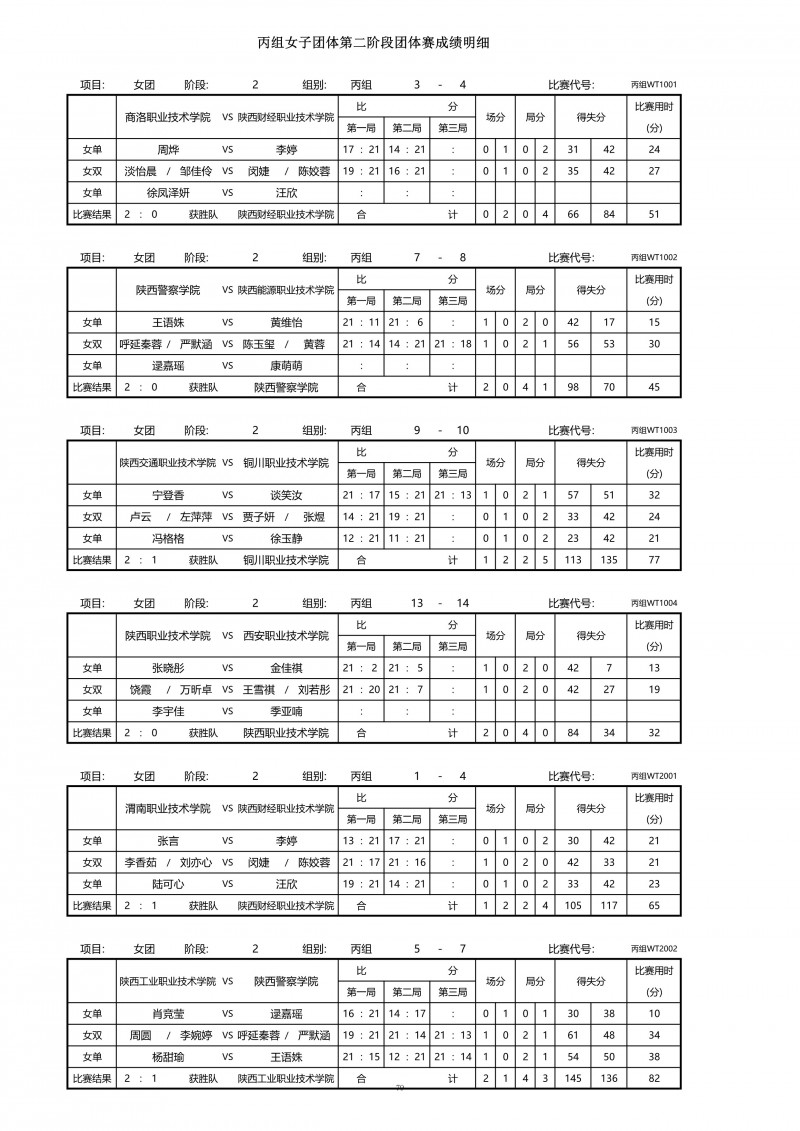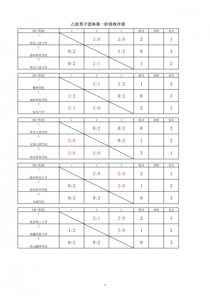 2025年陕西省高职院校和独立学校乒乓球比赛成绩册