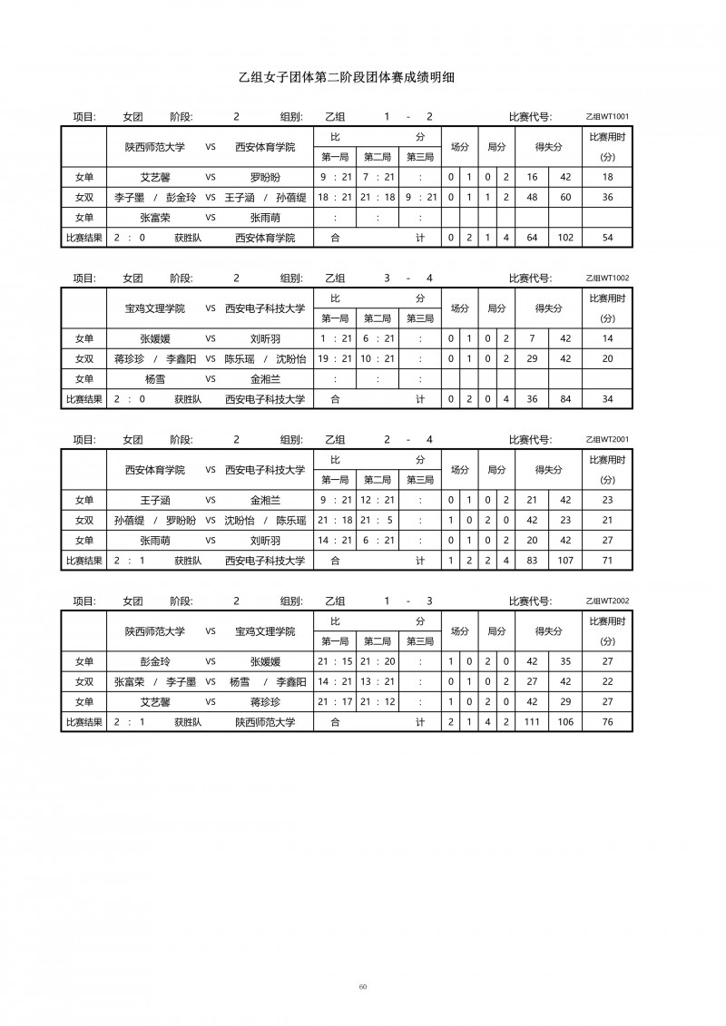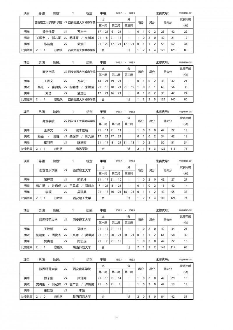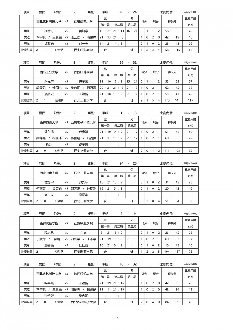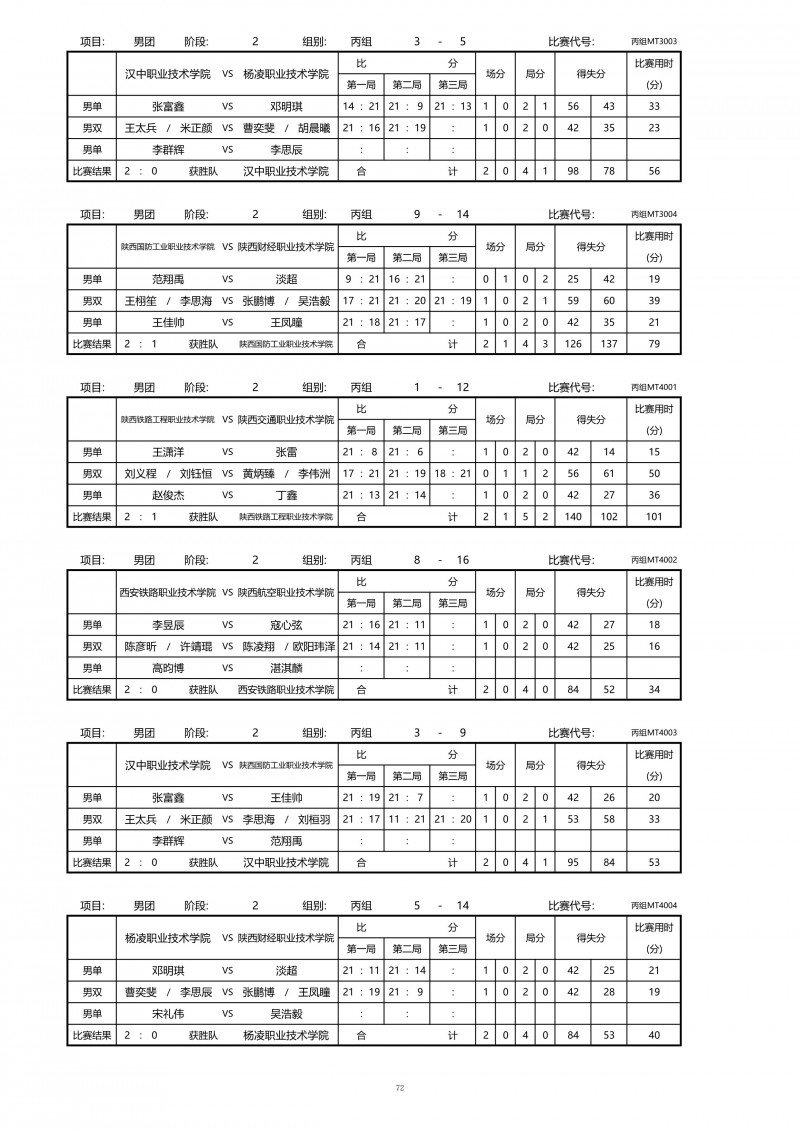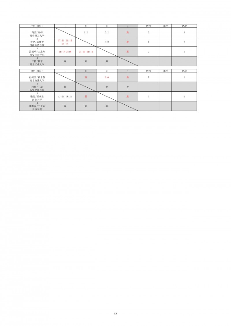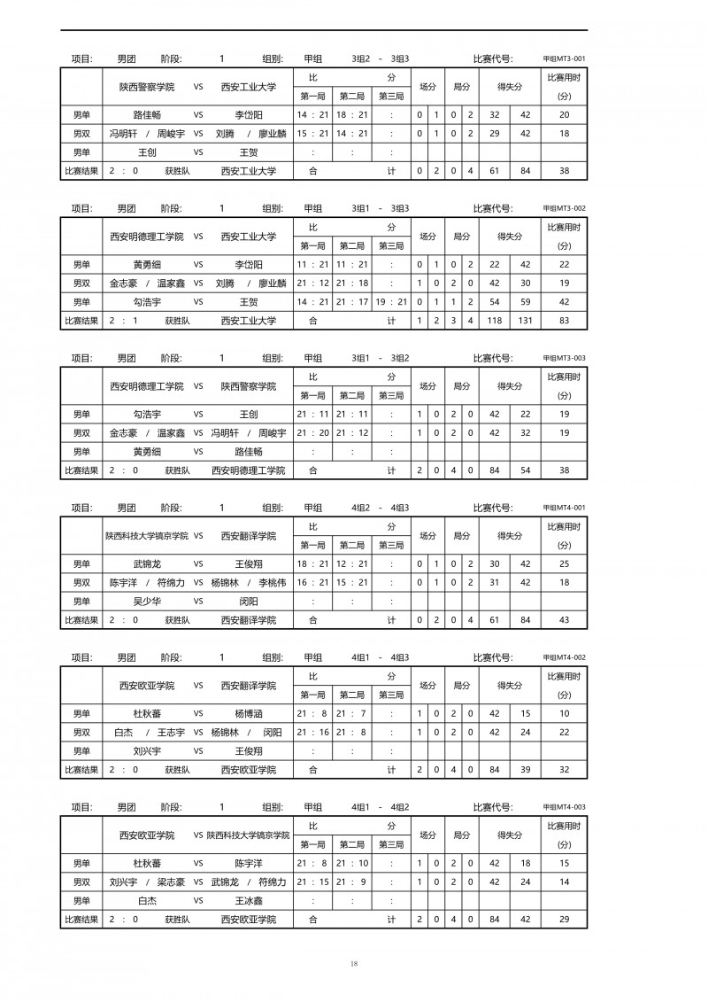 2018陕西大学生羽毛球赛暨校长杯成绩册