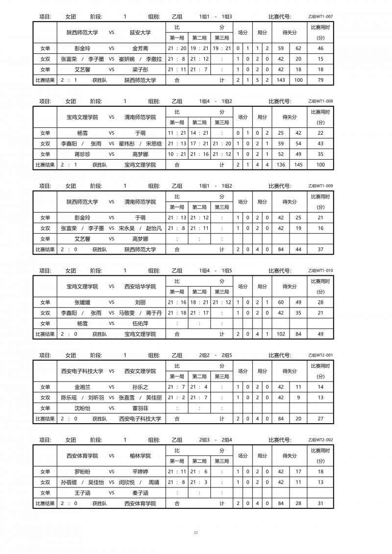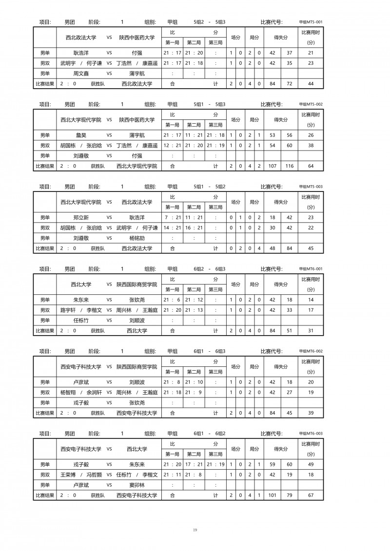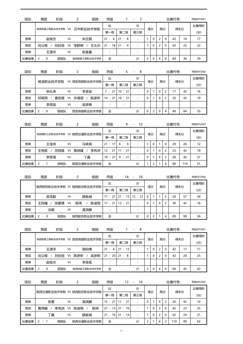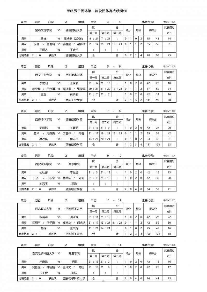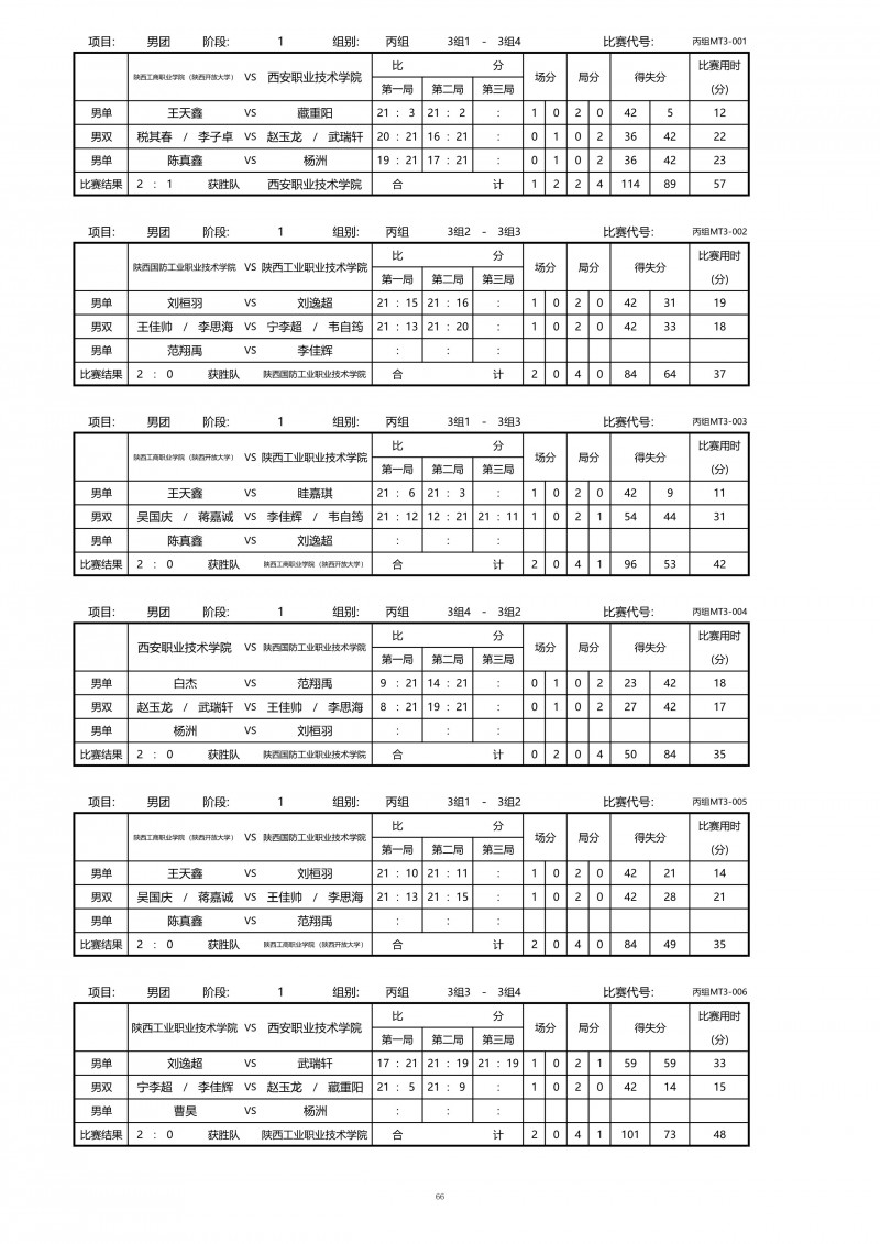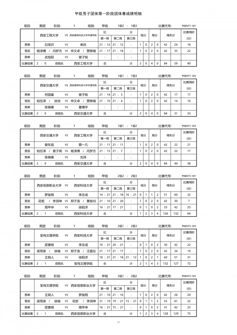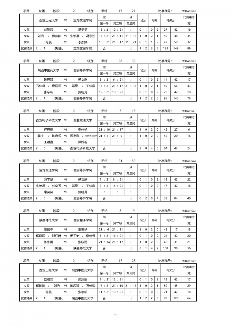 2018陕西大学生羽毛球赛暨校长杯成绩册