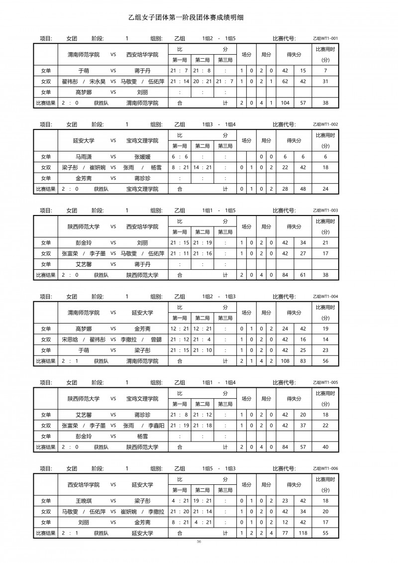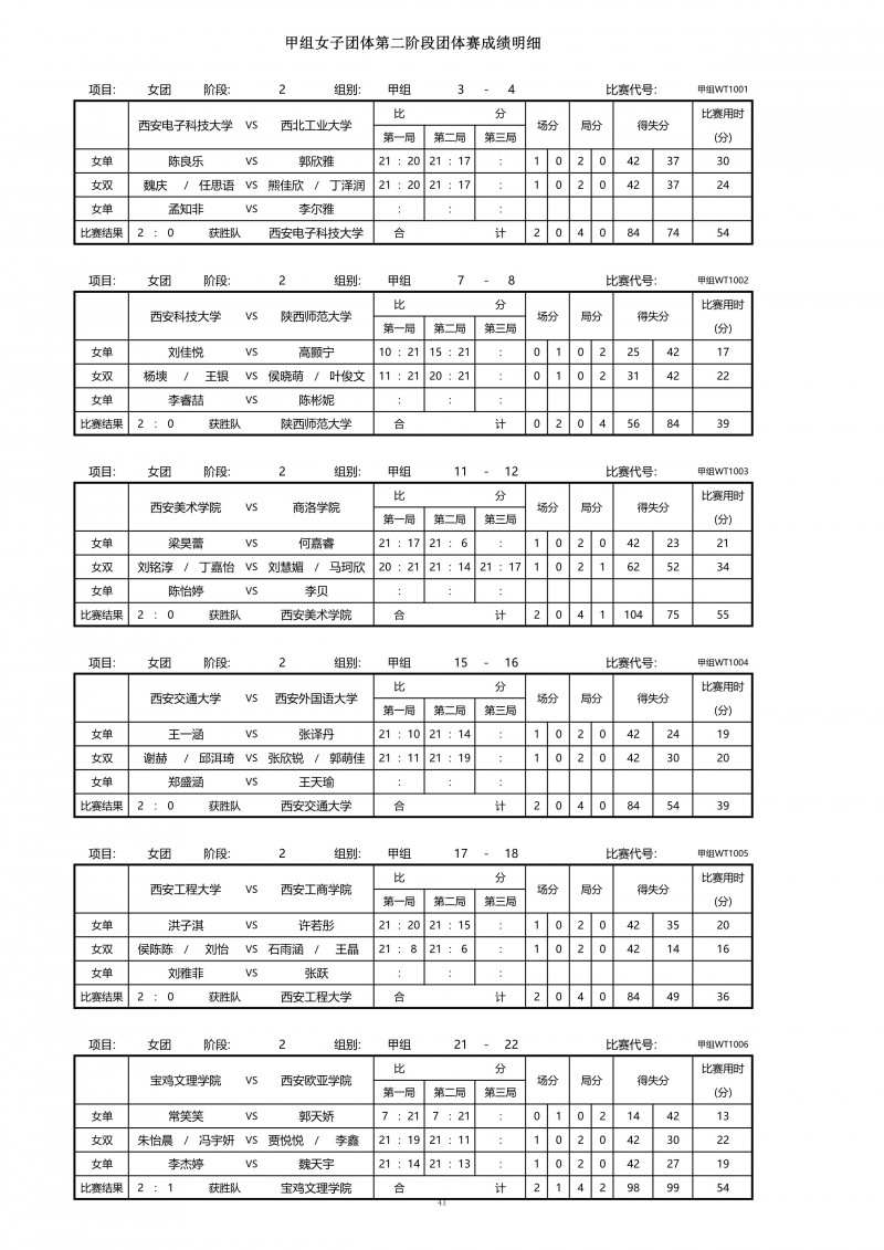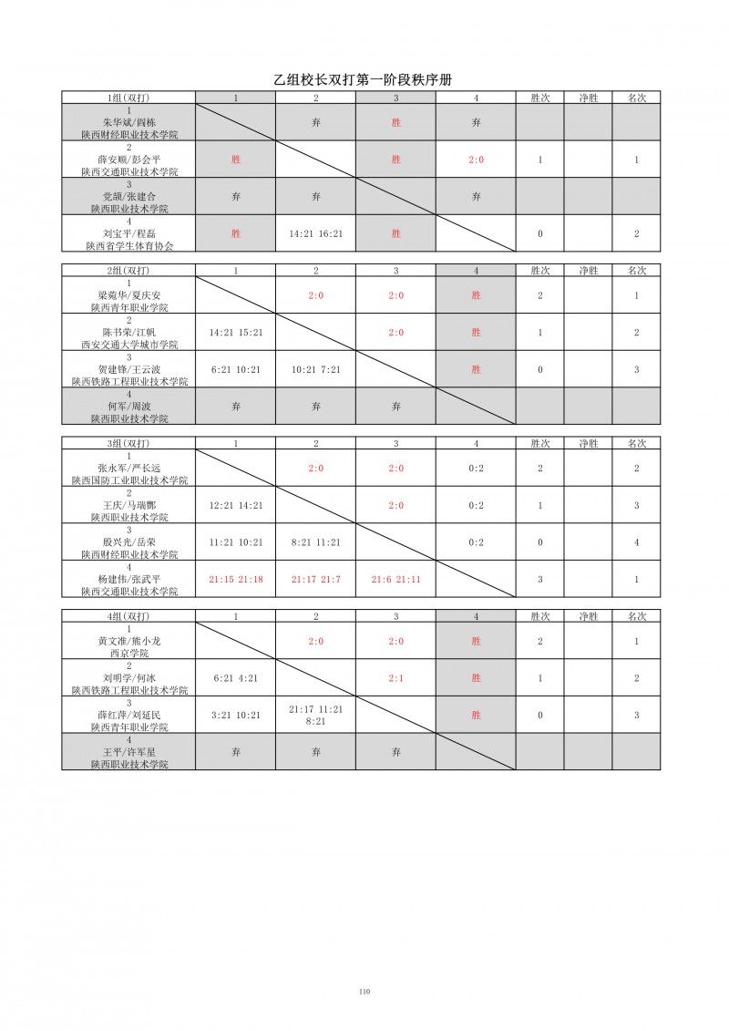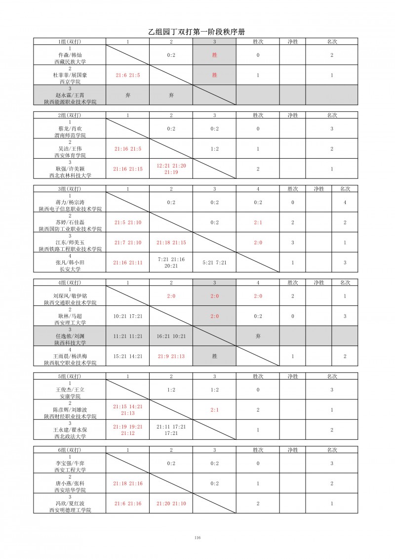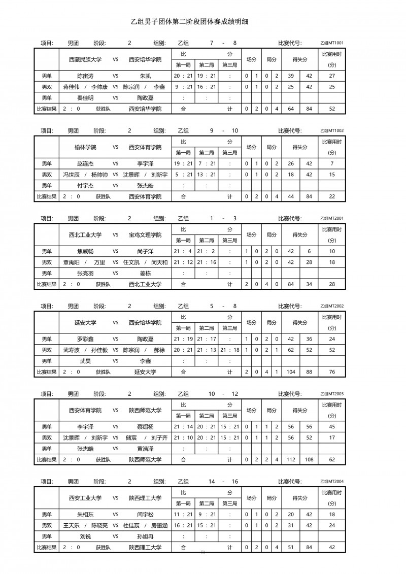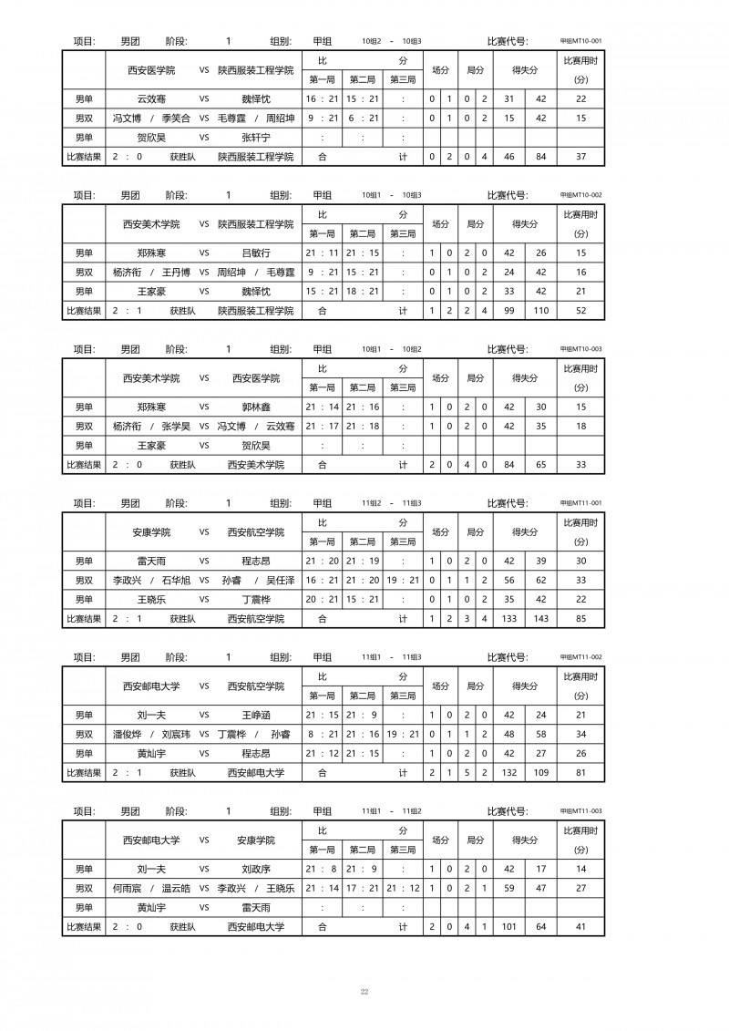2018陕西大学生羽毛球赛暨校长杯成绩册