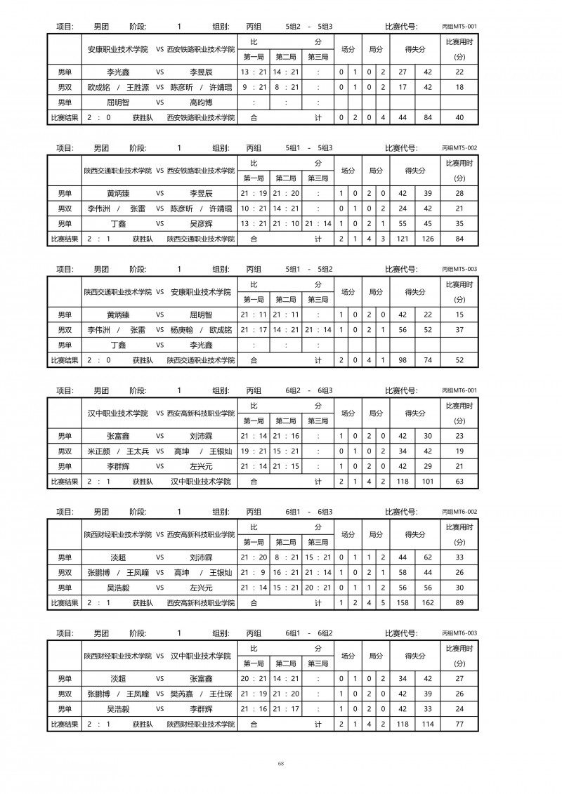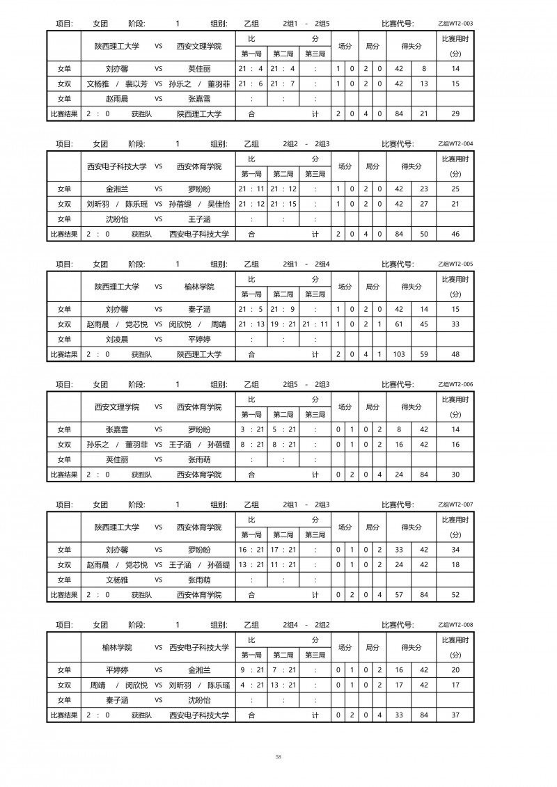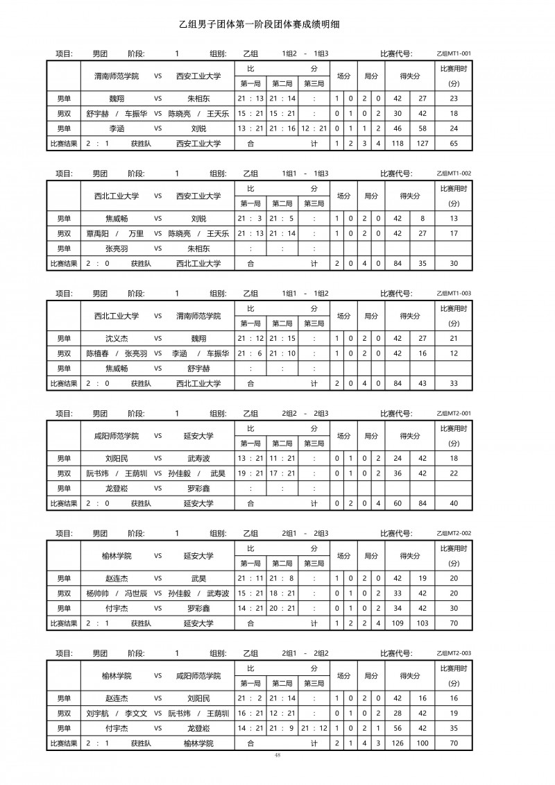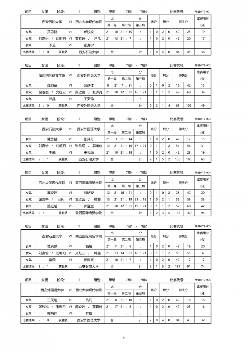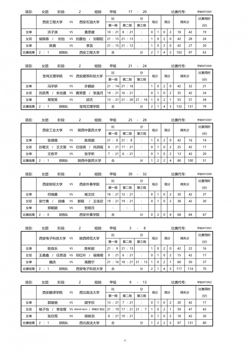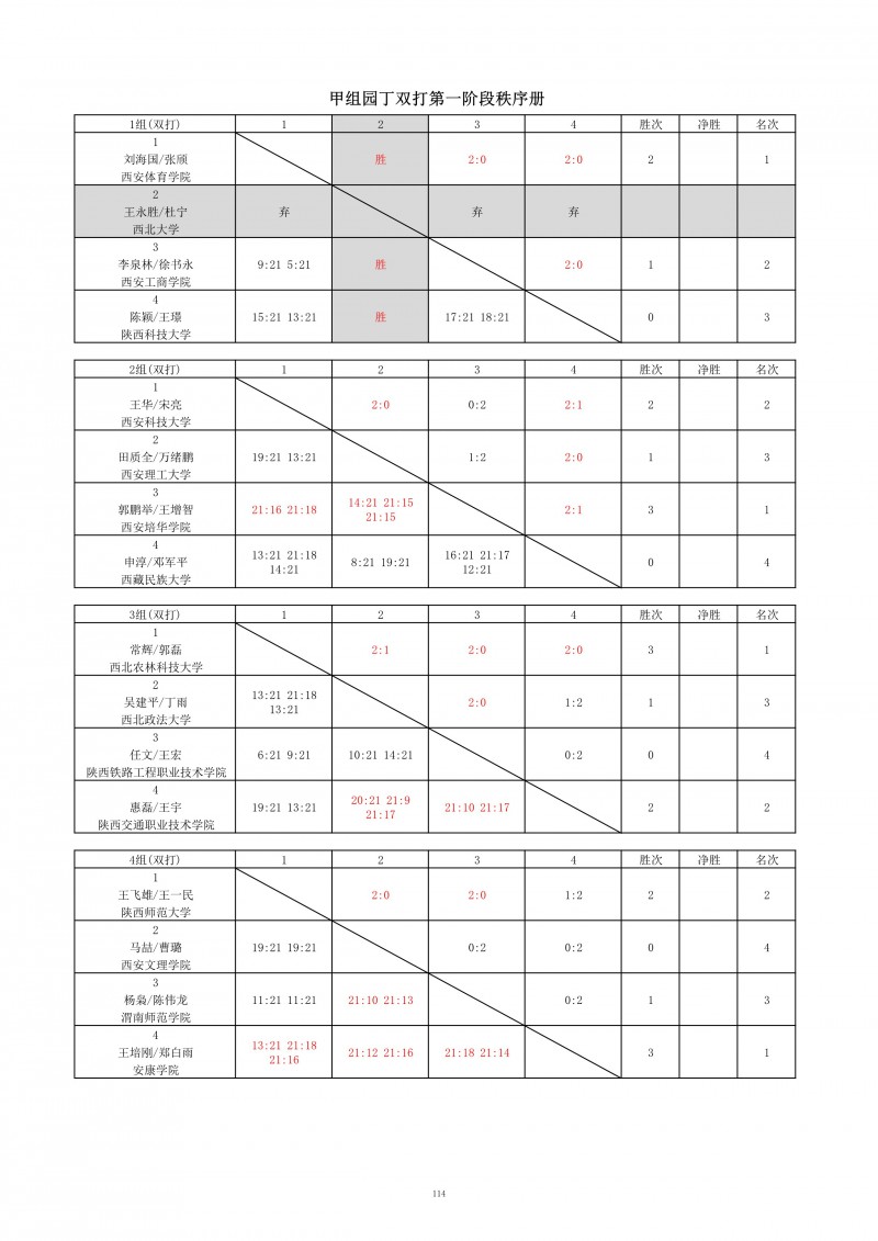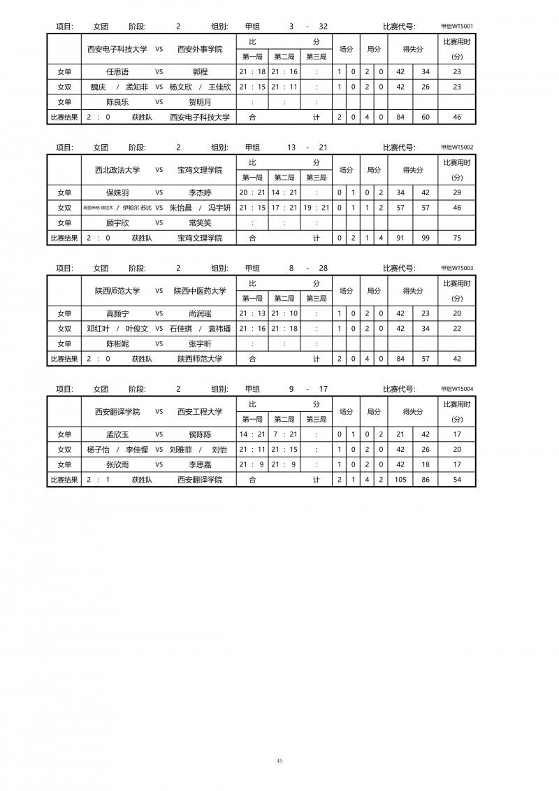 2018陕西大学生羽毛球赛暨校长杯成绩册