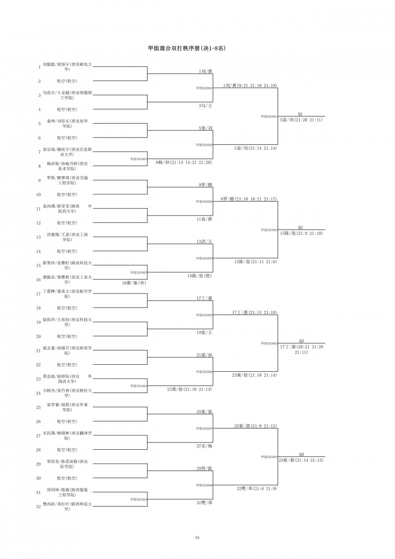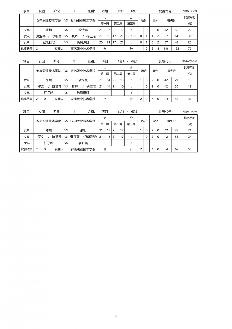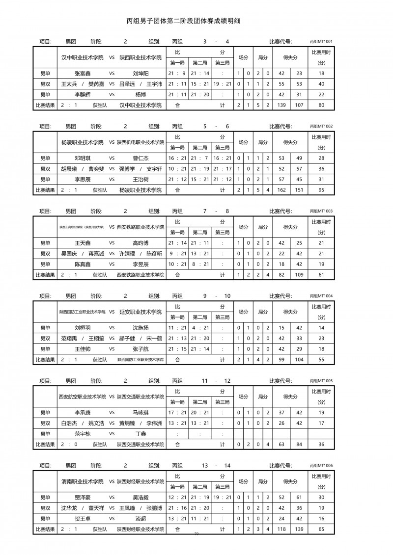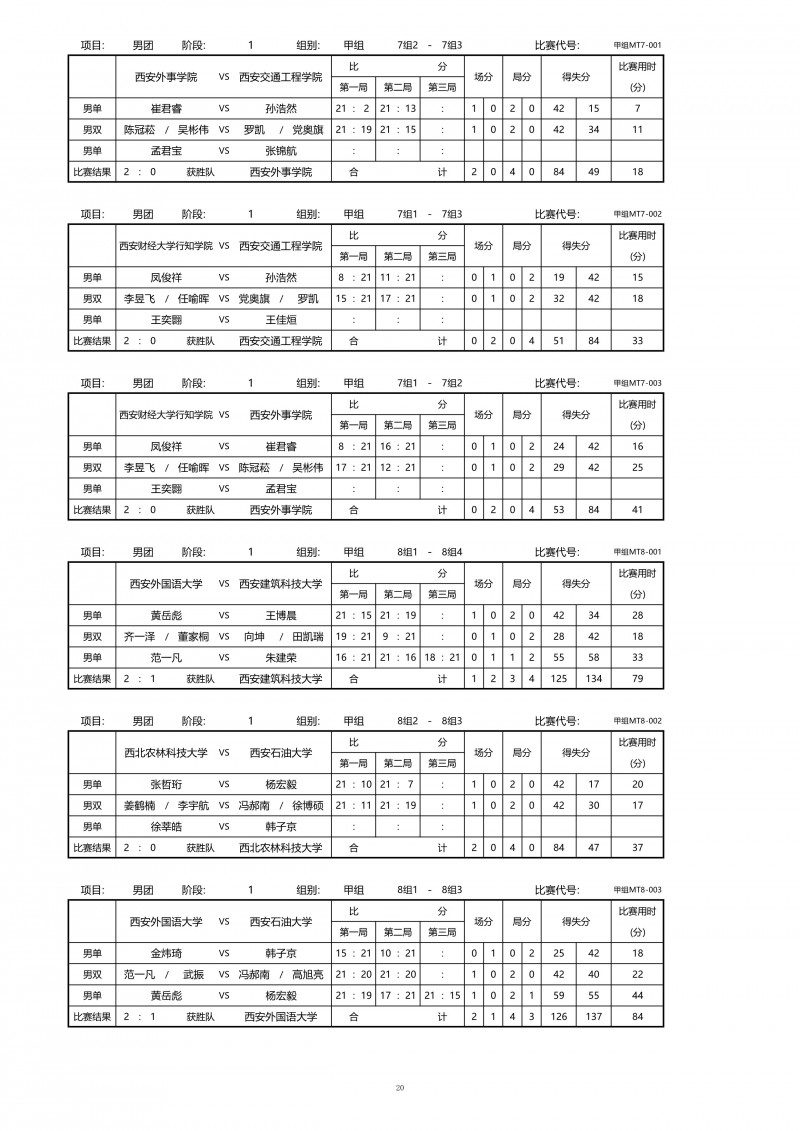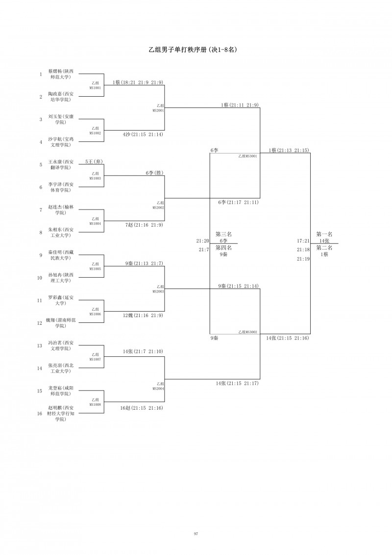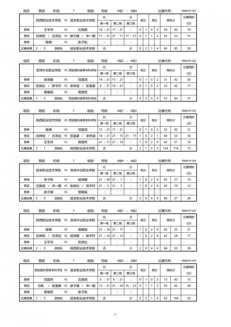 2018陕西大学生羽毛球赛暨校长杯成绩册