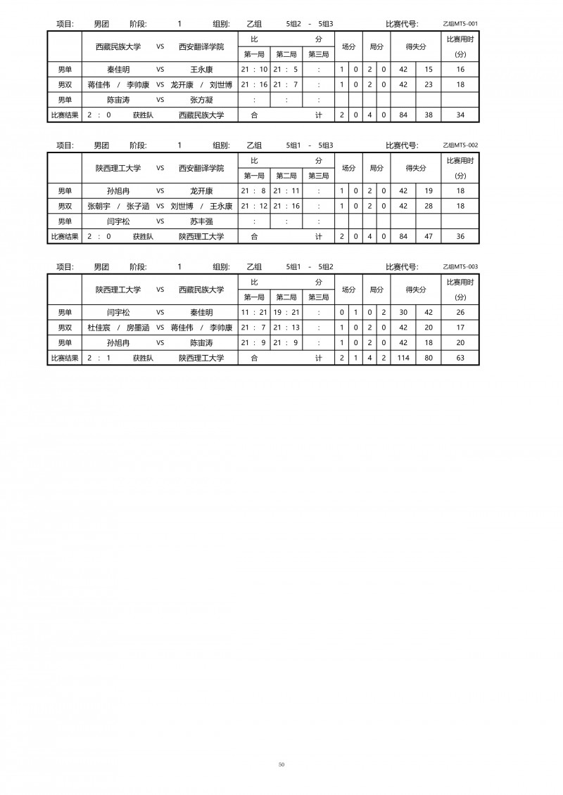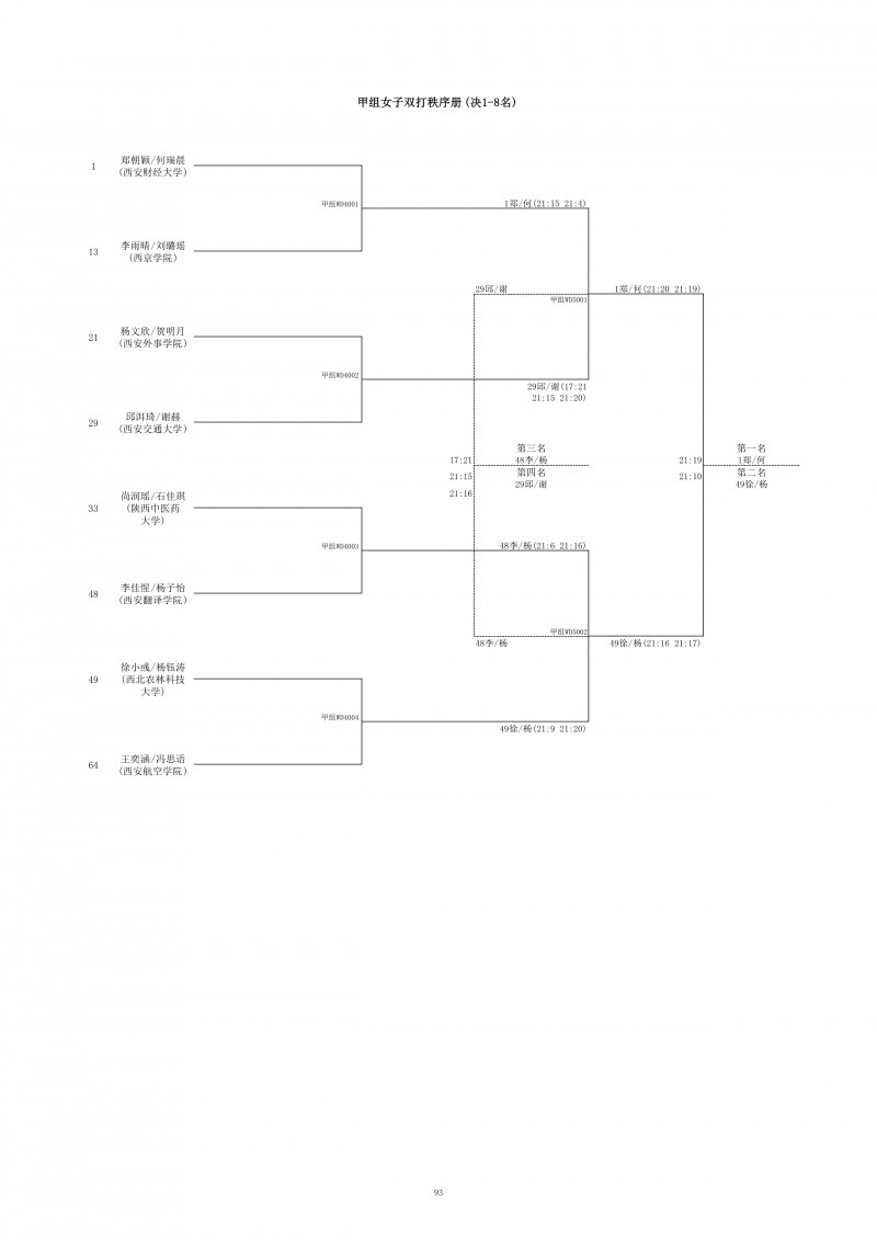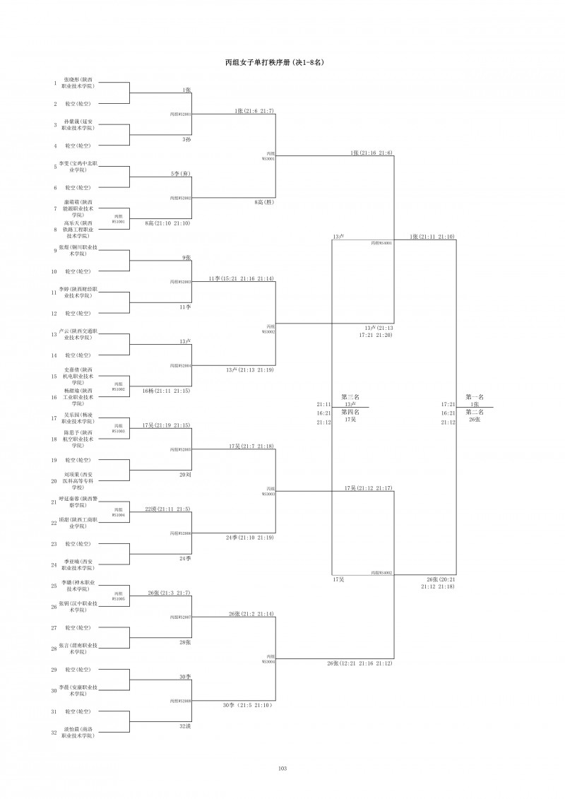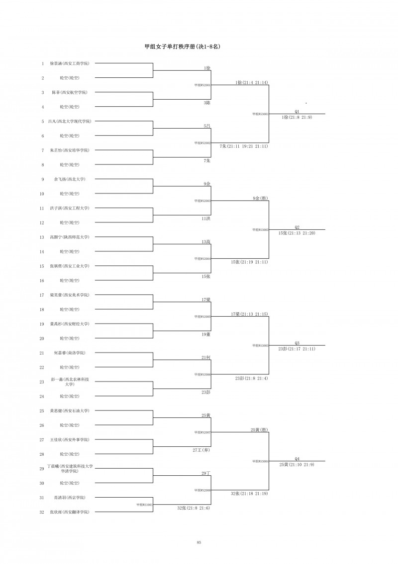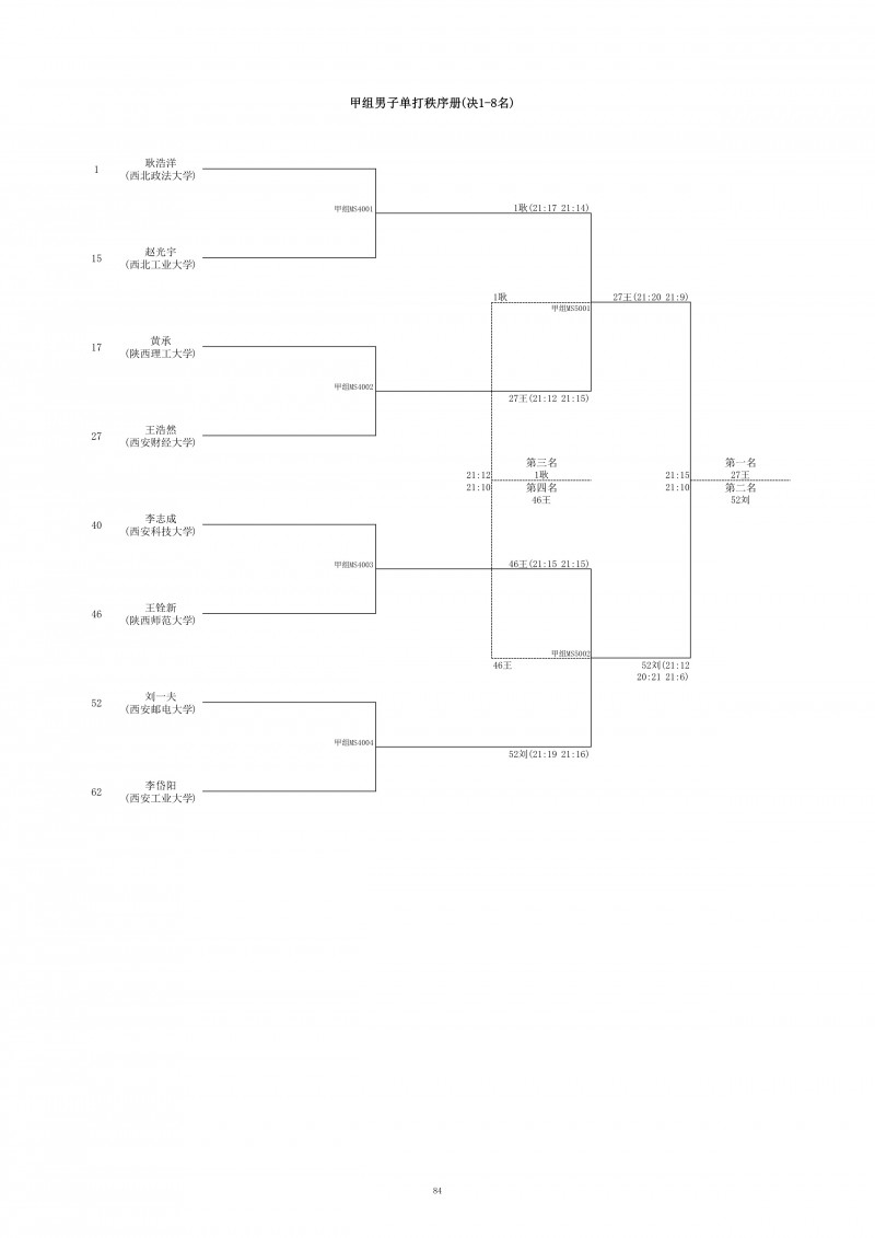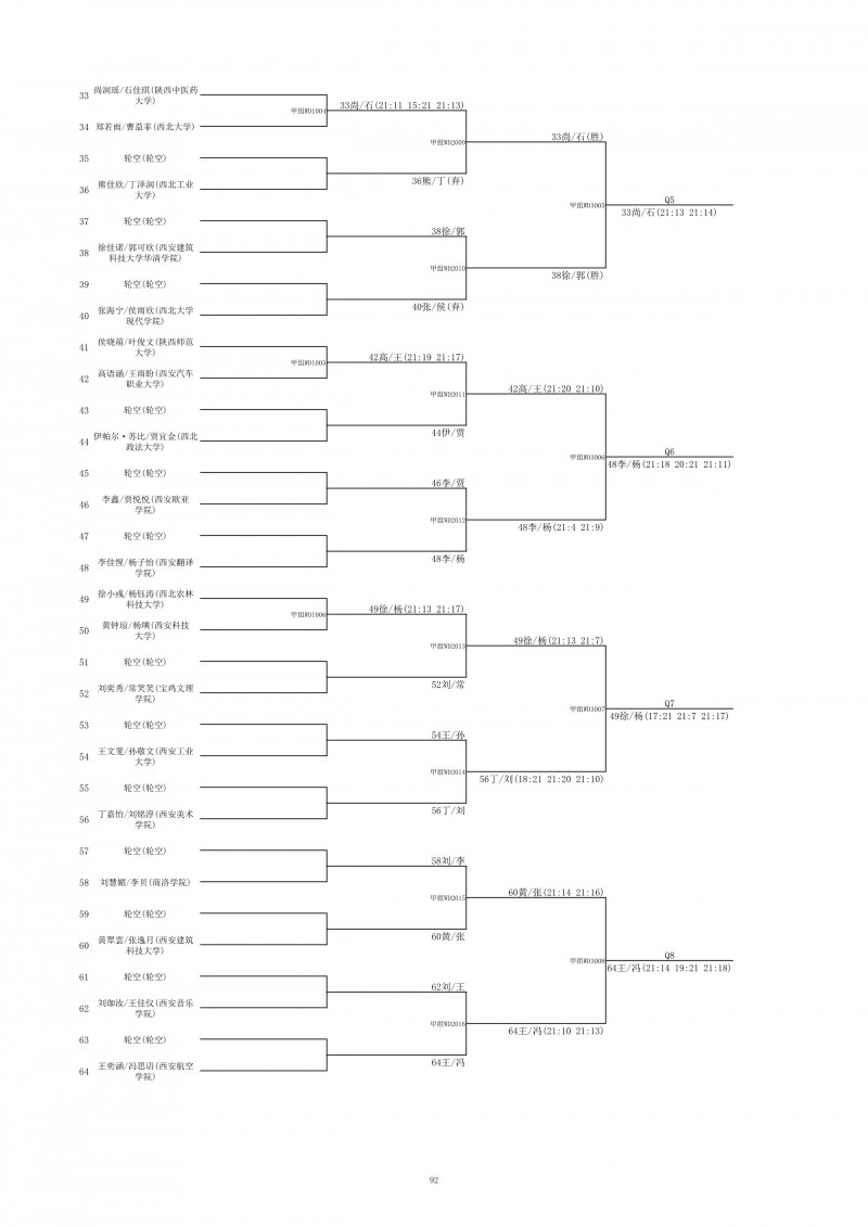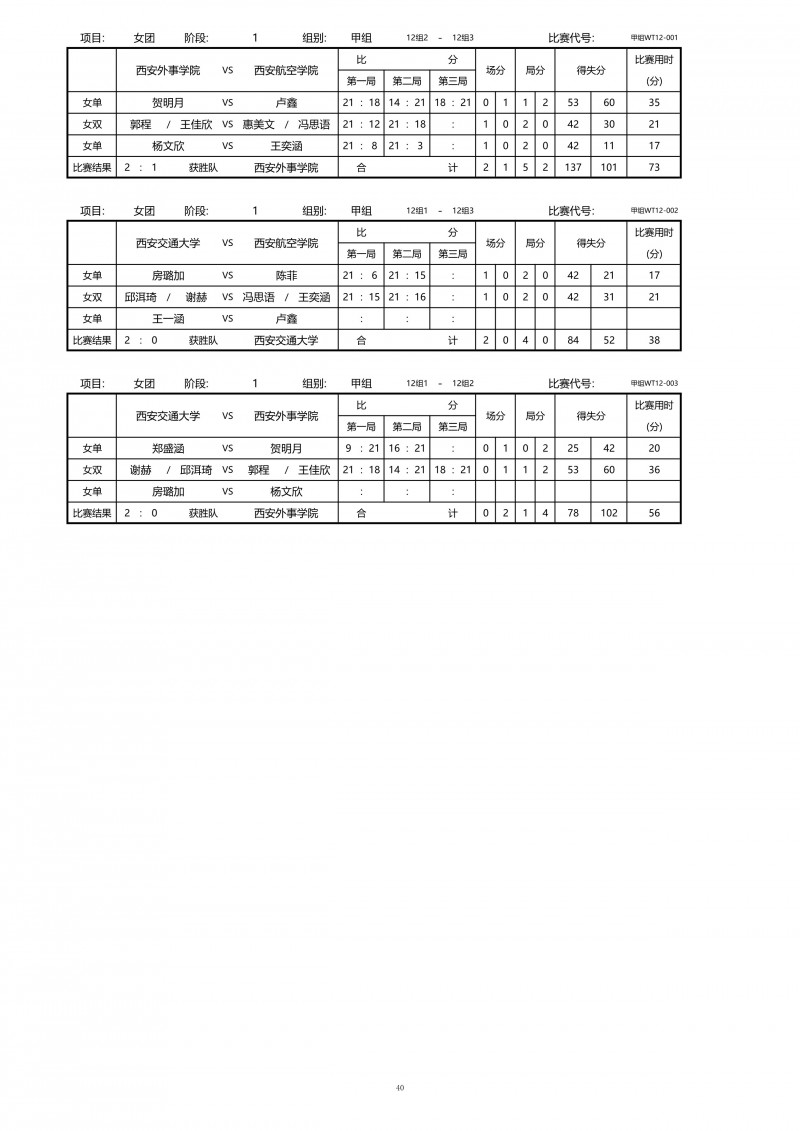2018陕西大学生羽毛球赛暨校长杯成绩册