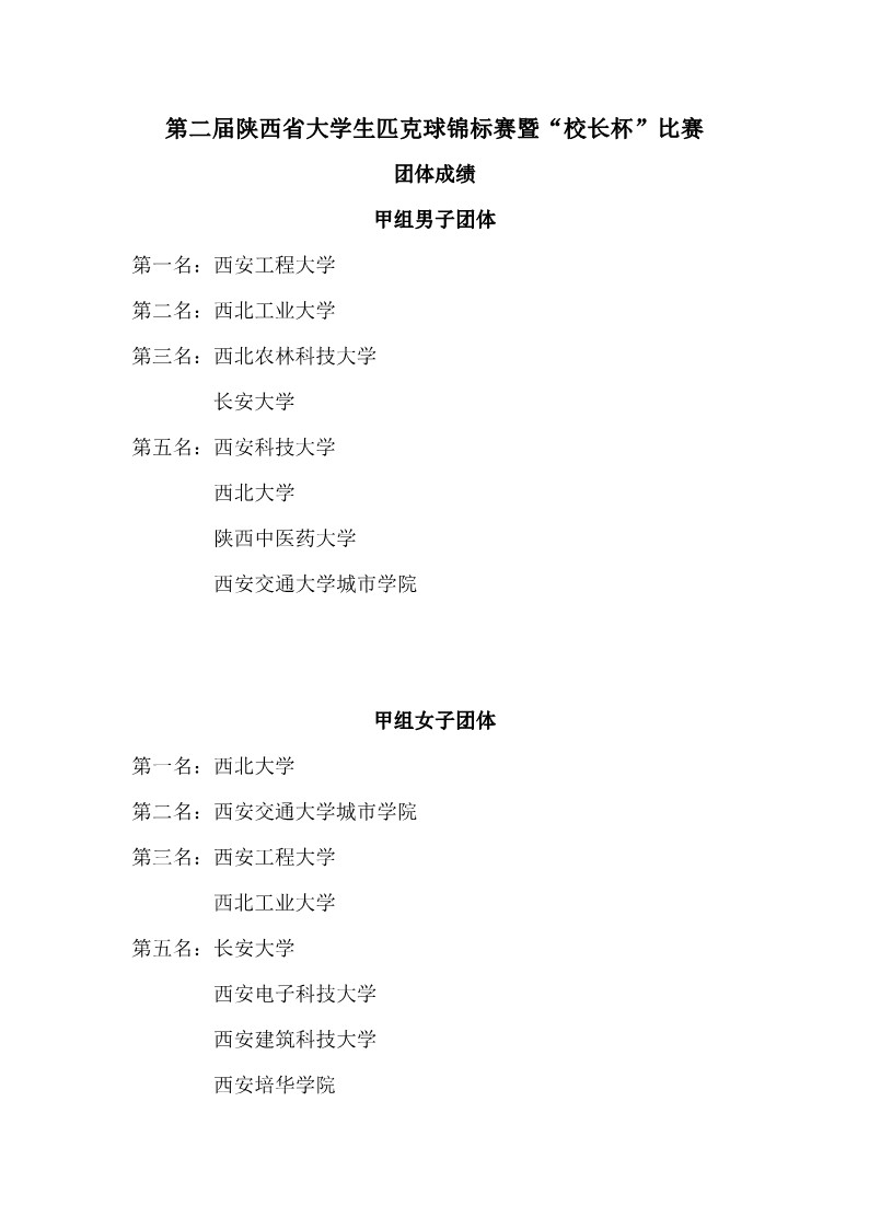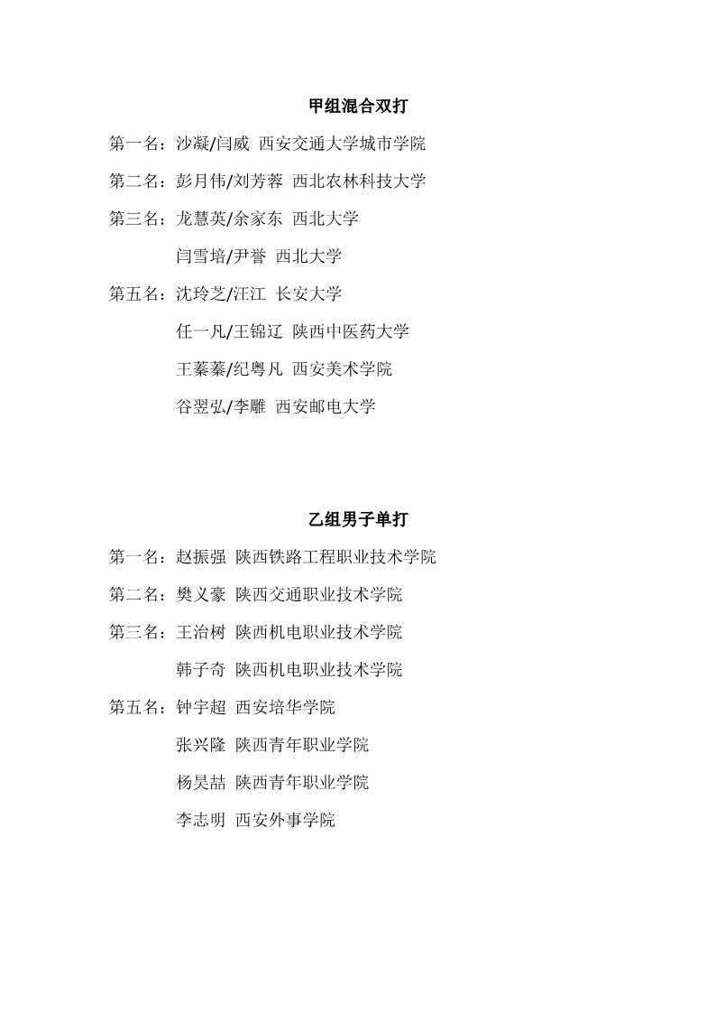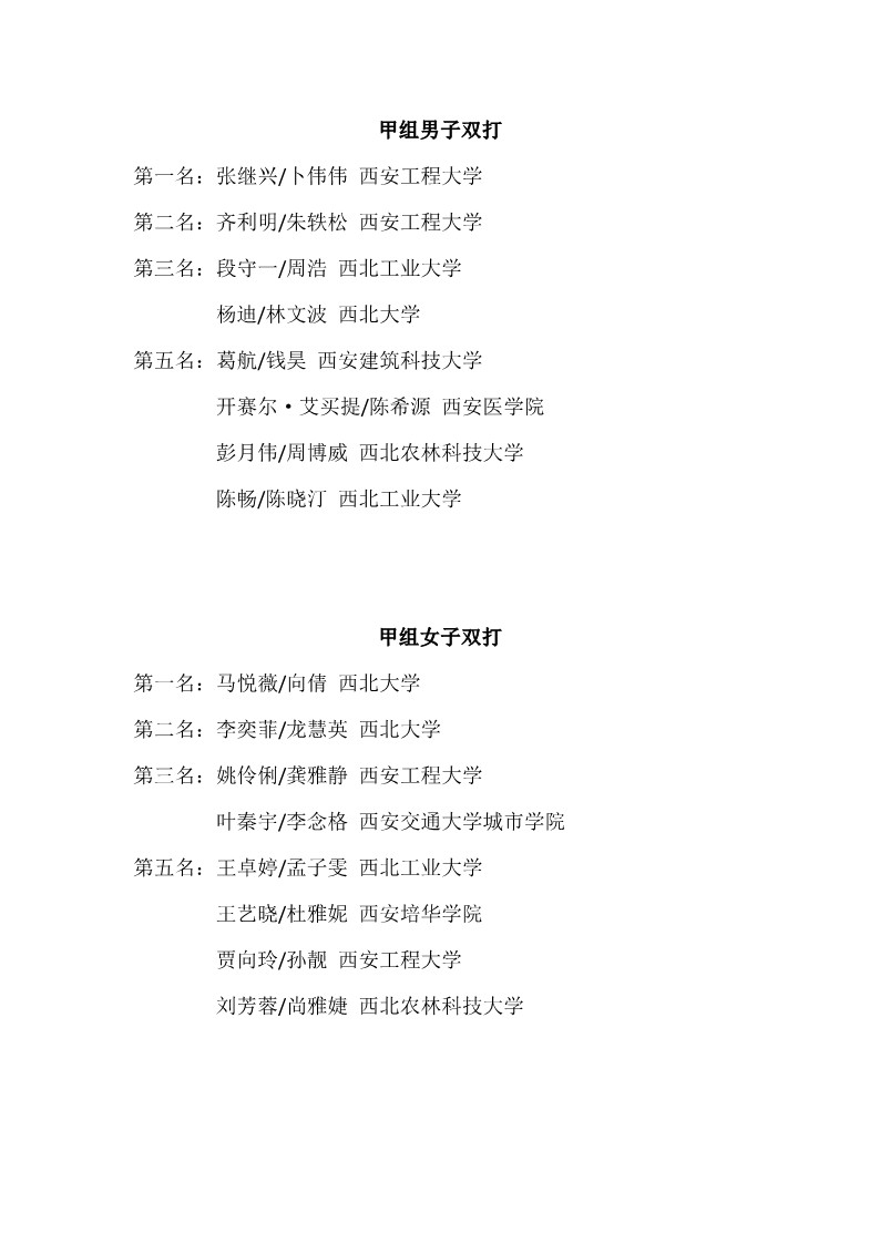 2018陕西大学生羽毛球赛暨校长杯成绩册