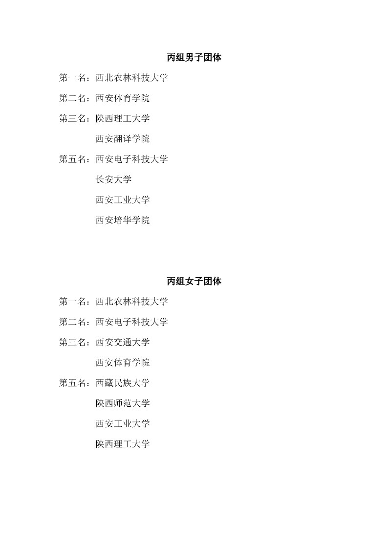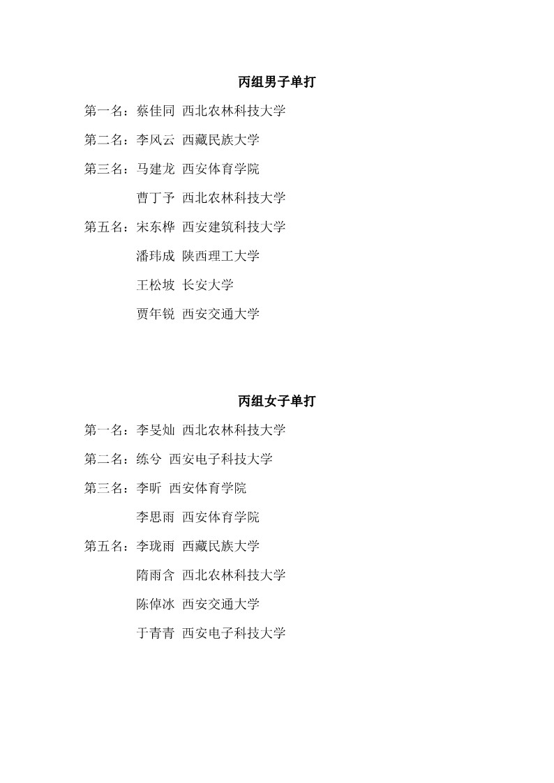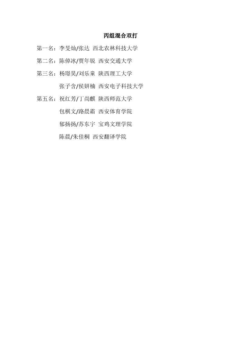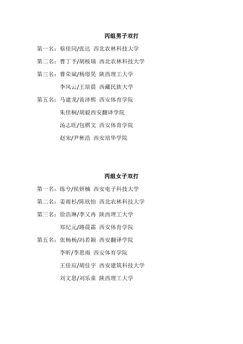 2018陕西大学生羽毛球赛暨校长杯成绩册