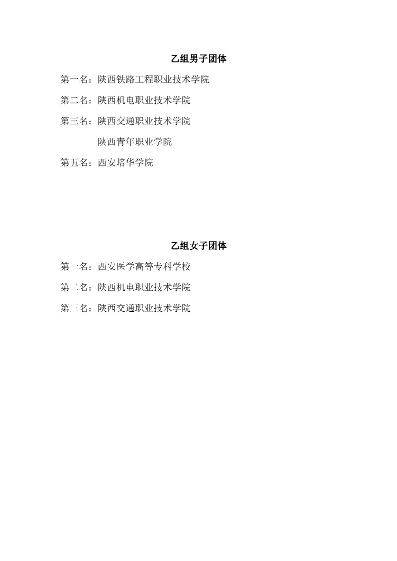 2025年陕西省高职院校和独立学校乒乓球比赛成绩册