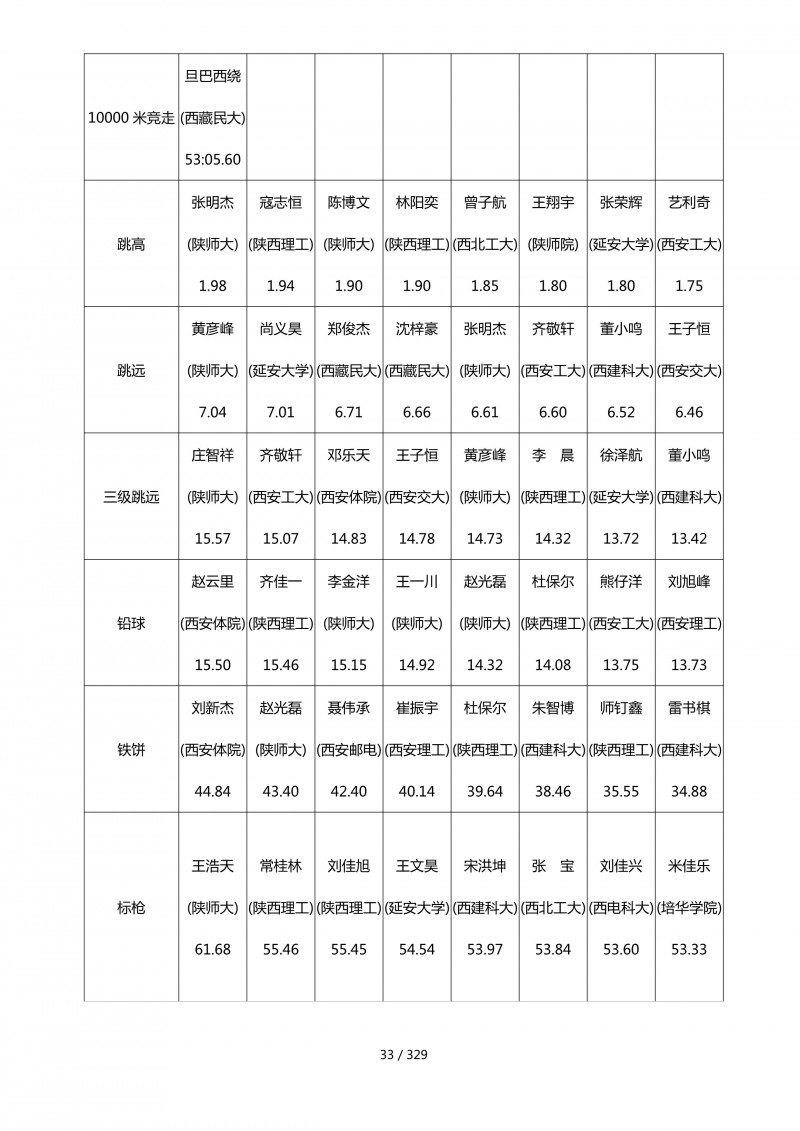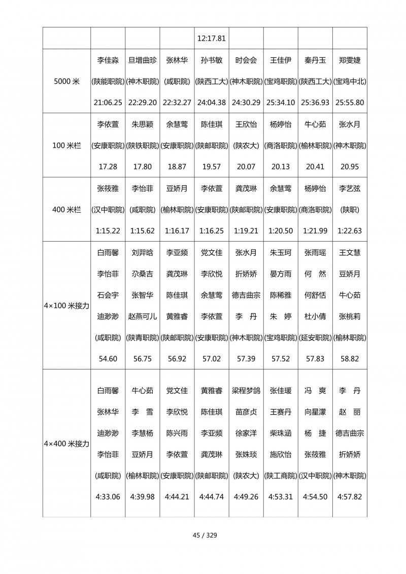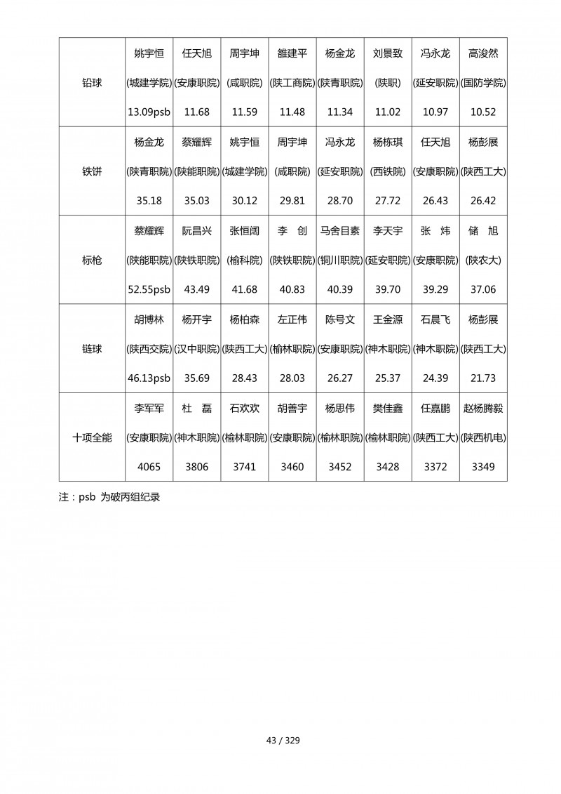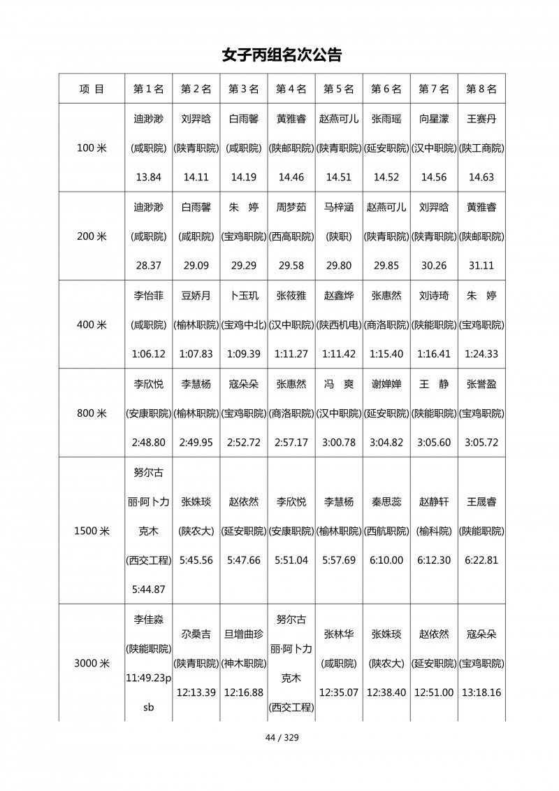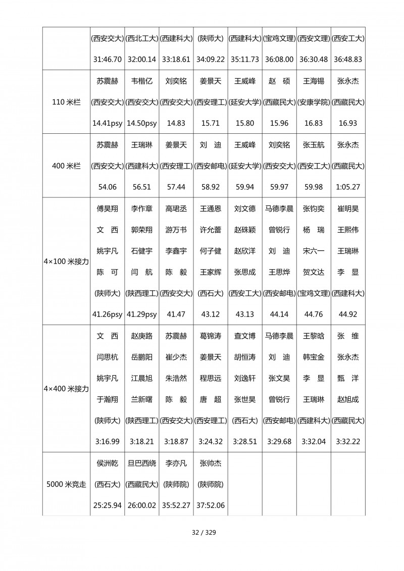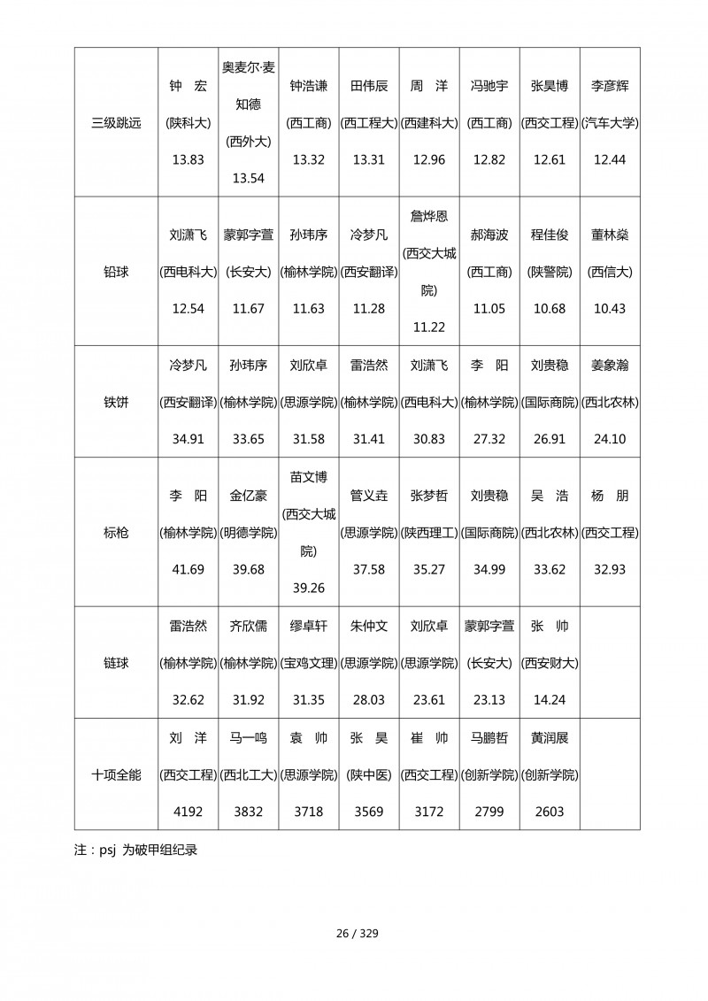 陕西省第四十四届大学生田径运动会成绩册.pdf