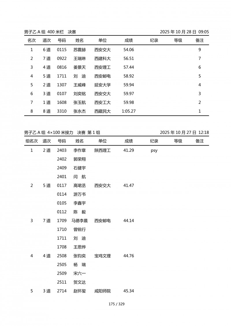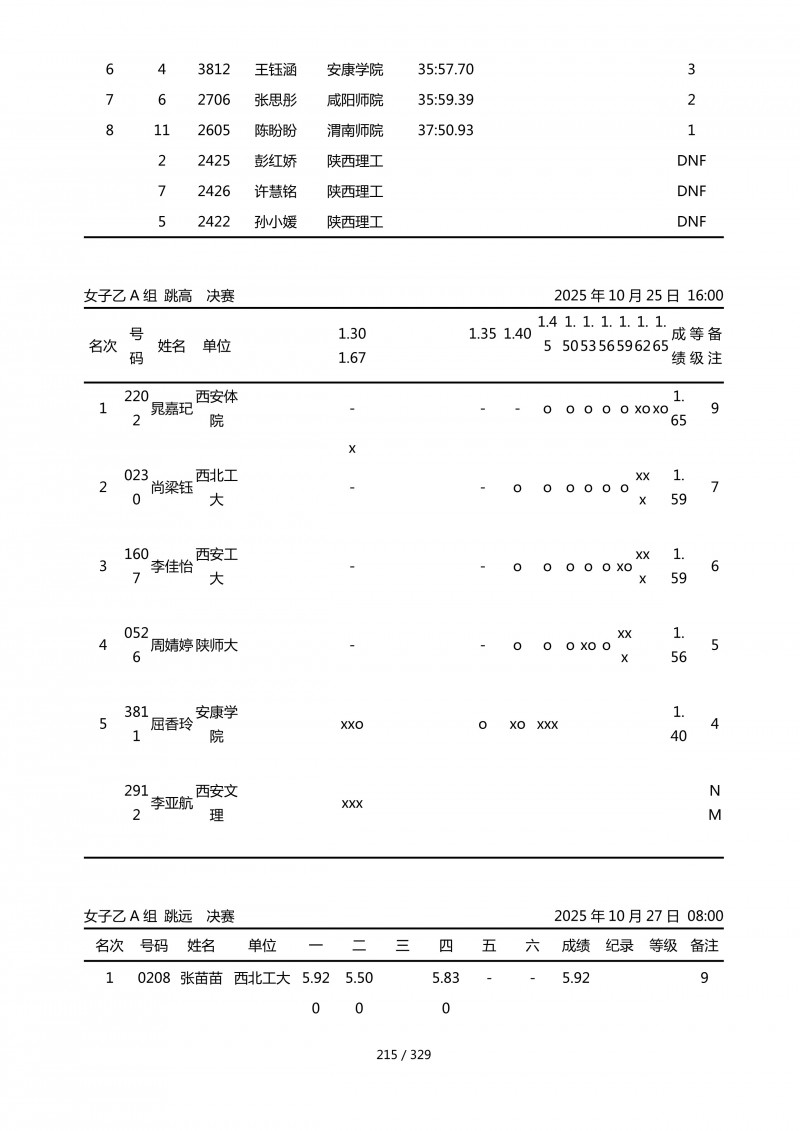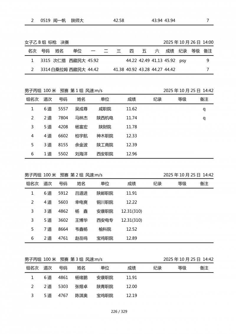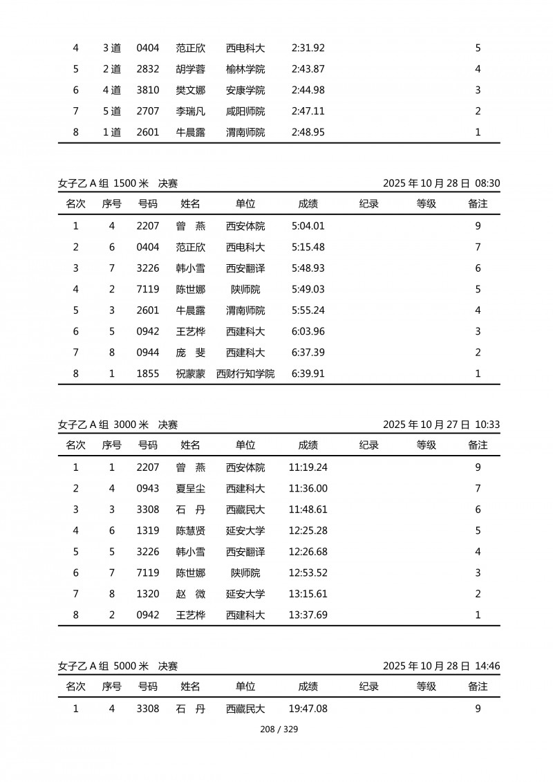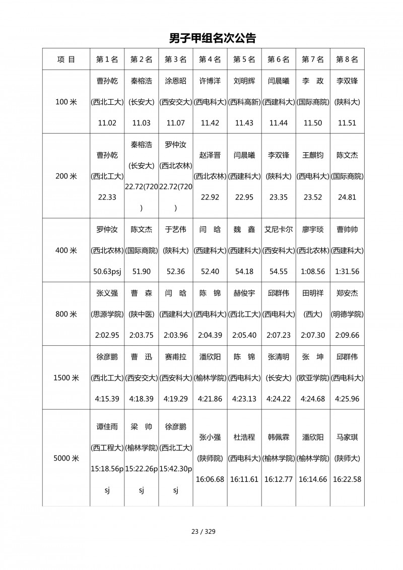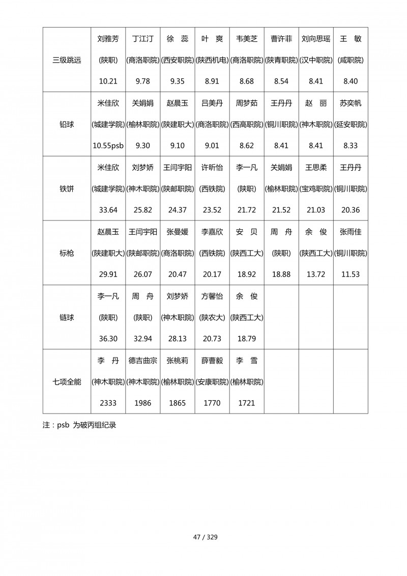 陕西省第四十四届大学生田径运动会成绩册.pdf