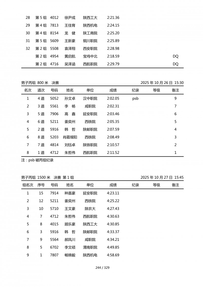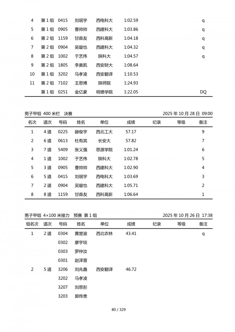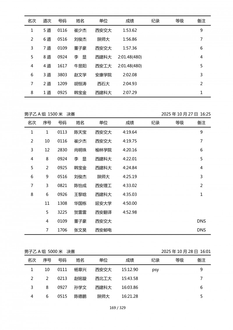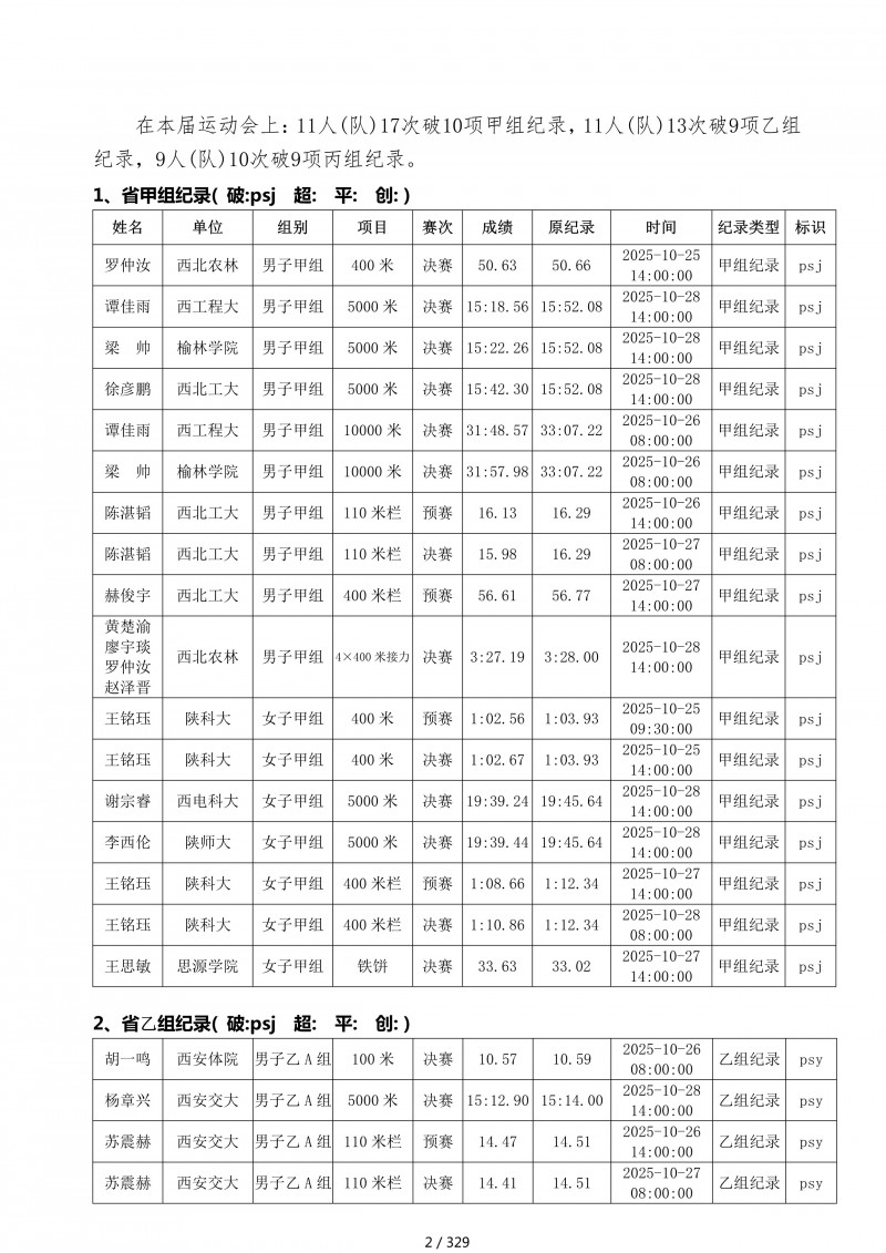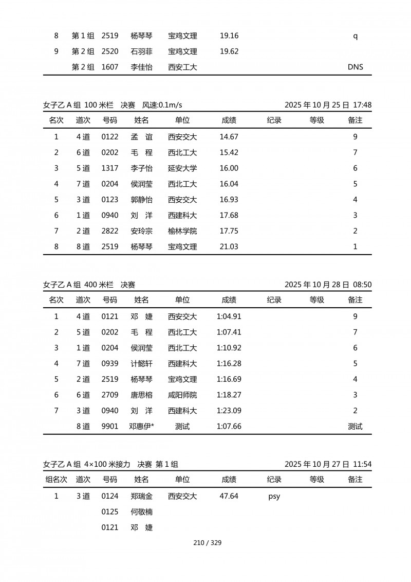 陕西省第四十四届大学生田径运动会成绩册.pdf