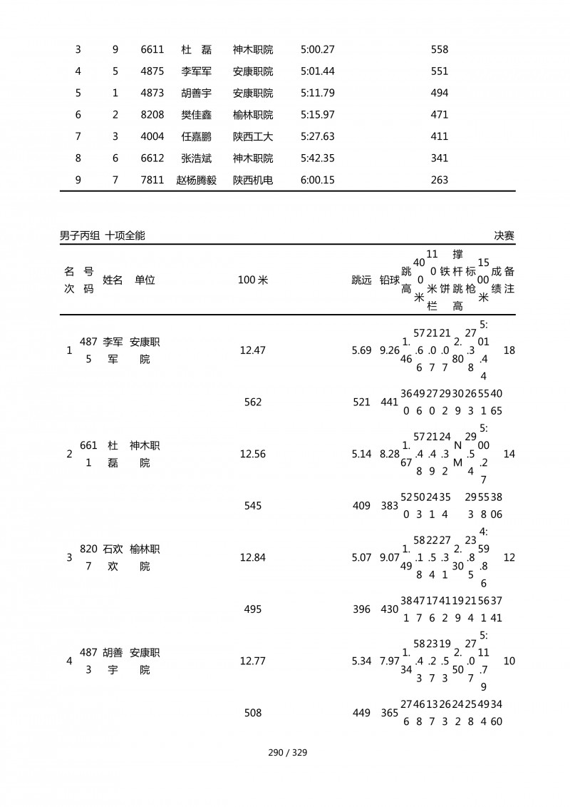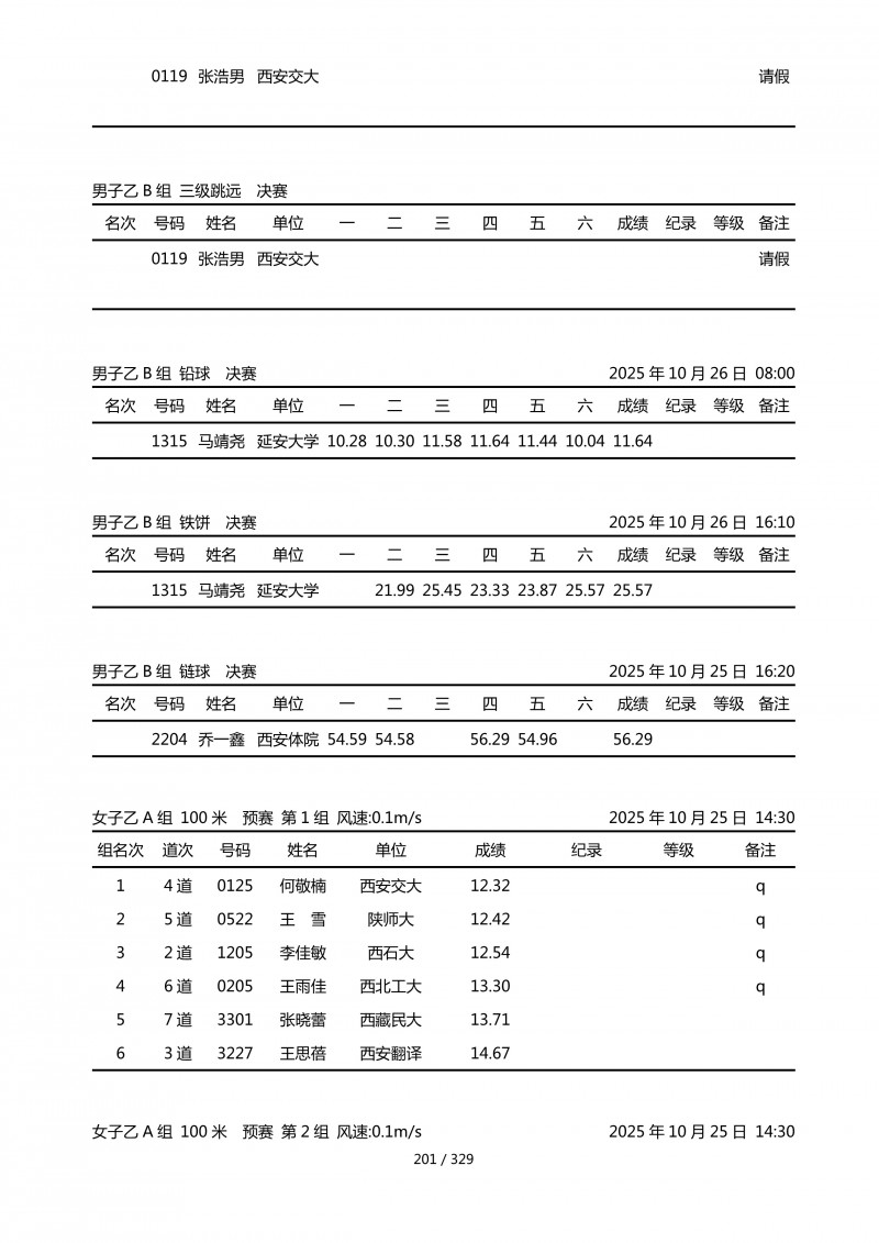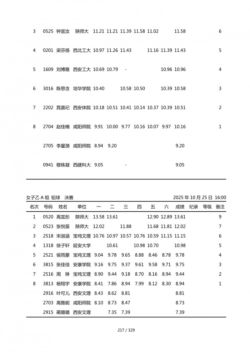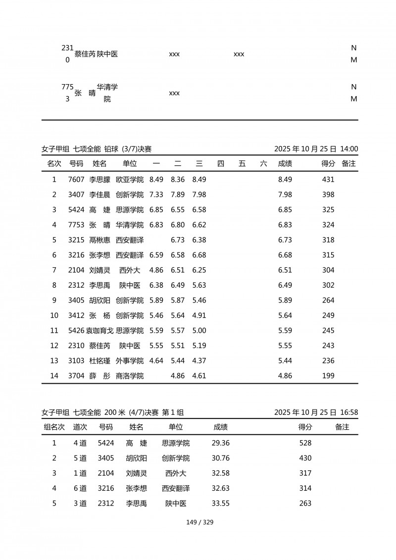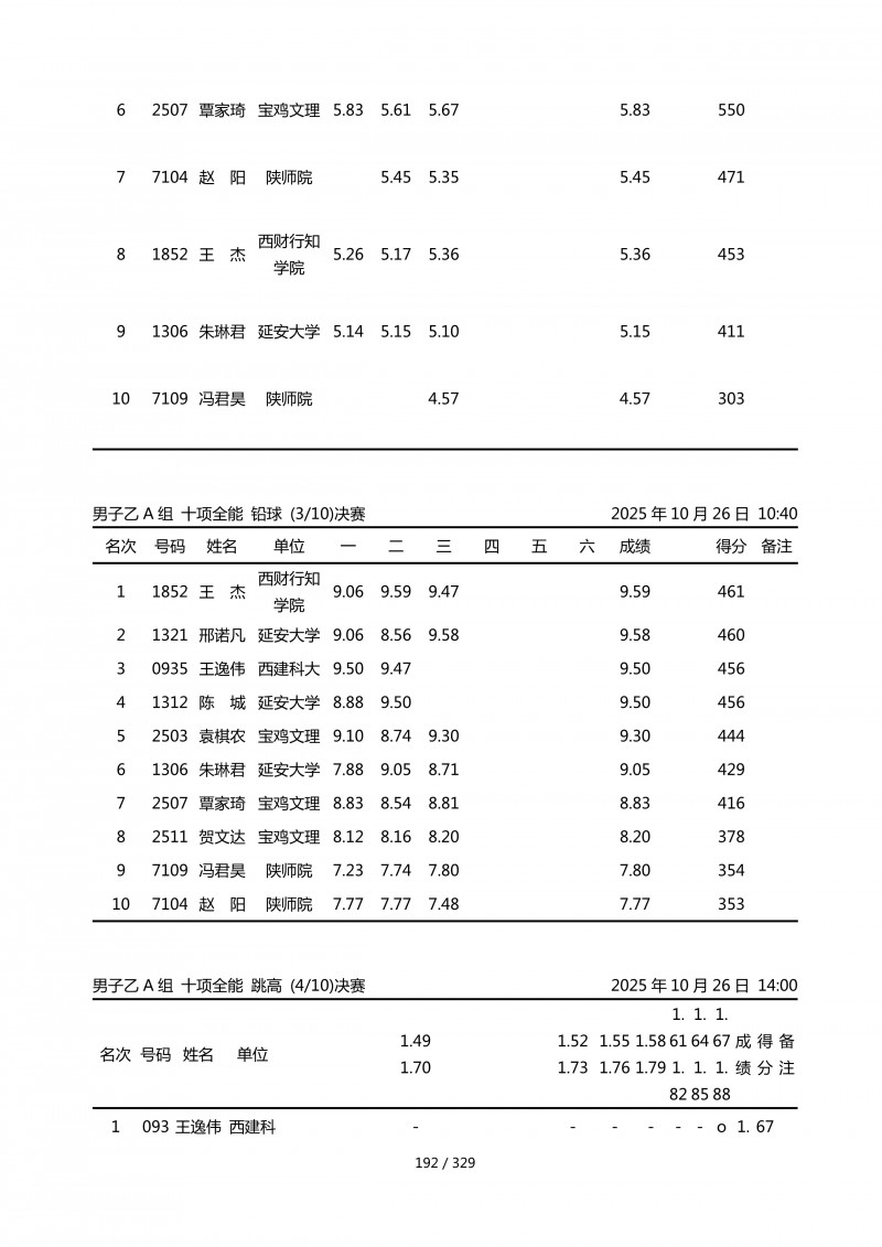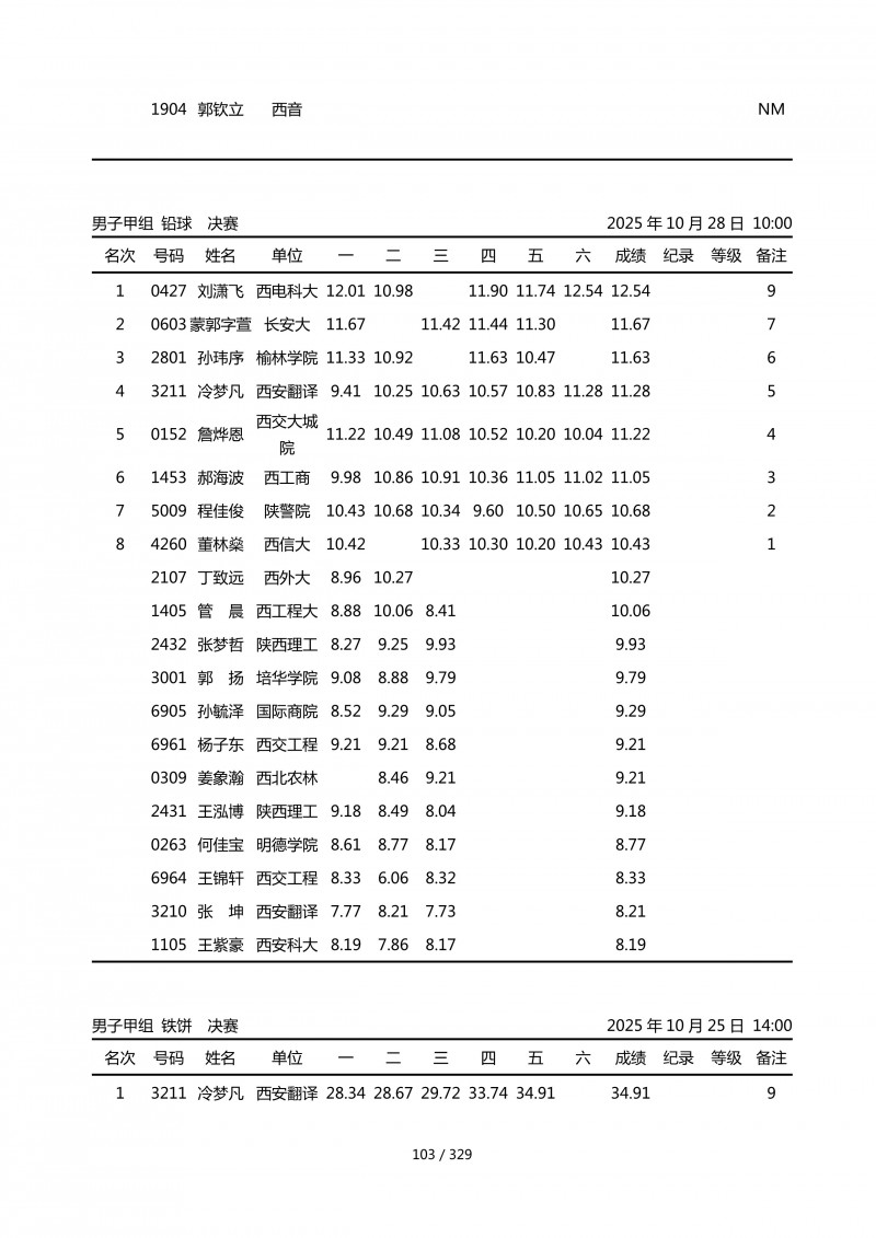 陕西省第四十四届大学生田径运动会成绩册.pdf